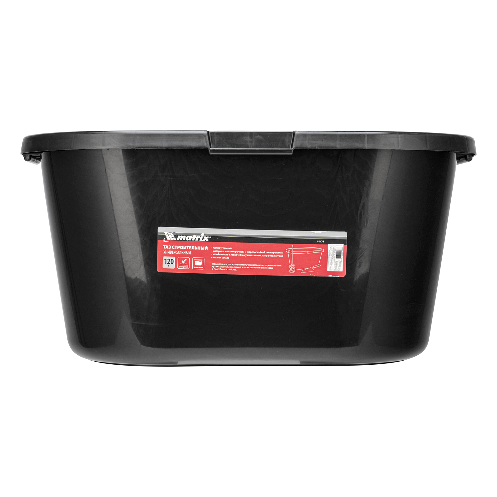 Прямоугольный строительный ударопрочный таз Matrix 81476 объемом 120 л универсален в применении: он используется для перемешивания строительных смесей, хранения сыпучих материалов и воды для технических нужд. Будет полезен во время проведения строительно-отделочных работ, пригодится также в подсобном хозяйстве и на огороде.
