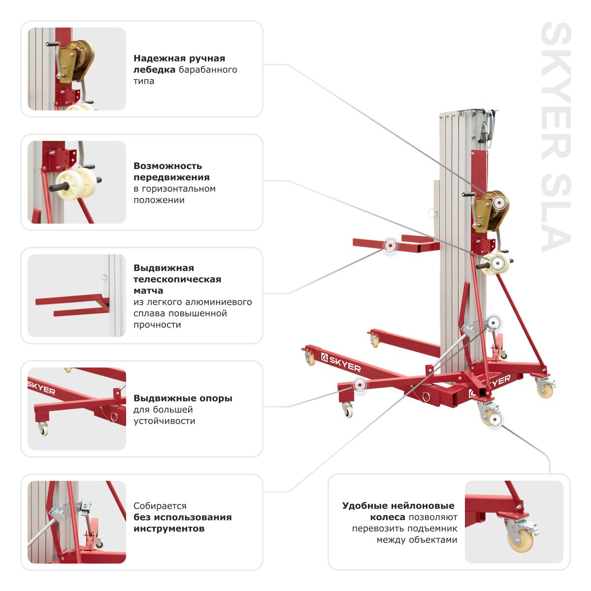 Телескопический подъемник для материалов SKYER SLA-10 — поднимет 400 кг без электричества!