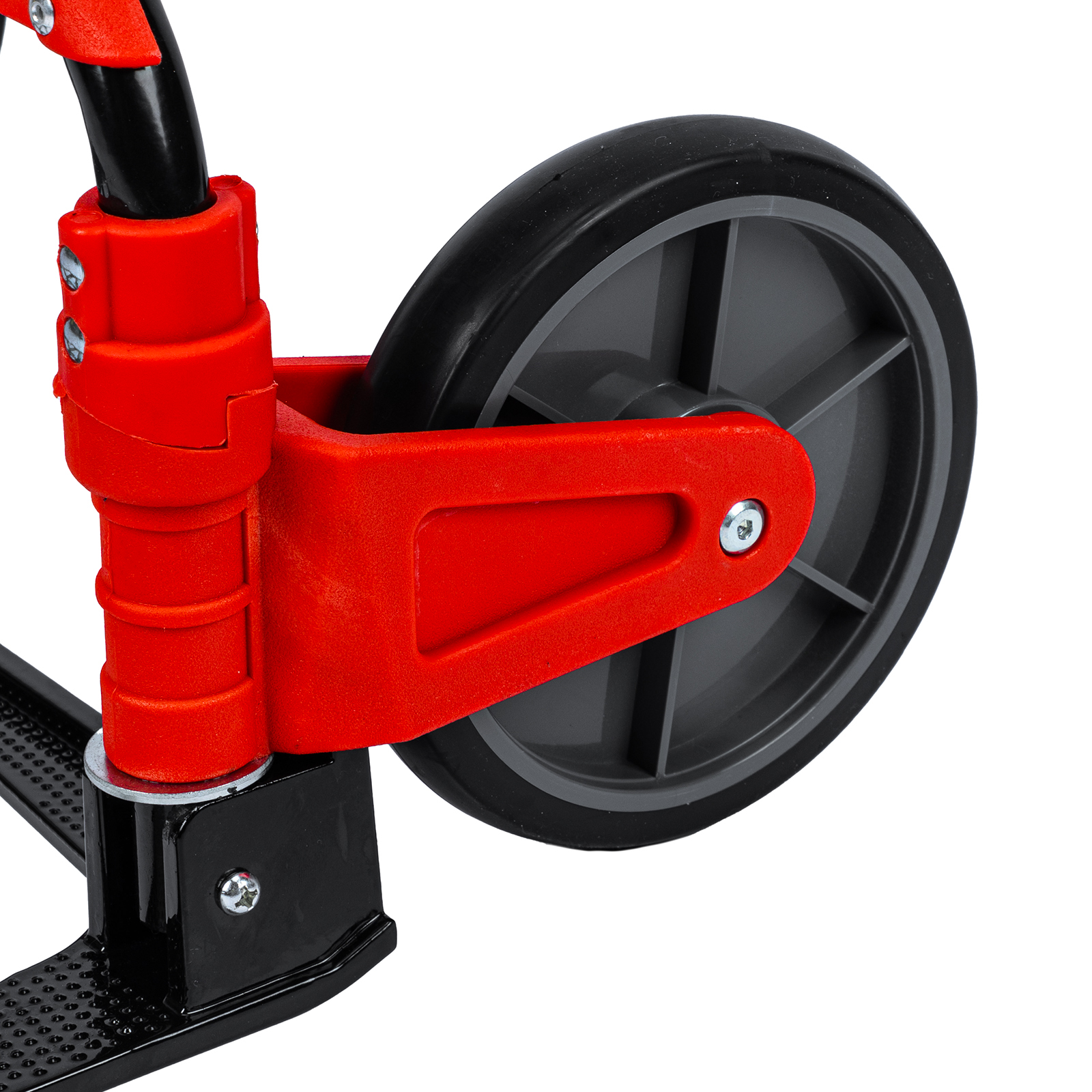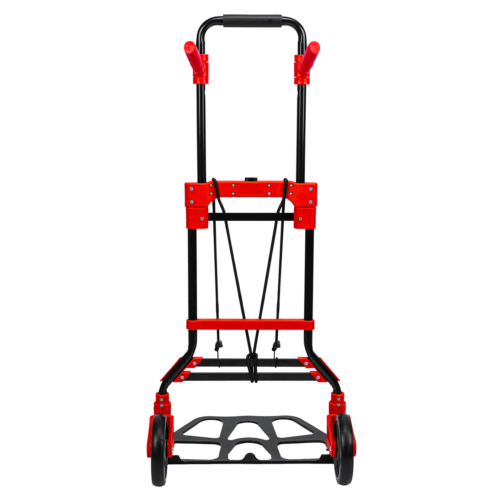 - Удобное хранение и транспортировка — платформа и колеса складываются, поэтому тележка не занимает много места.