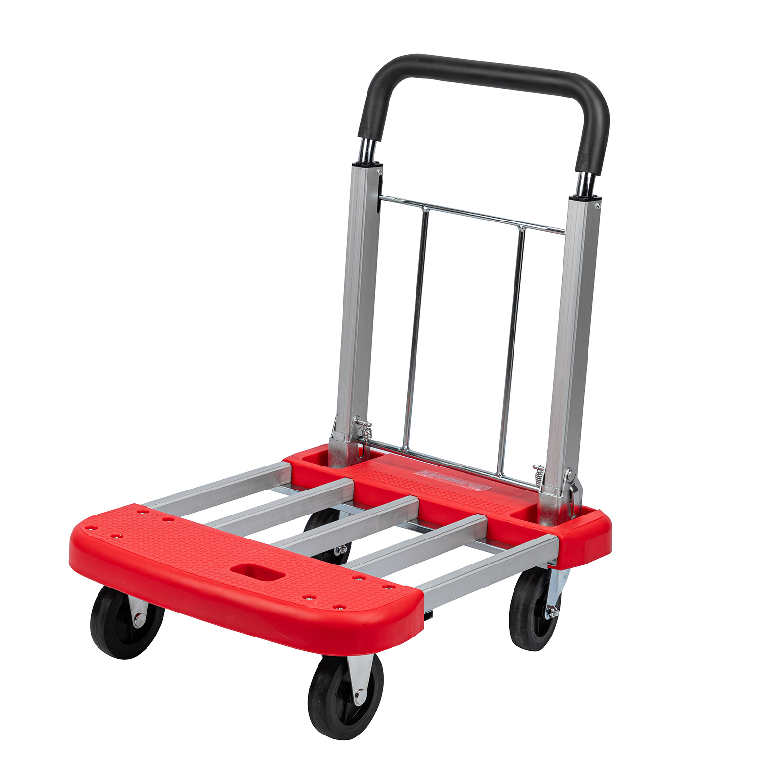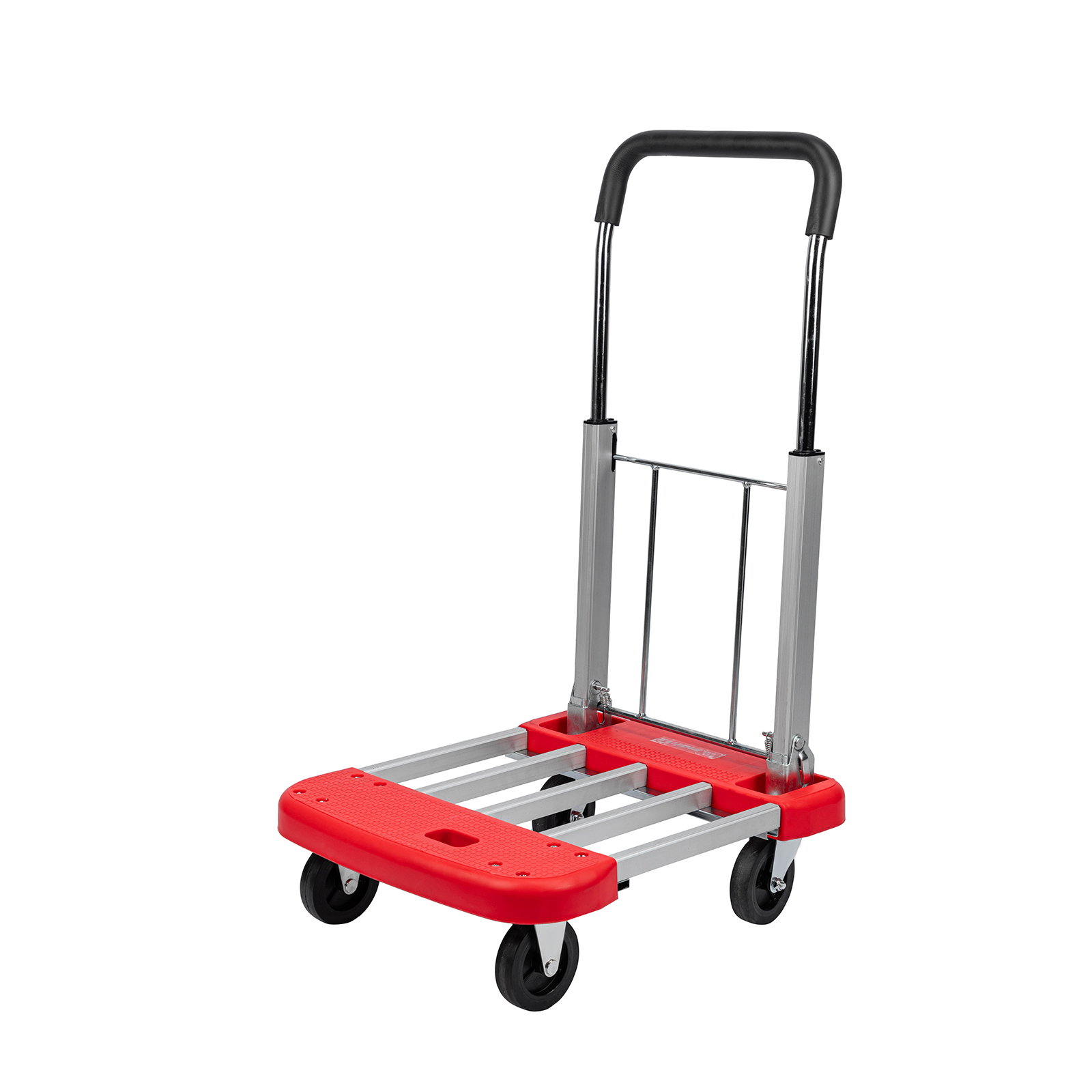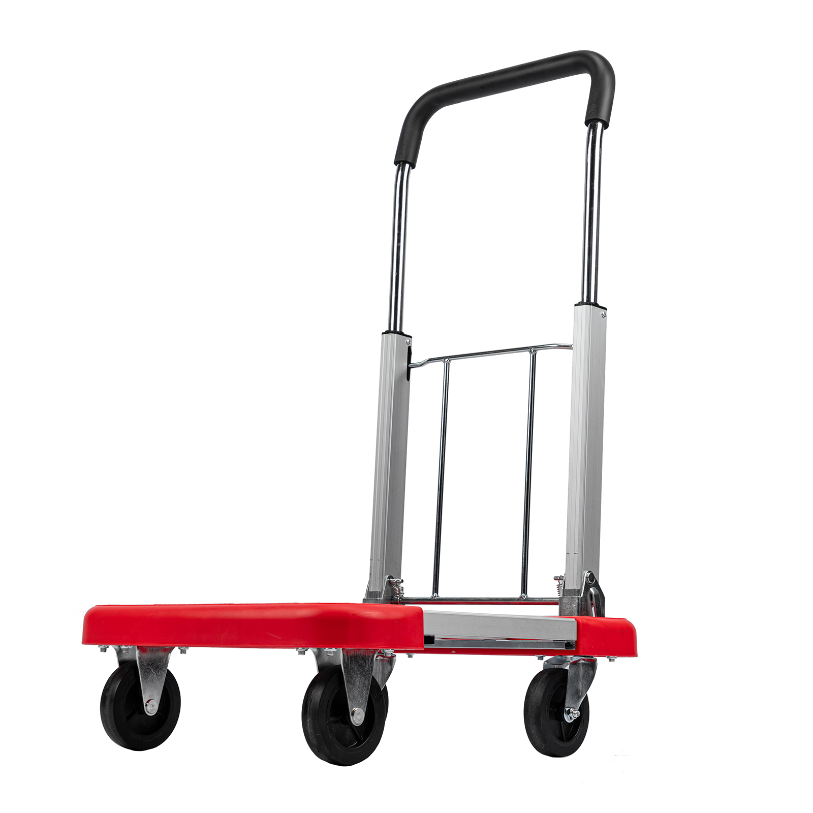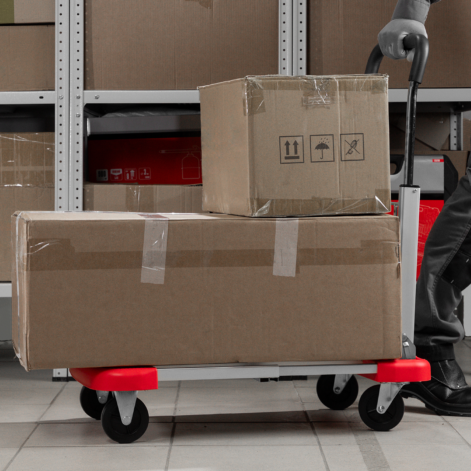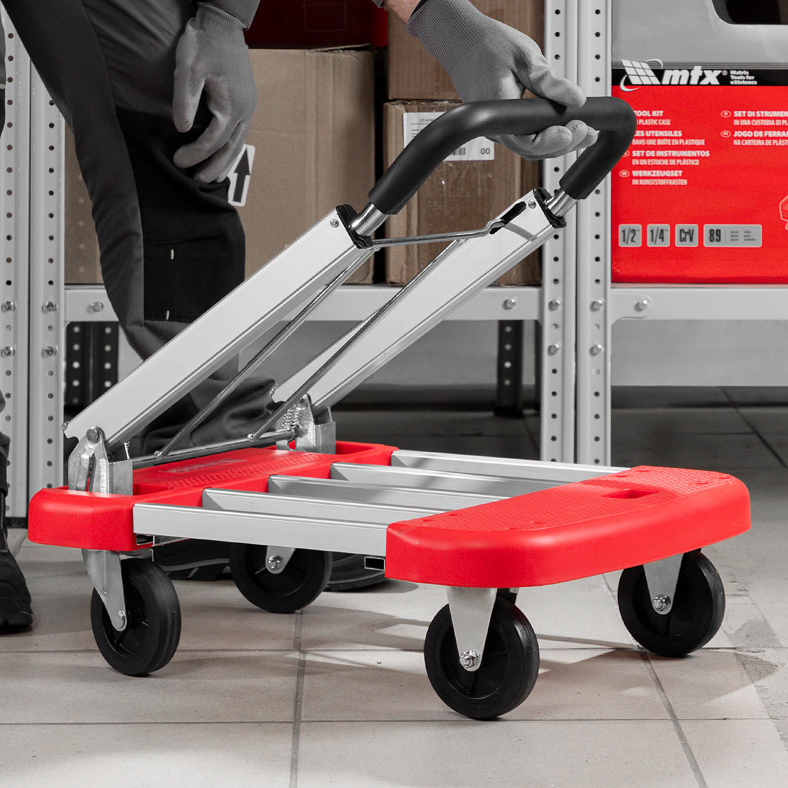 - Удобное хранение и транспортировка — благодаря телескопической платформе тележка не занимает много места.