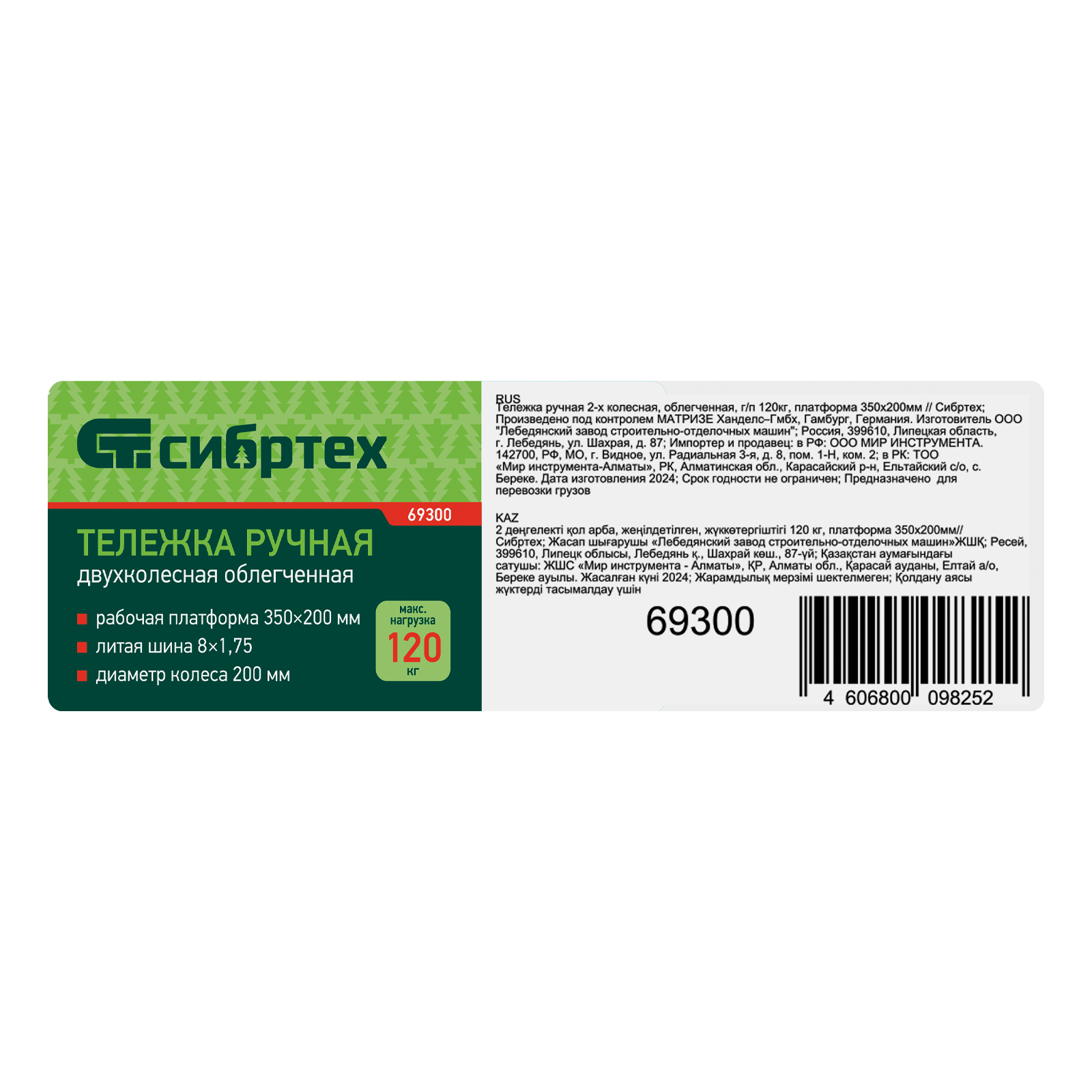Тележка ручная 2-х колесная, облегченная, г/п 120кг, платформа 350х200мм Сибртех в Челябинске