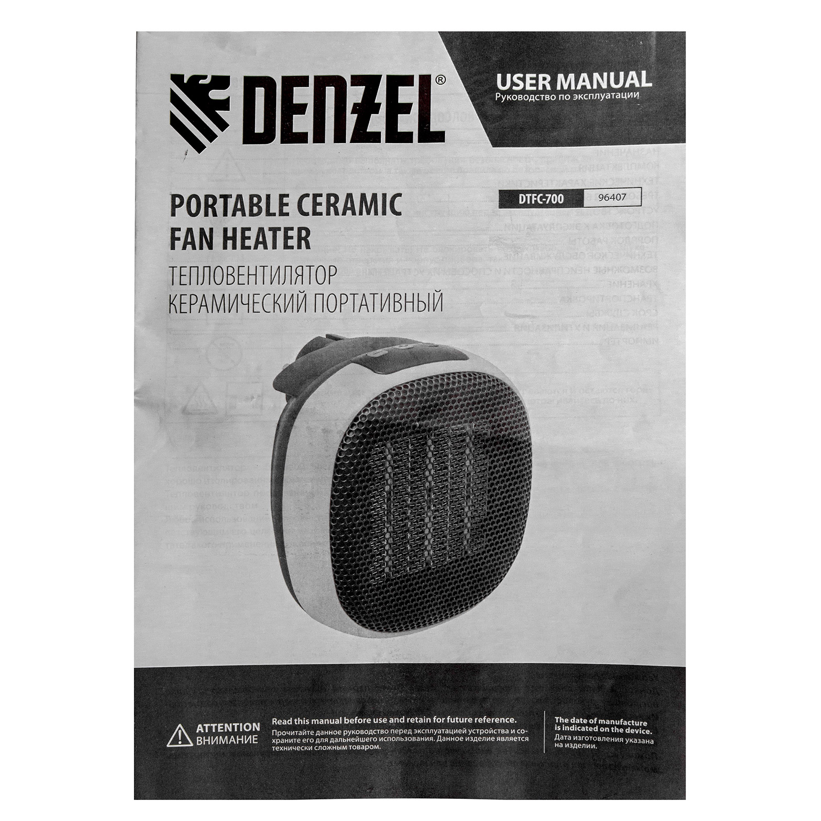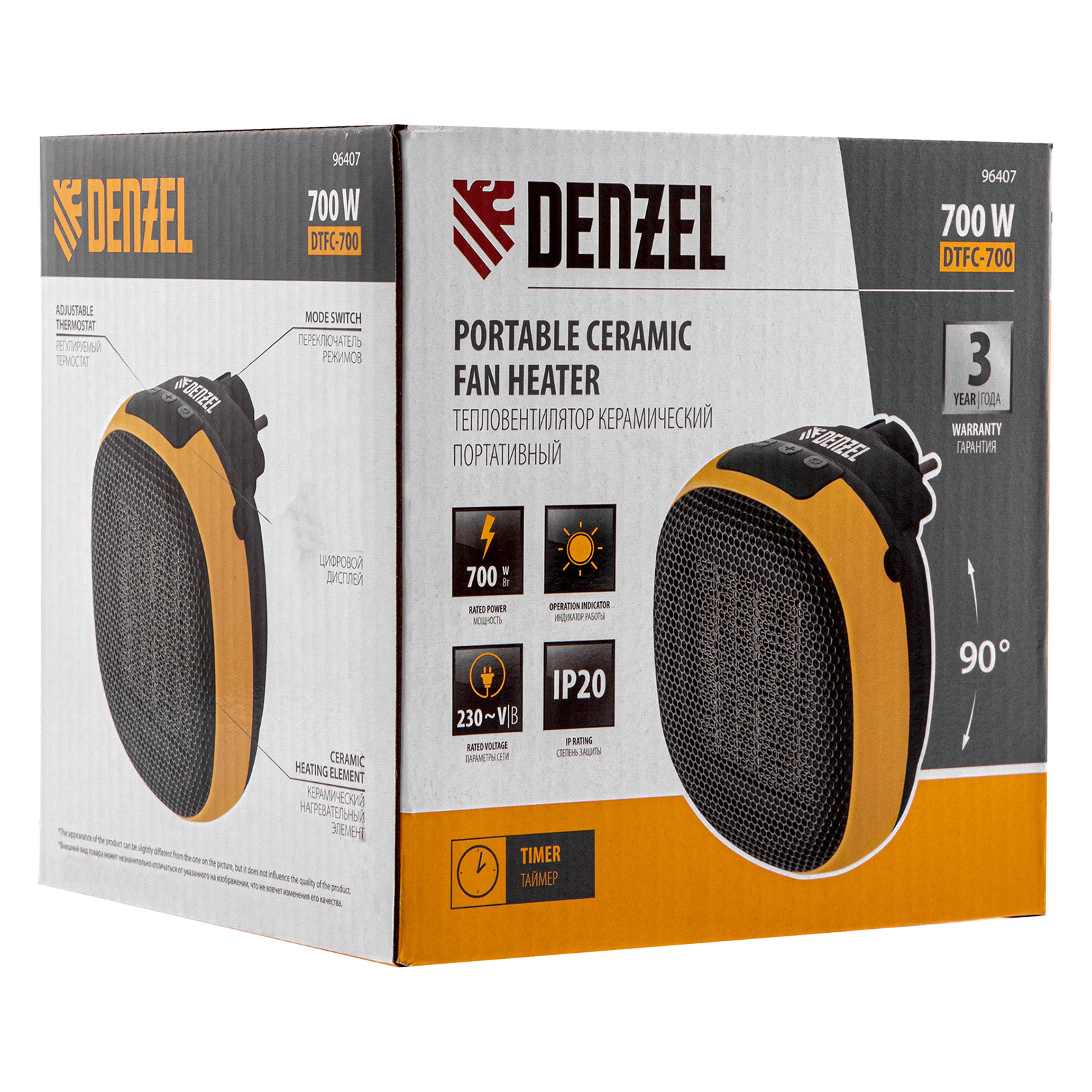 Тепловентилятор портативный керамический DTFC-700, 3 реж. вентилятор, нагрев 700 Вт Denzel в Челябинске