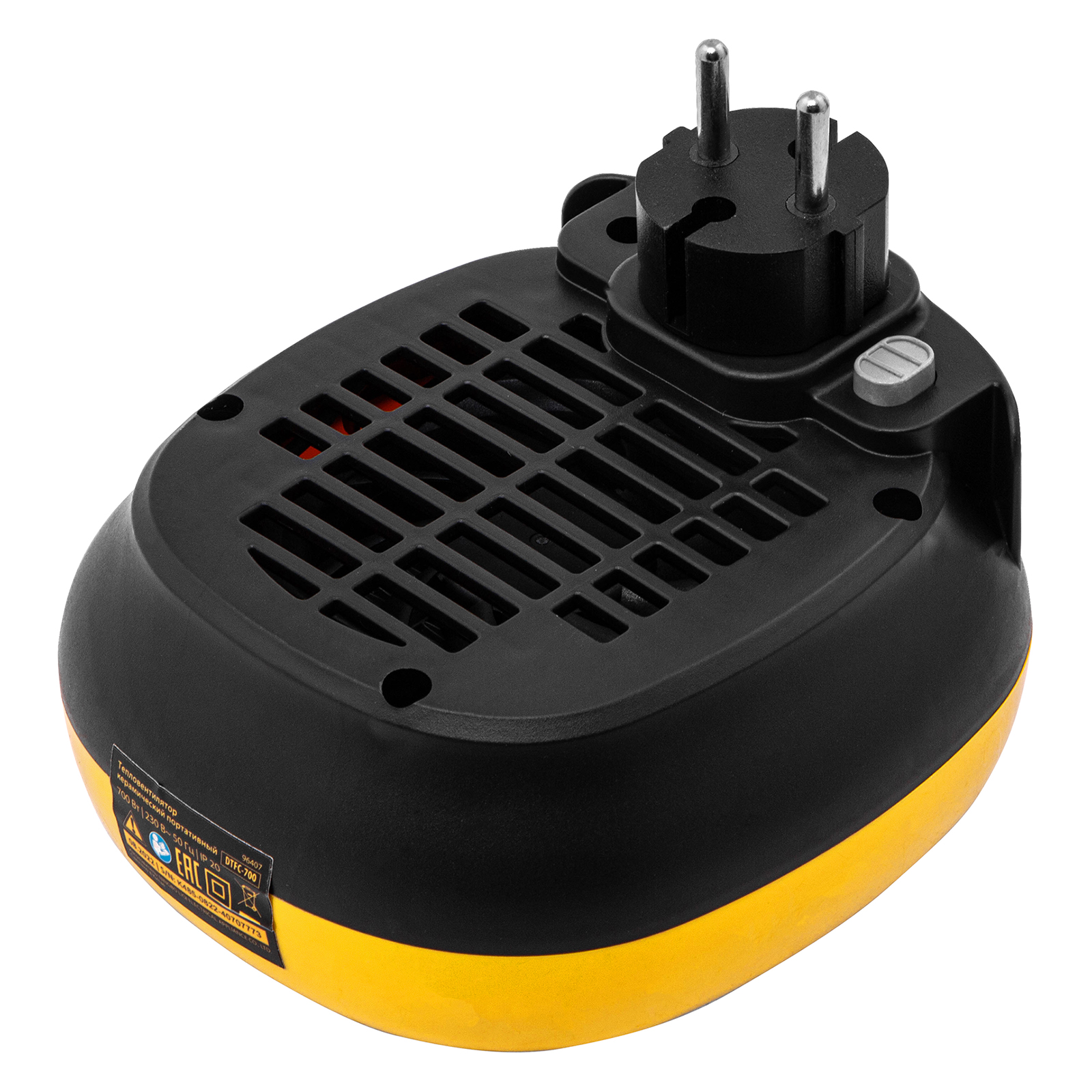 Портативный керамический тепловентилятор Denzel DTFC-700 96407 номинальной мощностью 700 Вт может работать в одном из 2 режимов: нагрев с максимальной либо пониженной скоростью вентилятора (тихий режим). Используется в помещениях площадью до 10 м², а также подходит для локального обогрева — например, рабочего места. Прост в эксплуатации и не требует технического обслуживания. Керамический нагревательный элемент отличается высокой энергоэффективностью, не сушит воздух и не сжигает пыль, поэтому тепловентилятор комфортен в использовании.