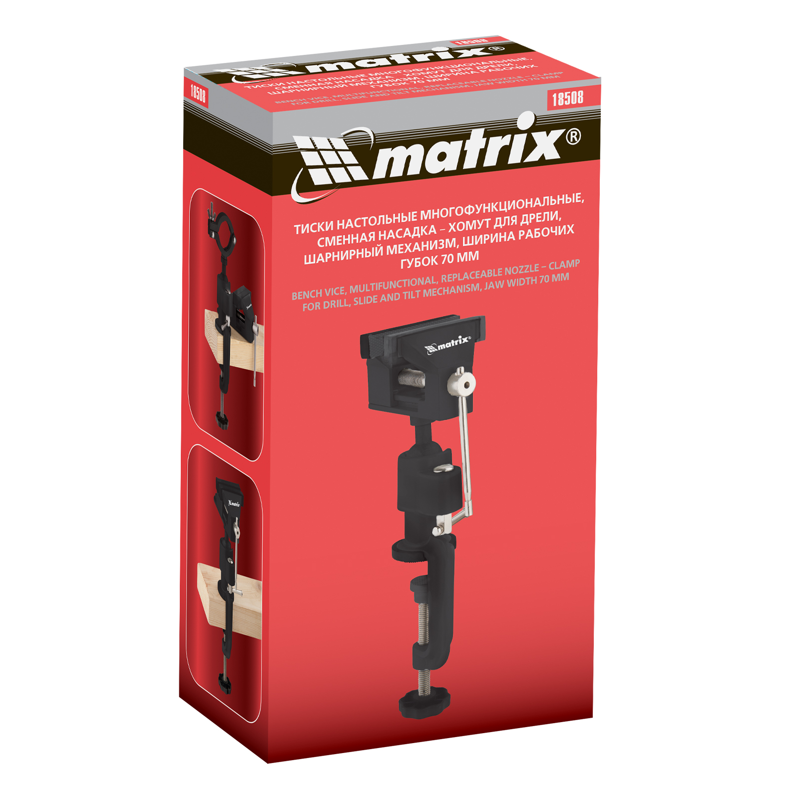 Тиски настольные, многофункциональные, сменная насадка, хомут для дрели, шарнирный механизм, 70 мм Matrix в Челябинске