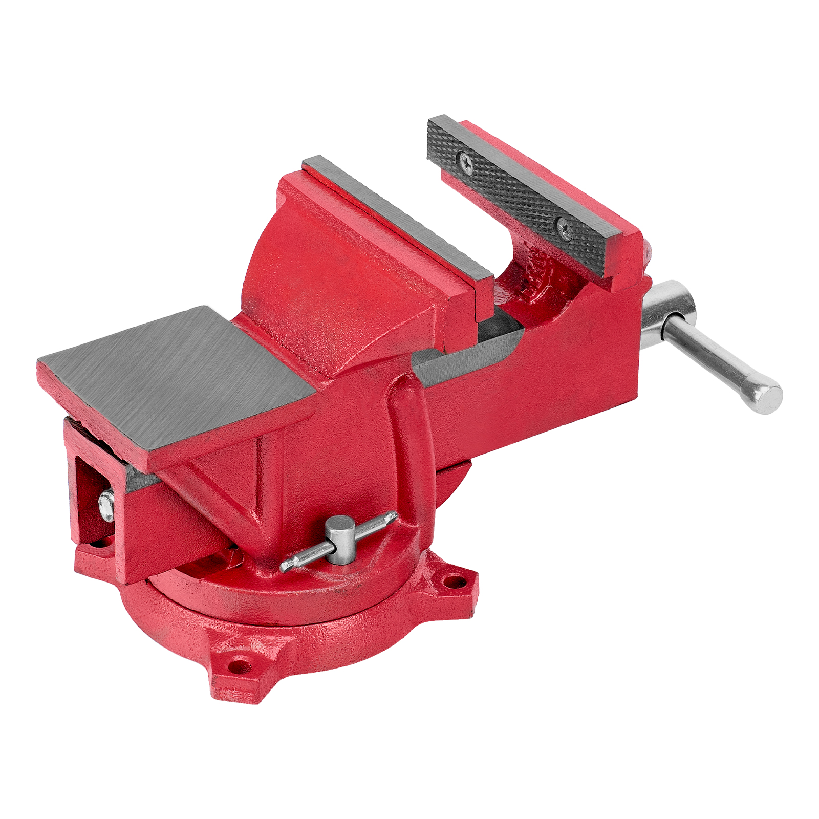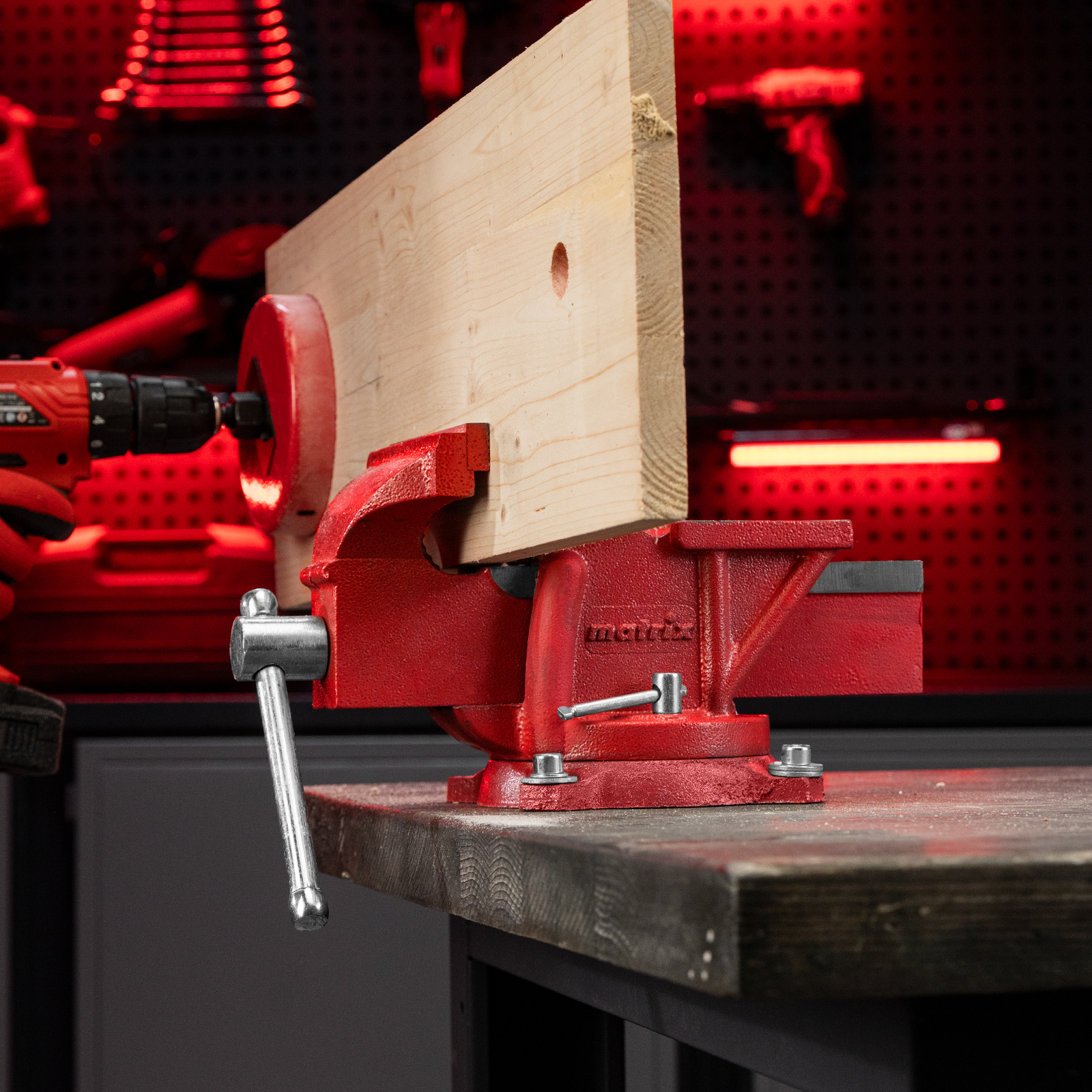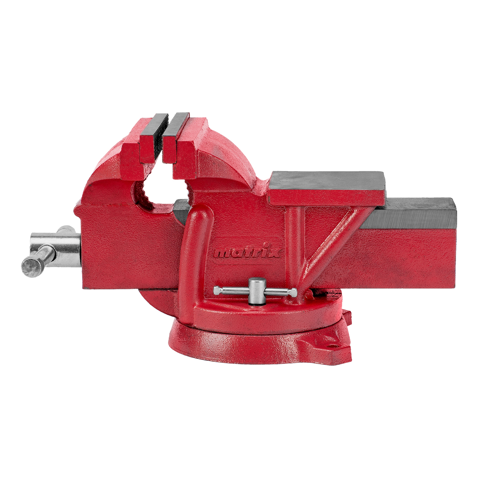 Поворотные слесарные тиски Matrix 18601 с наковальней и губками шириной 125 мм имеют рабочий ход 115 мм и предназначены для захвата и фиксации различных деталей. Поворотный механизм с прижимными винтами позволяет вращать тиски на 360° и фиксировать их в выбранном положении для удобной обработки заготовок с разных сторон. Инструмент используется для шлифовки, сверления и проведения других работ. Будет полезен в мастерской и гараже.