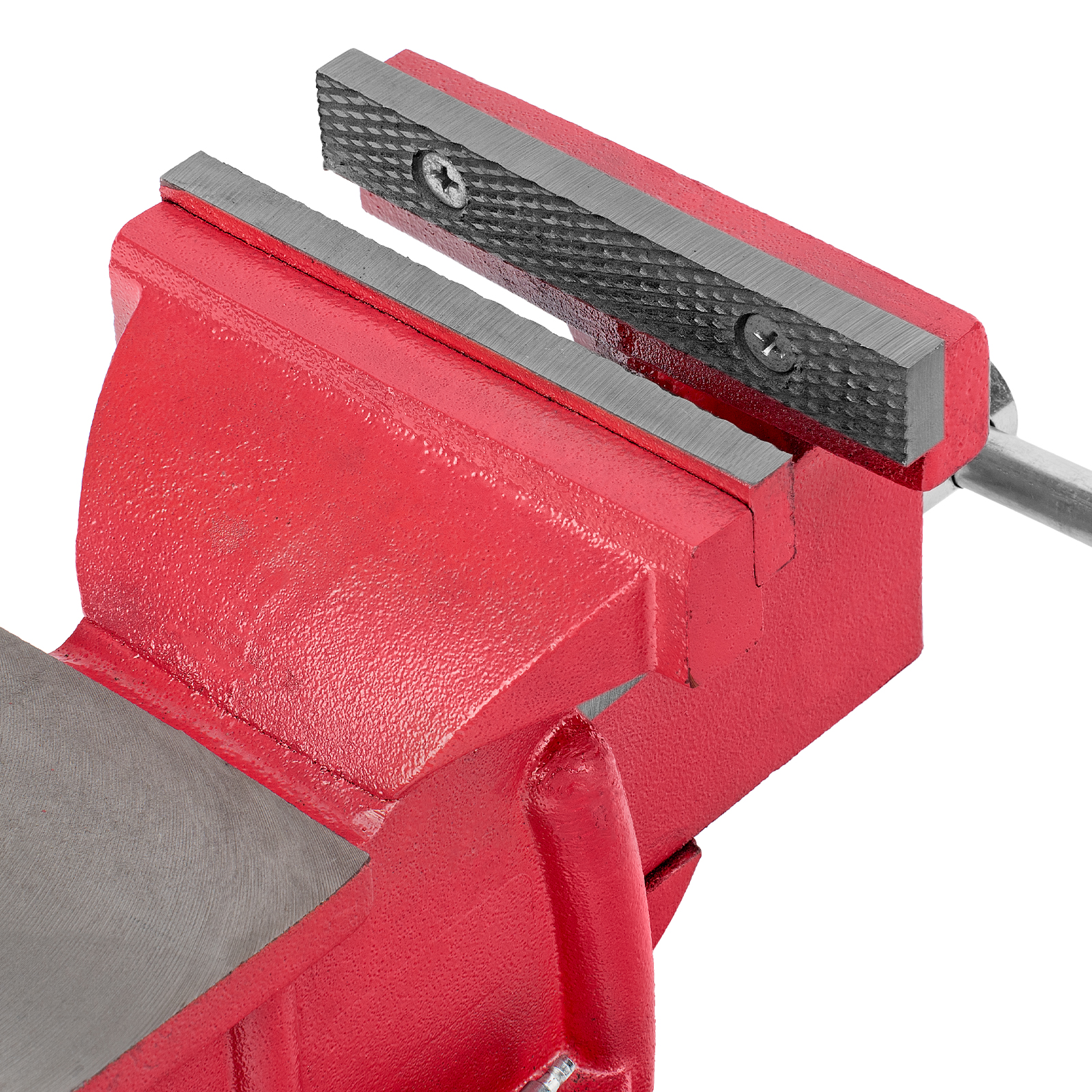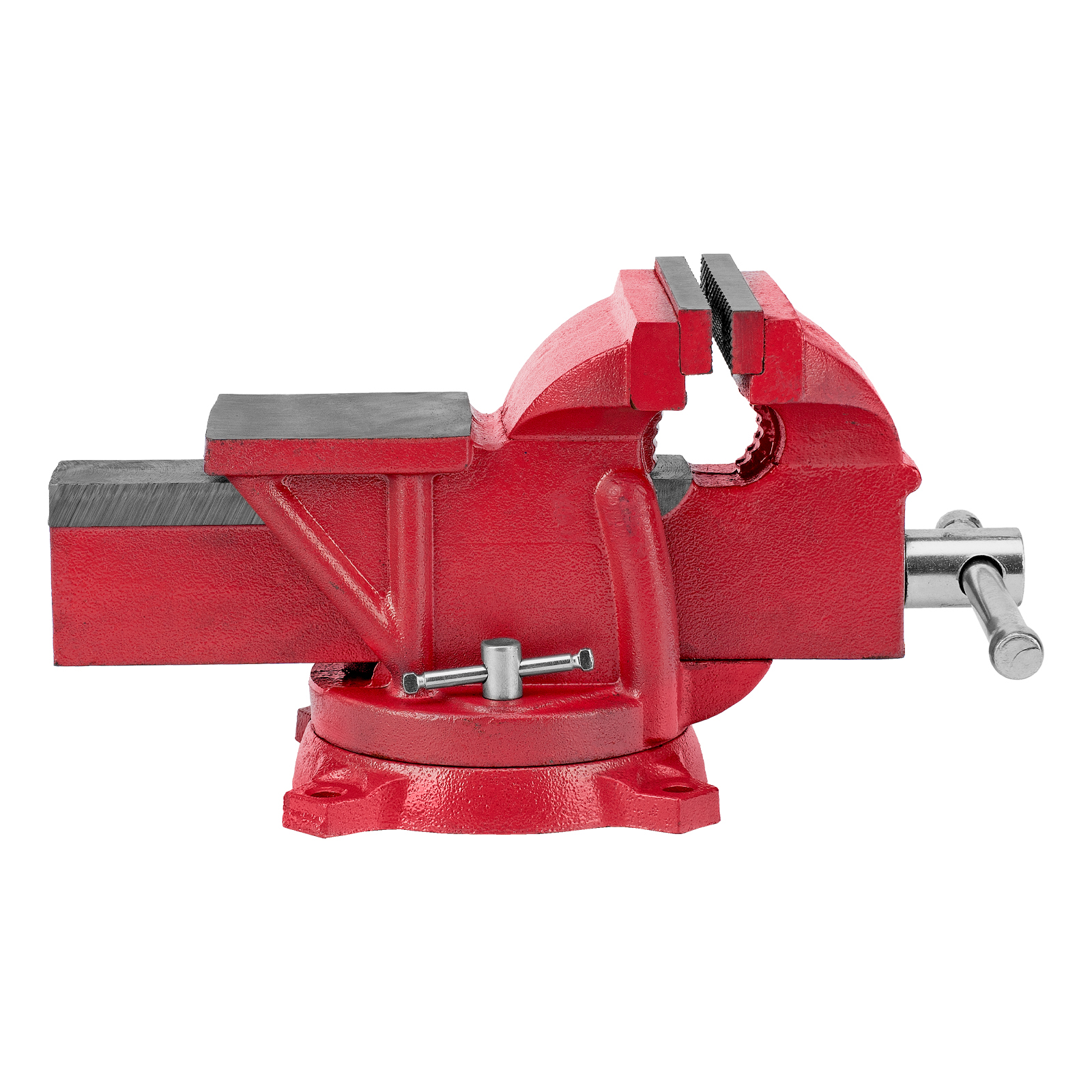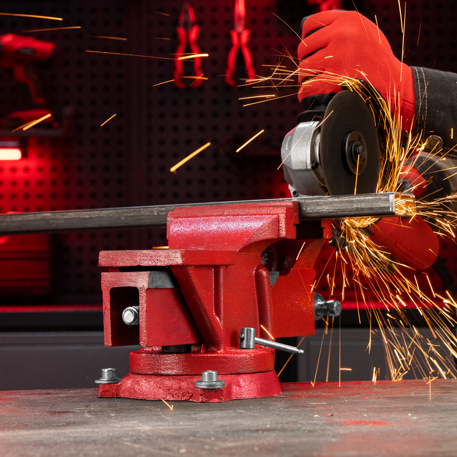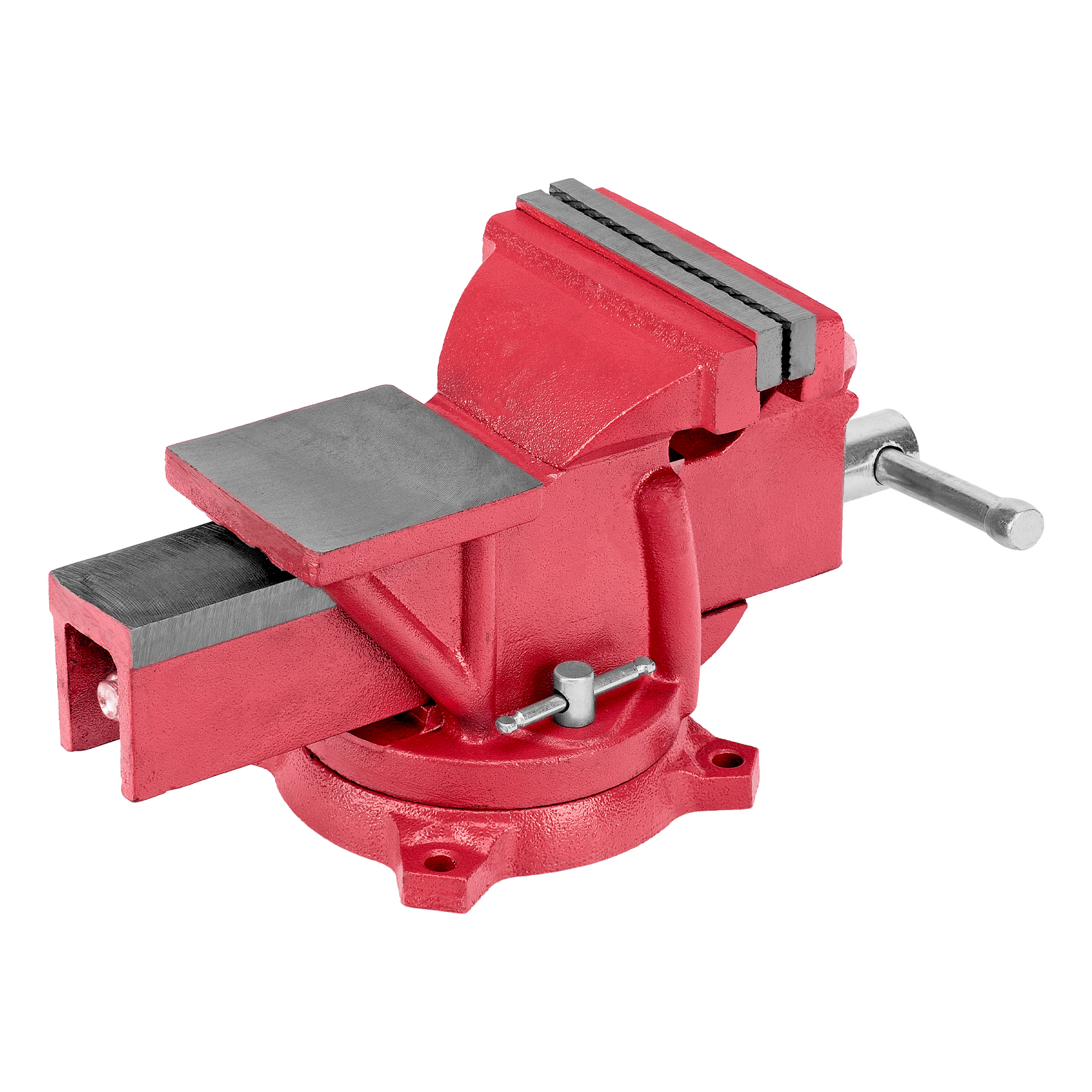 Поворотные слесарные тиски Matrix 18601 с наковальней и губками шириной 125 мм имеют рабочий ход 115 мм и предназначены для захвата и фиксации различных деталей. Поворотный механизм с прижимными винтами позволяет вращать тиски на 360° и фиксировать их в выбранном положении для удобной обработки заготовок с разных сторон. Инструмент используется для шлифовки, сверления и проведения других работ. Будет полезен в мастерской и гараже.