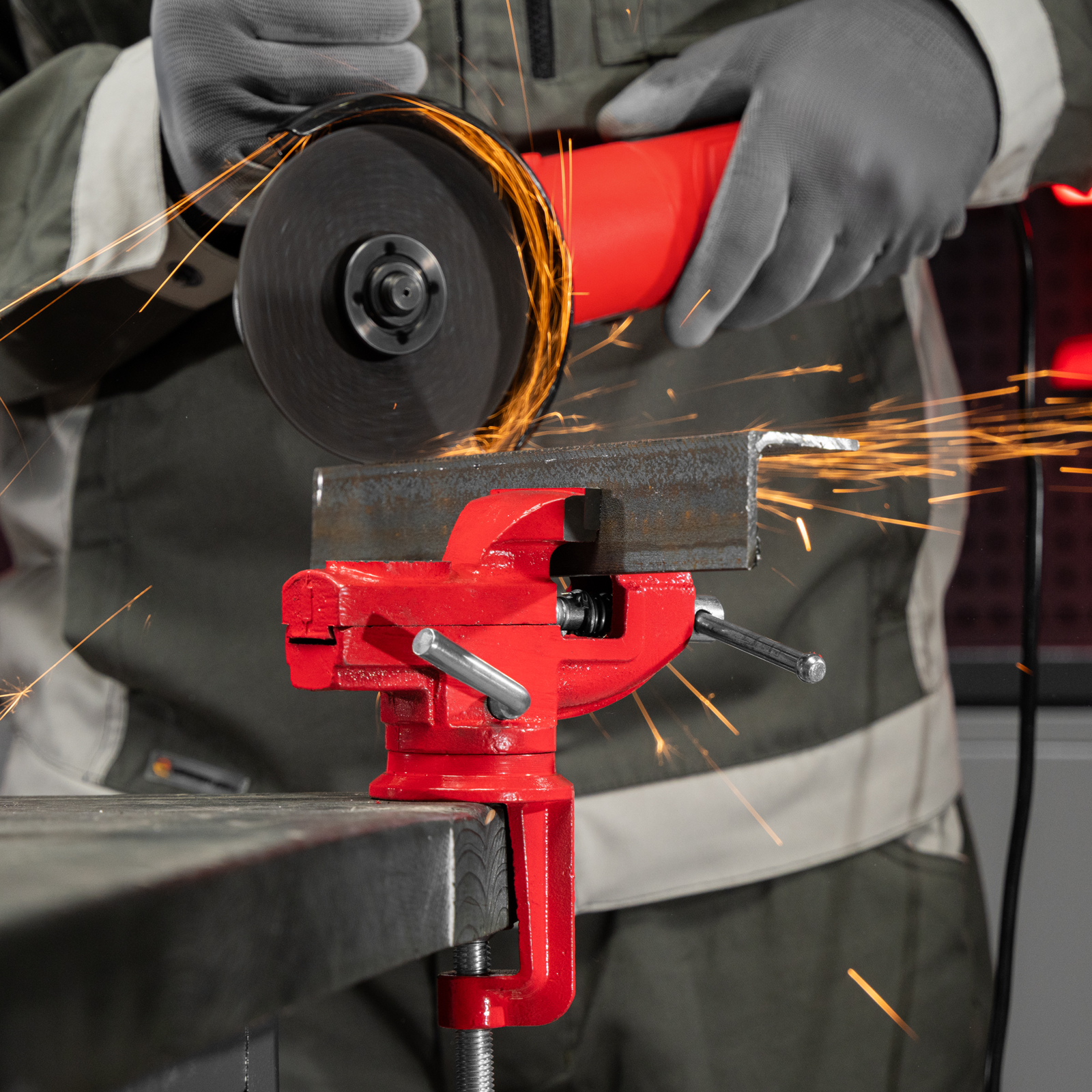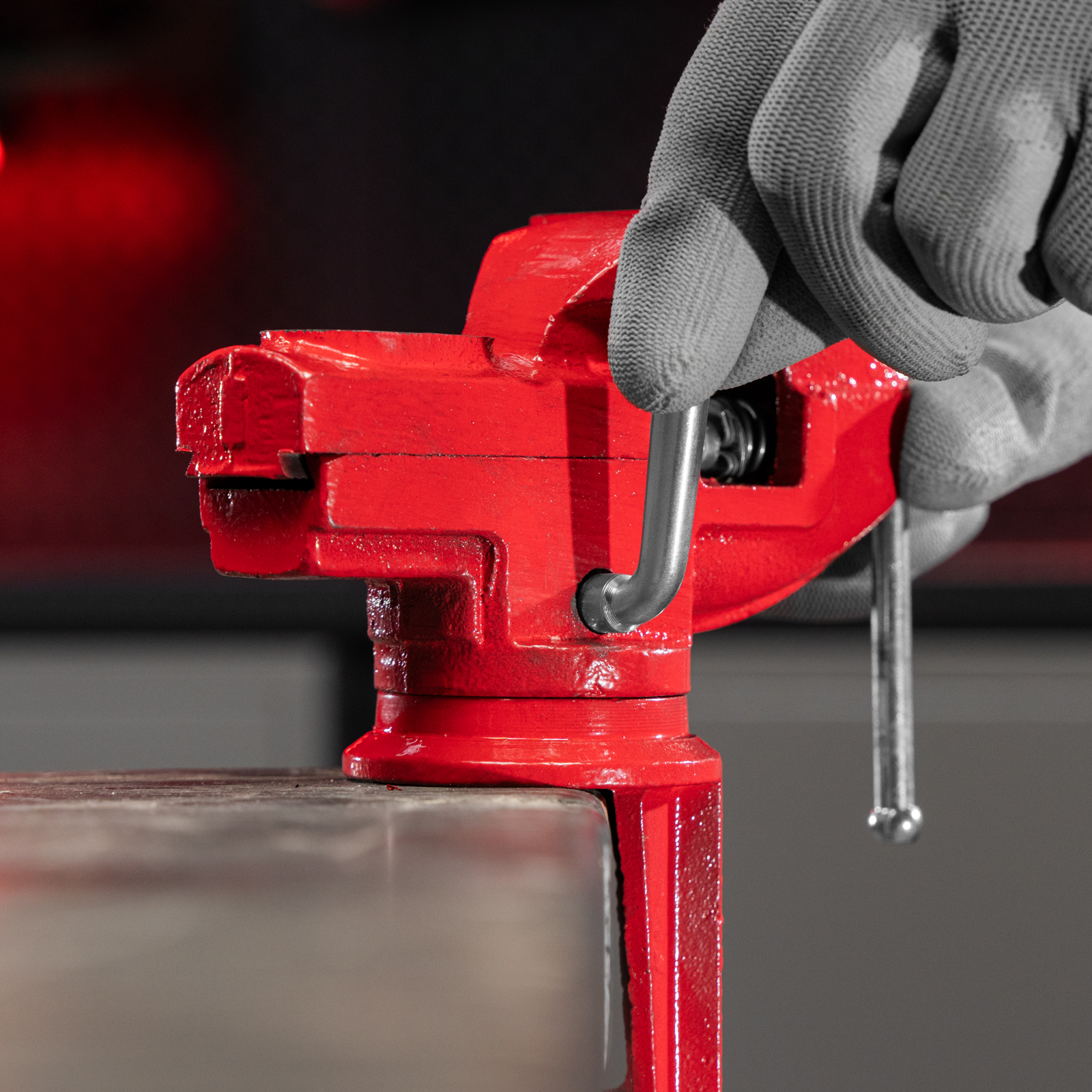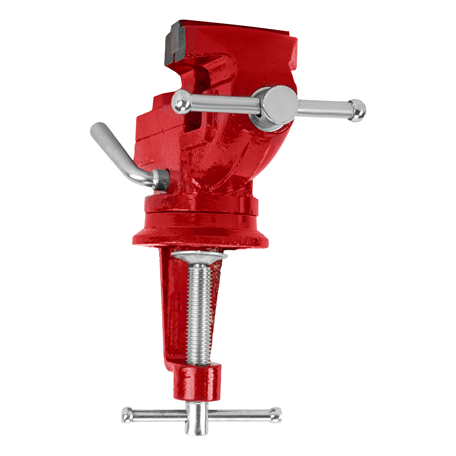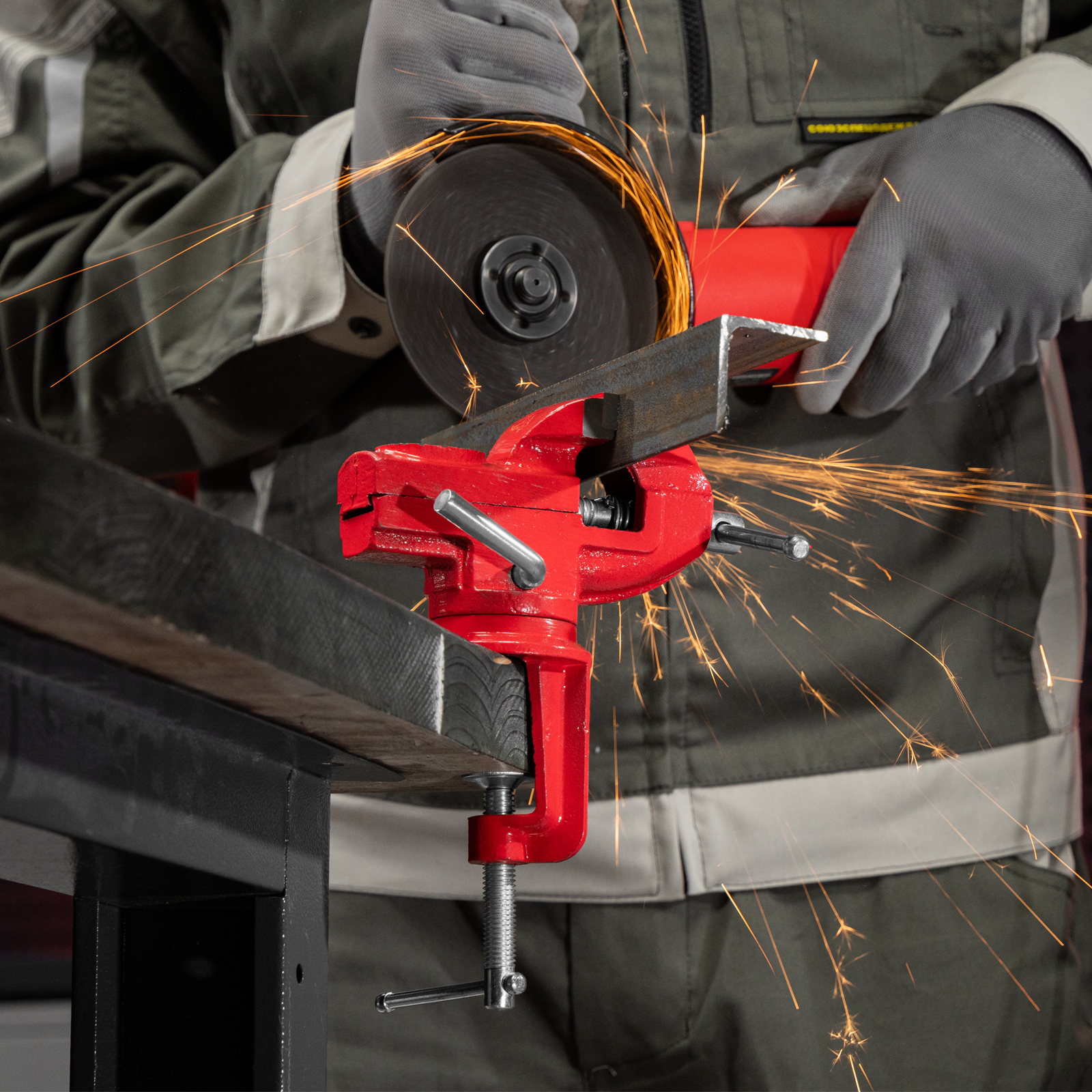 - Простая подготовка к работе — тиски надежно фиксируются на рабочем столе при помощи струбцины с винтовым зажимом.
