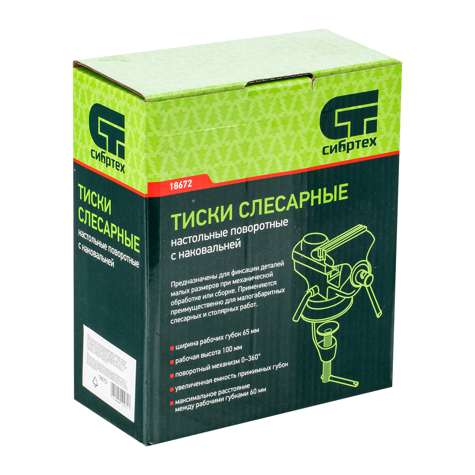 Тиски слесарные, настольные, поворотные, ширина рабочих губок 65 мм, наковальня Сибртех в Челябинске