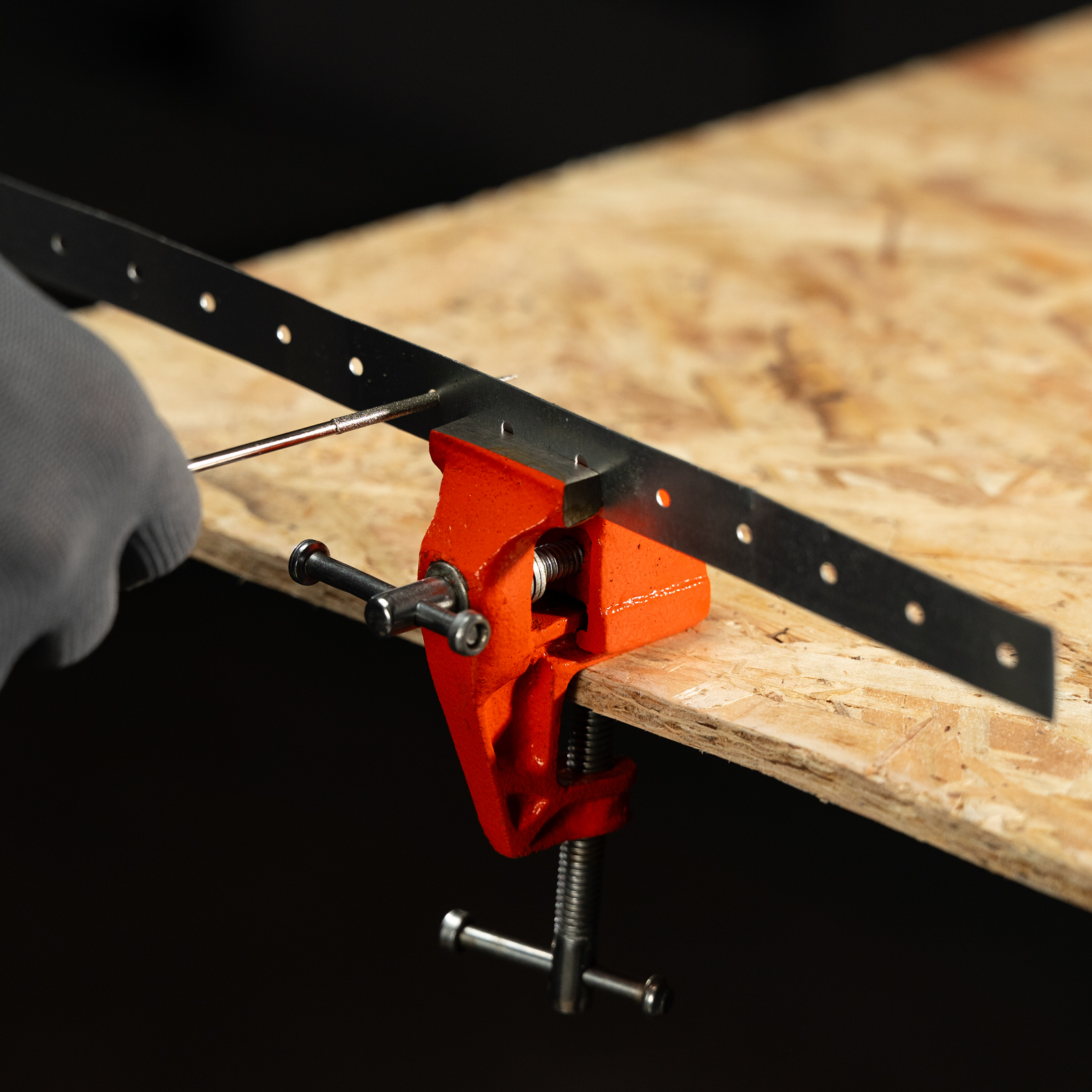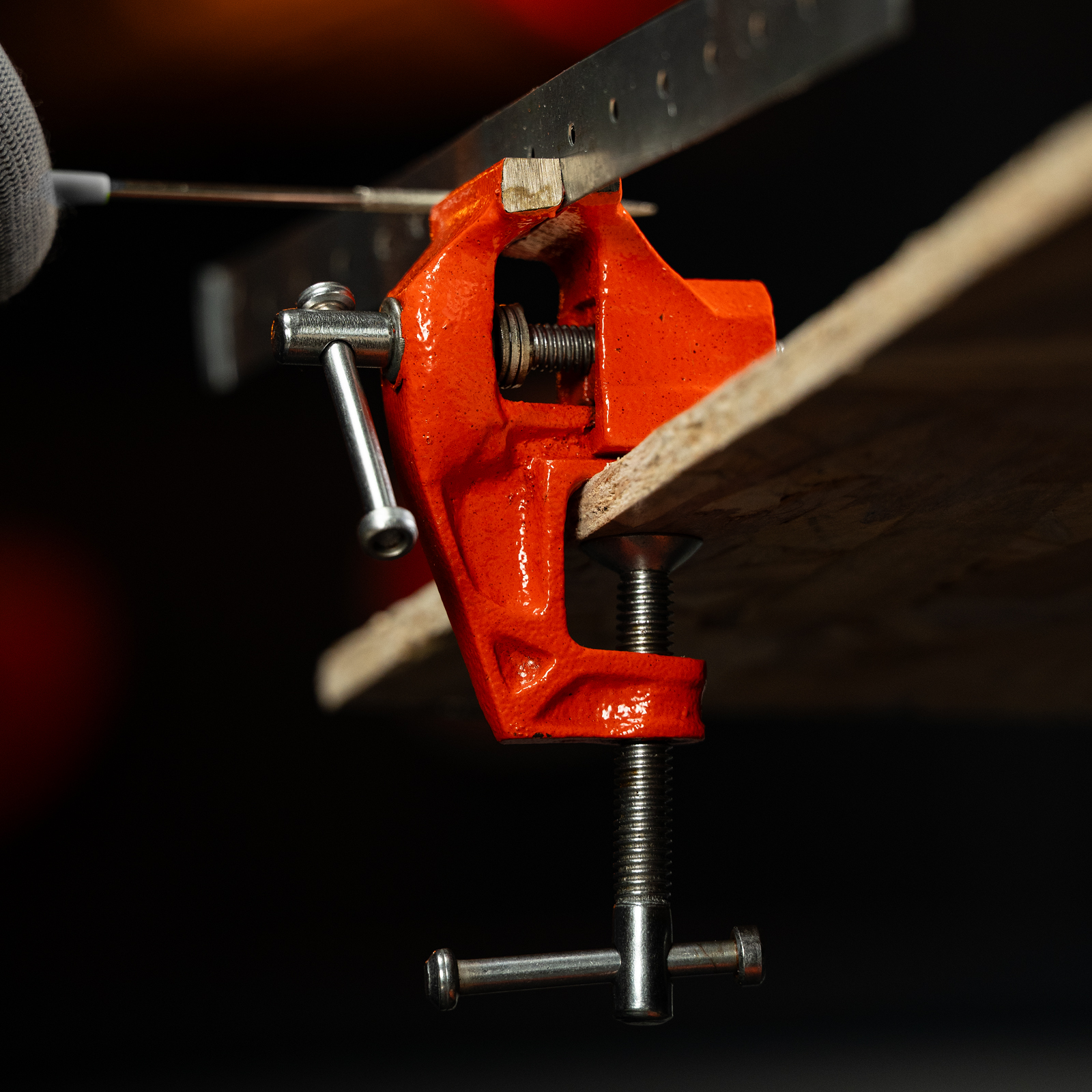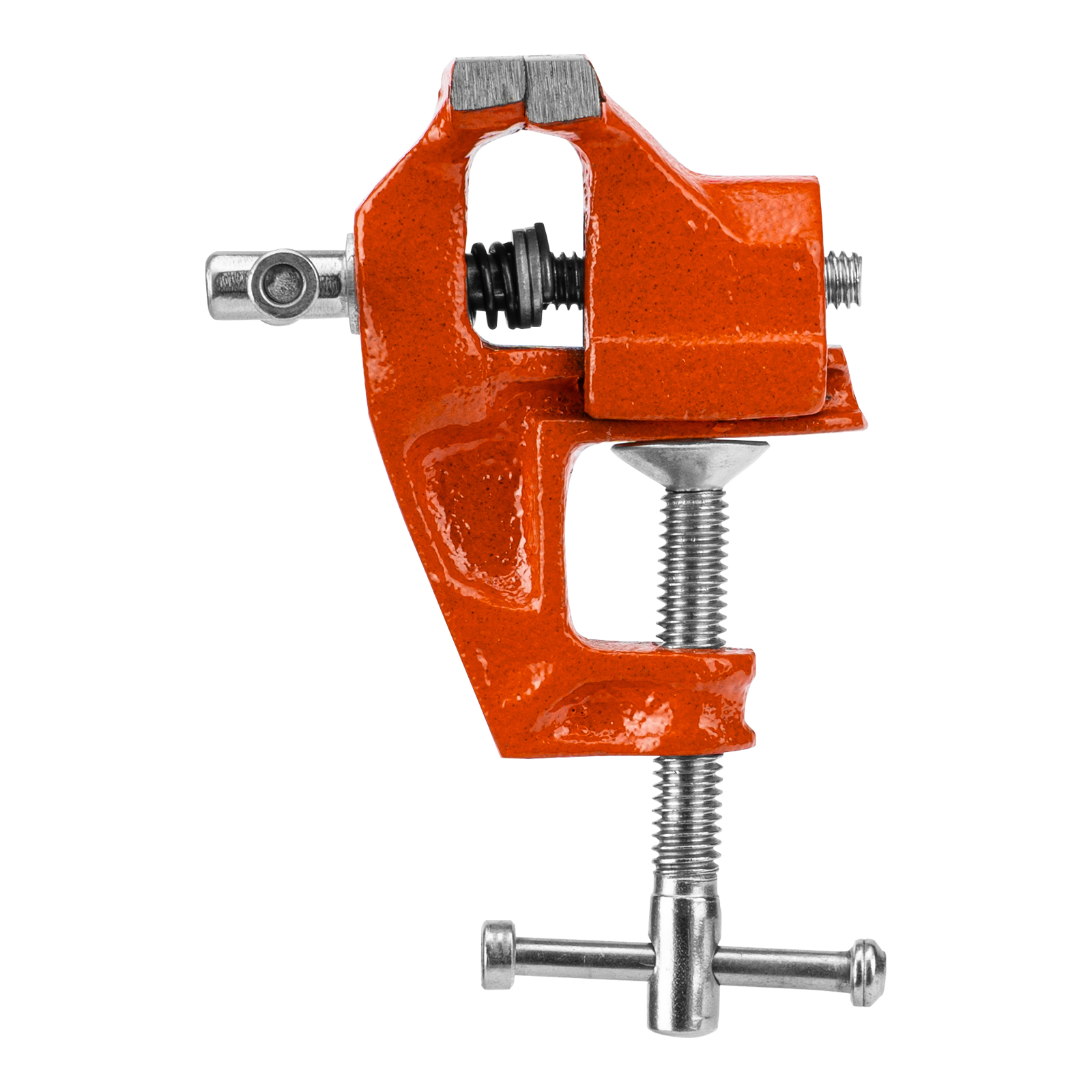 - Простое использование — винтовой зажимной механизм позволяет легко устанавливать и снимать тиски с рабочего стола.
