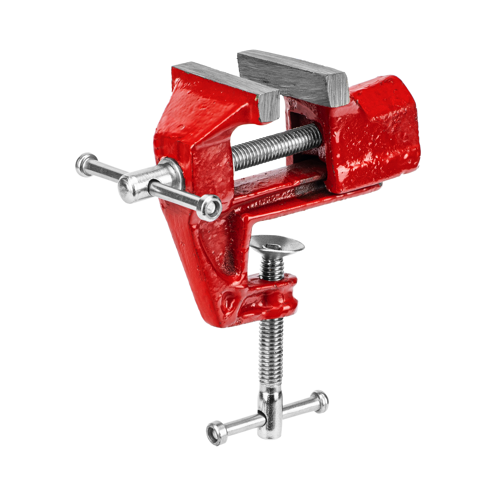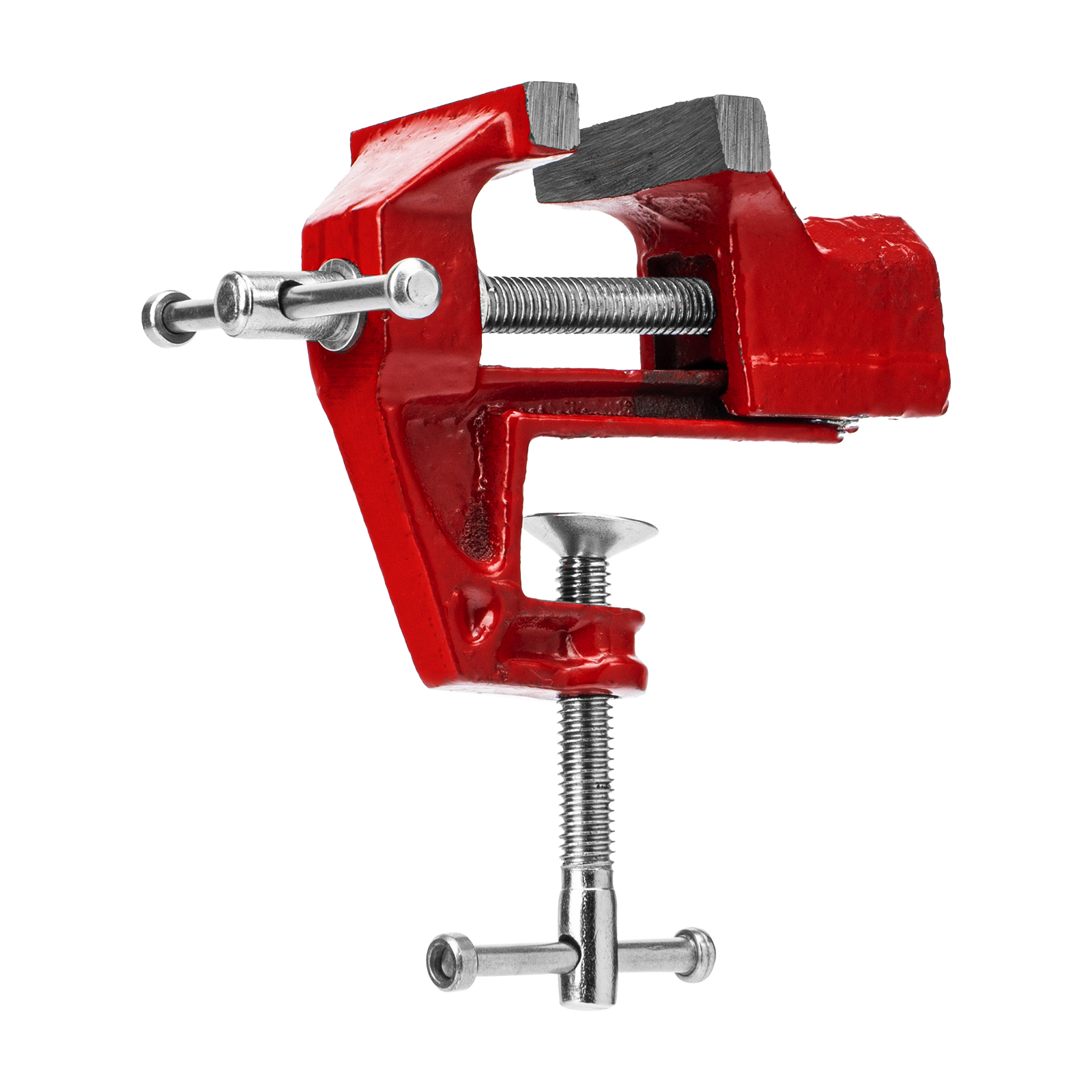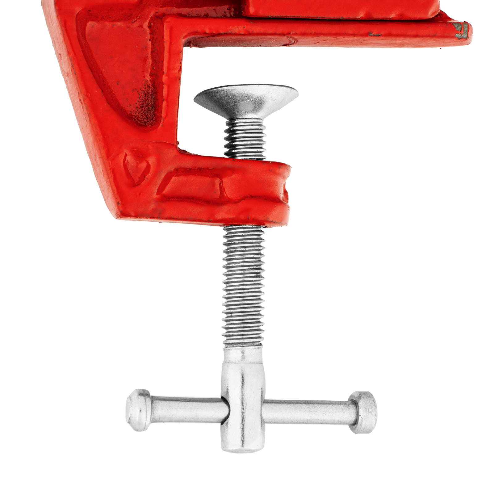 - Простое использование — винтовой зажимной механизм позволяет легко устанавливать и снимать тиски с рабочего стола.