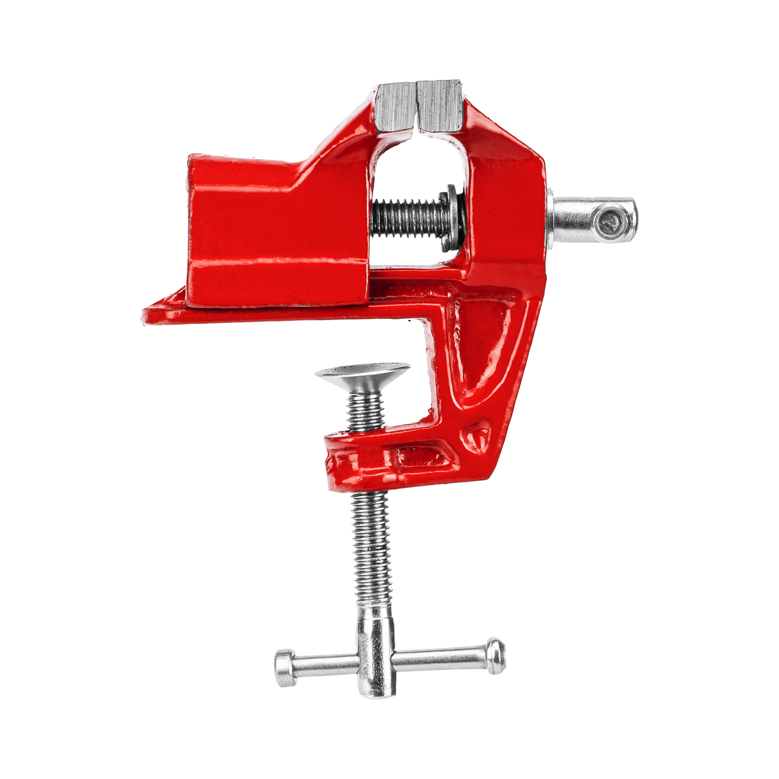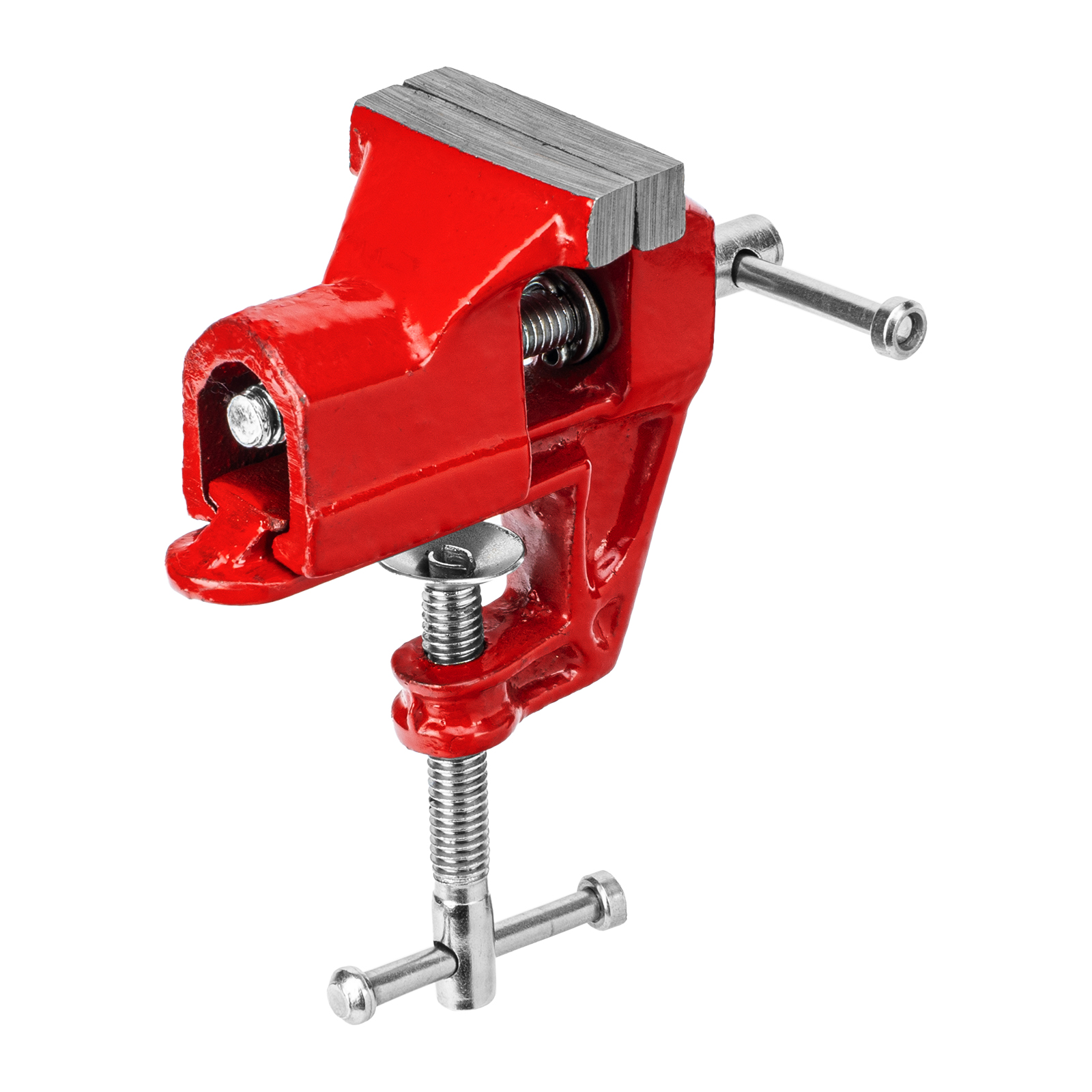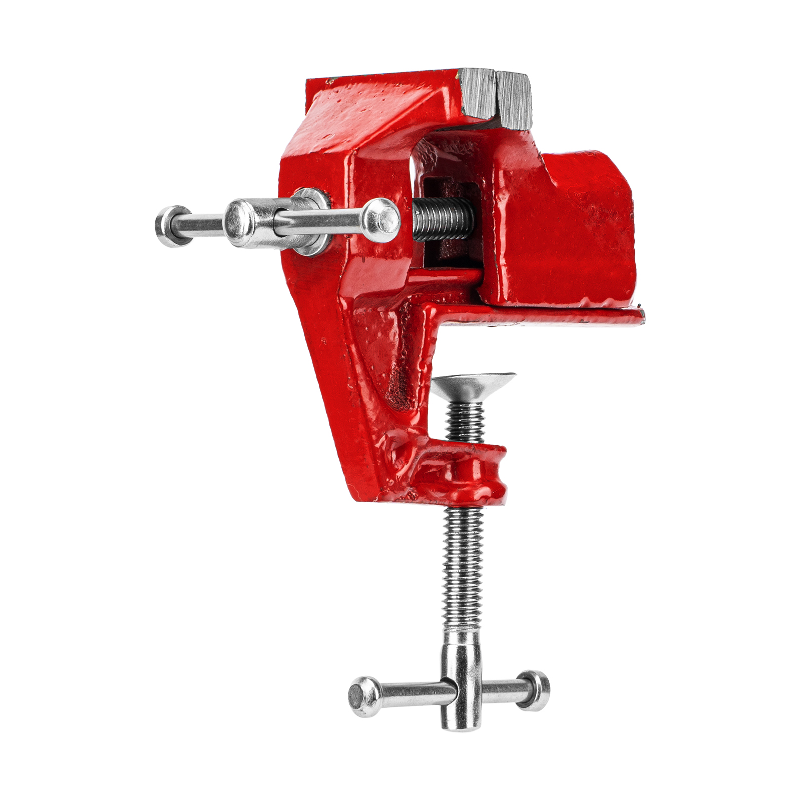 - Простое использование — винтовой зажимной механизм позволяет легко устанавливать и снимать тиски с рабочего стола.
