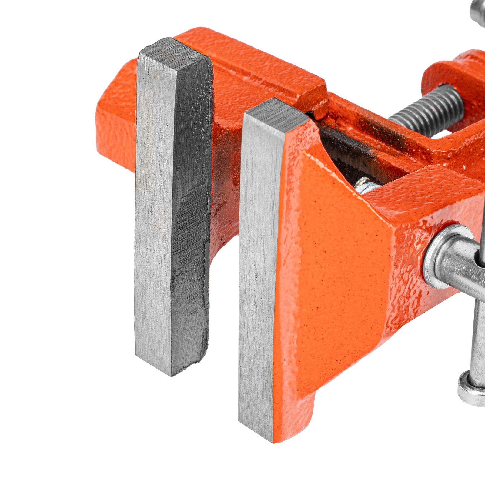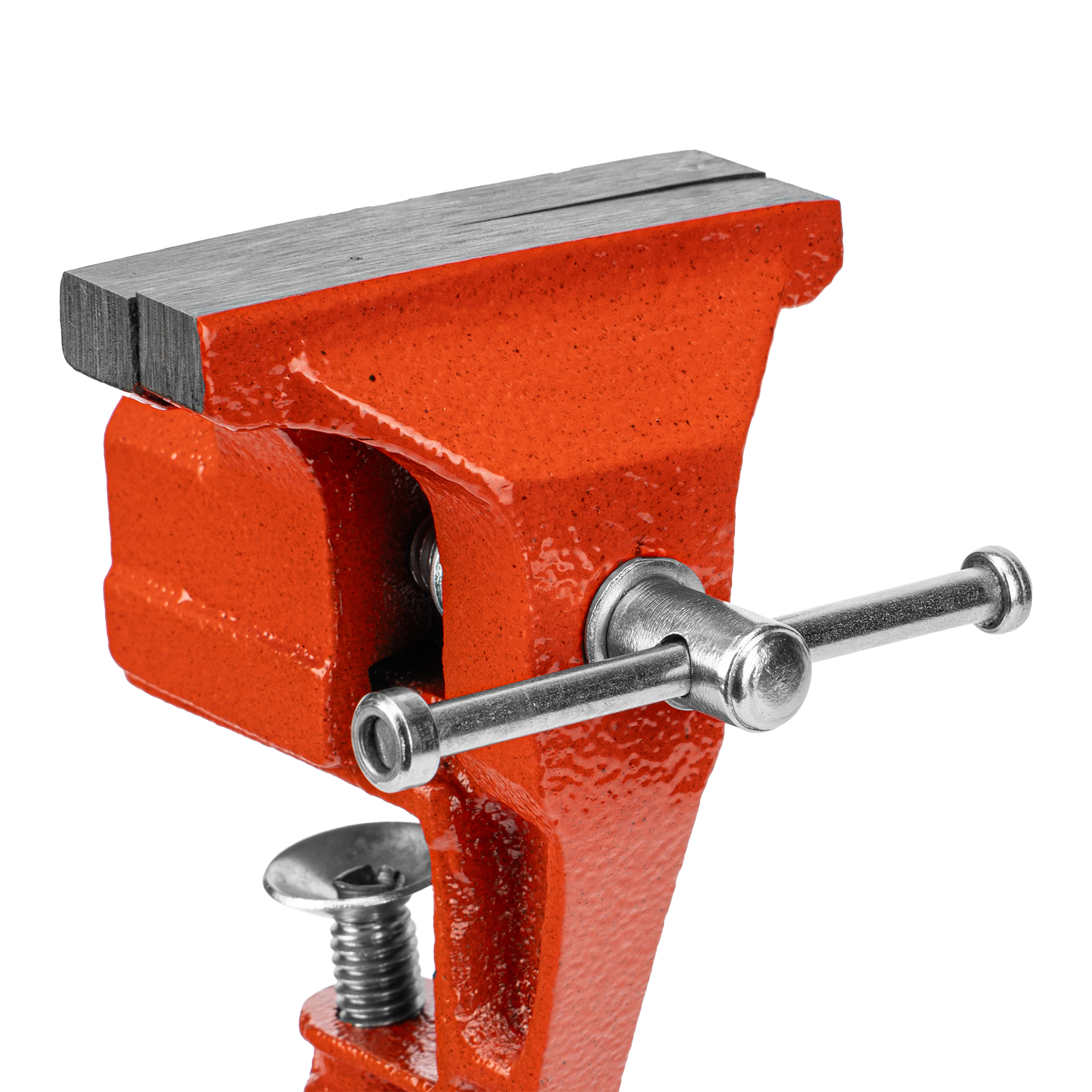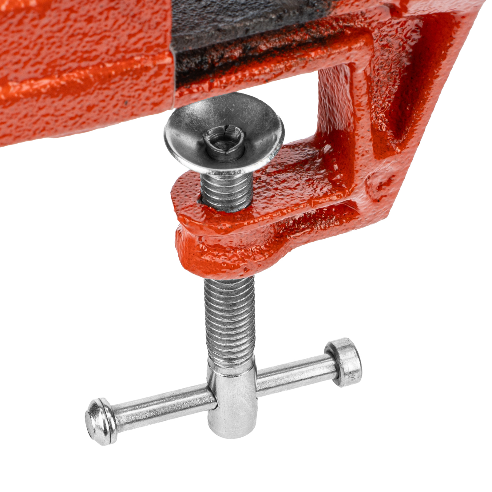 - Простое использование — винтовой зажимной механизм позволяет легко устанавливать и снимать тиски с рабочего стола.
