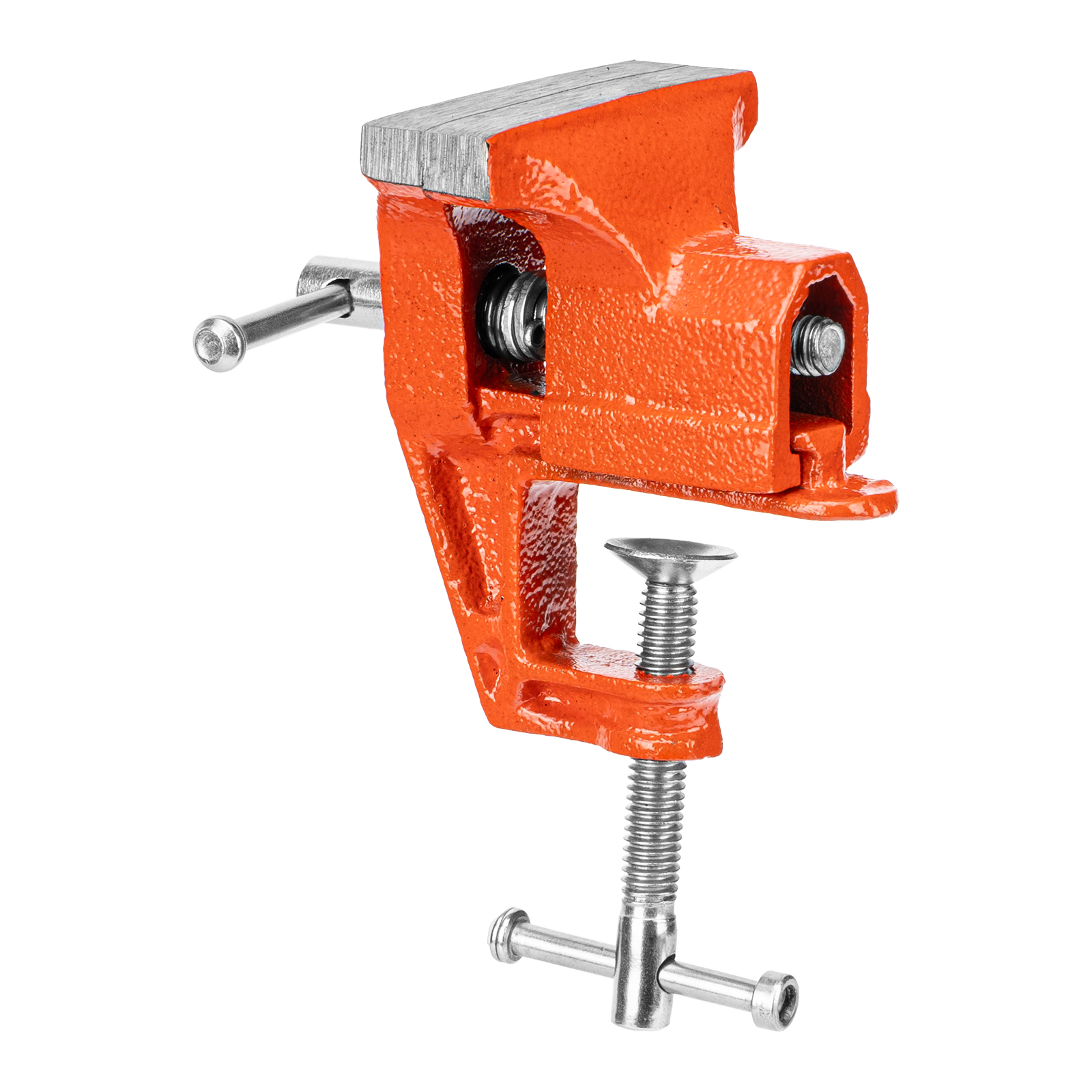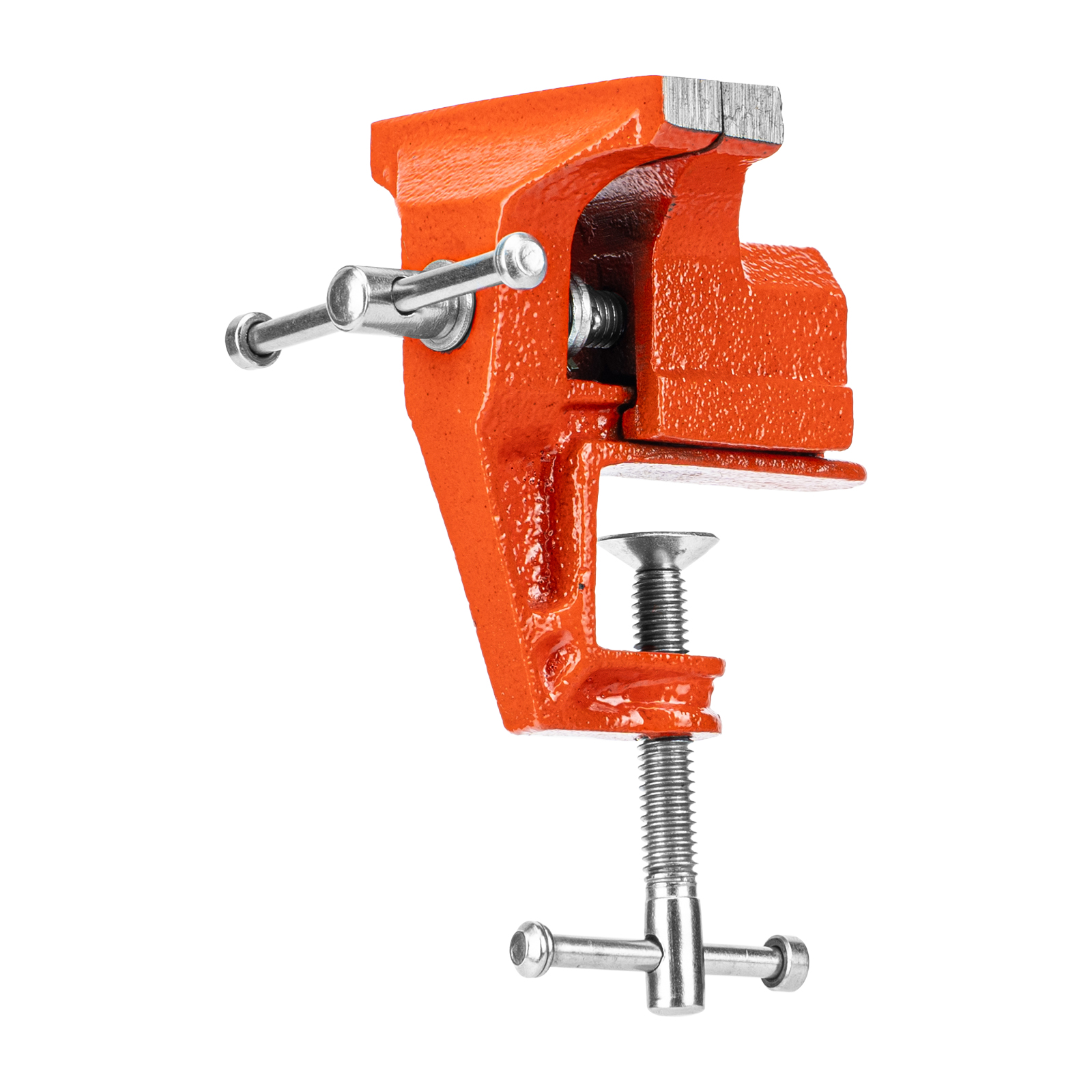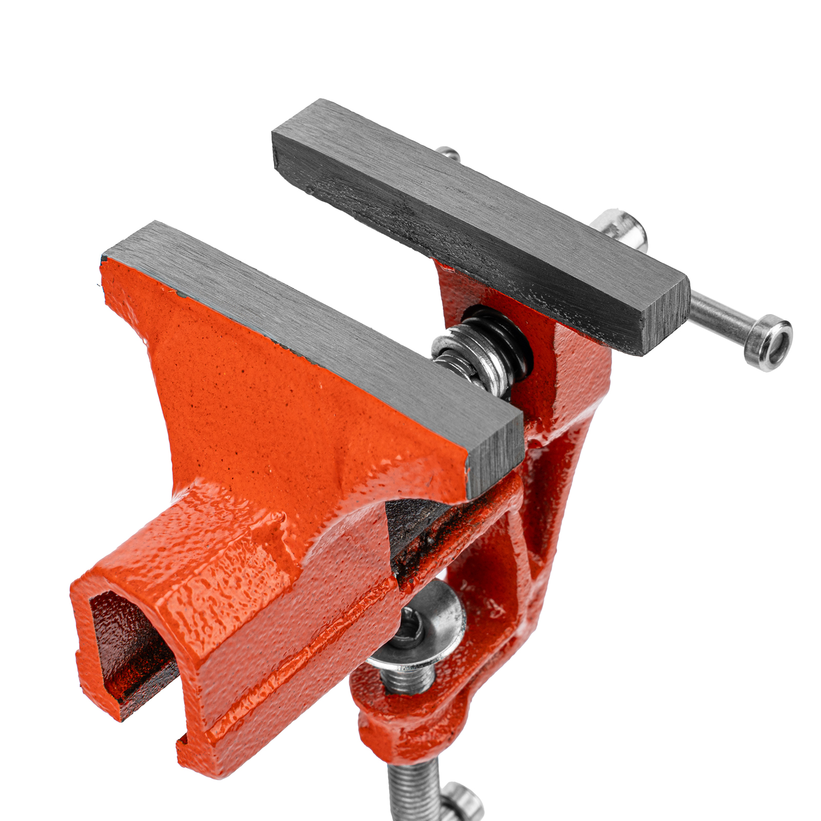- Простое использование — винтовой зажимной механизм позволяет легко устанавливать и снимать тиски с рабочего стола.