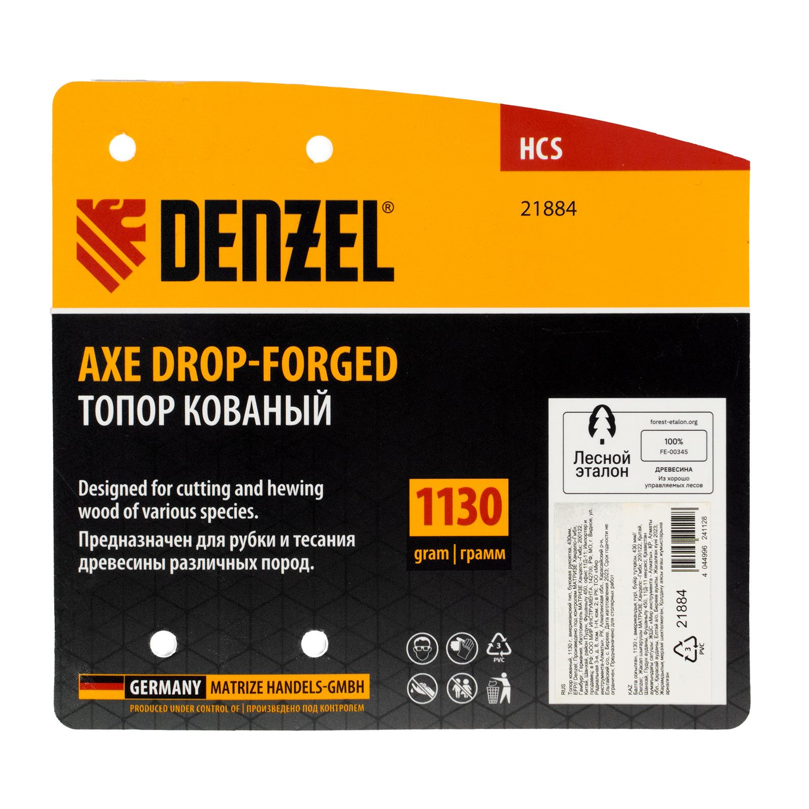 - Маркировка «Лесной эталон» — при изготовлении топорища использована древесина из сертифицированных лесов, полностью соблюдены требования, направленные на сохранение экологически ценных лесов.