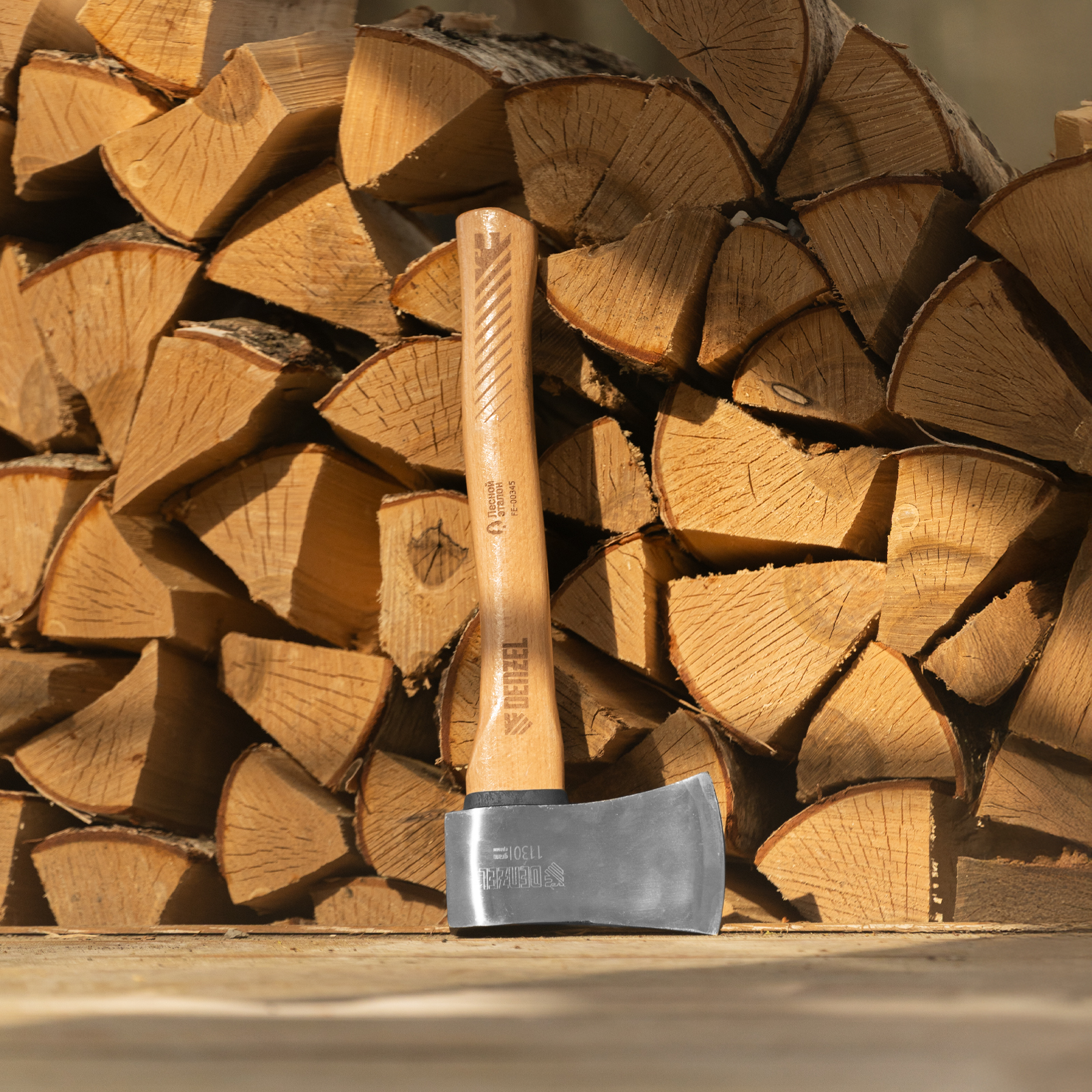 - Прочность — топорище изготовлено из твердой древесины бука и покрыто защитным лаком для предотвращения рассыхания и разбухания.