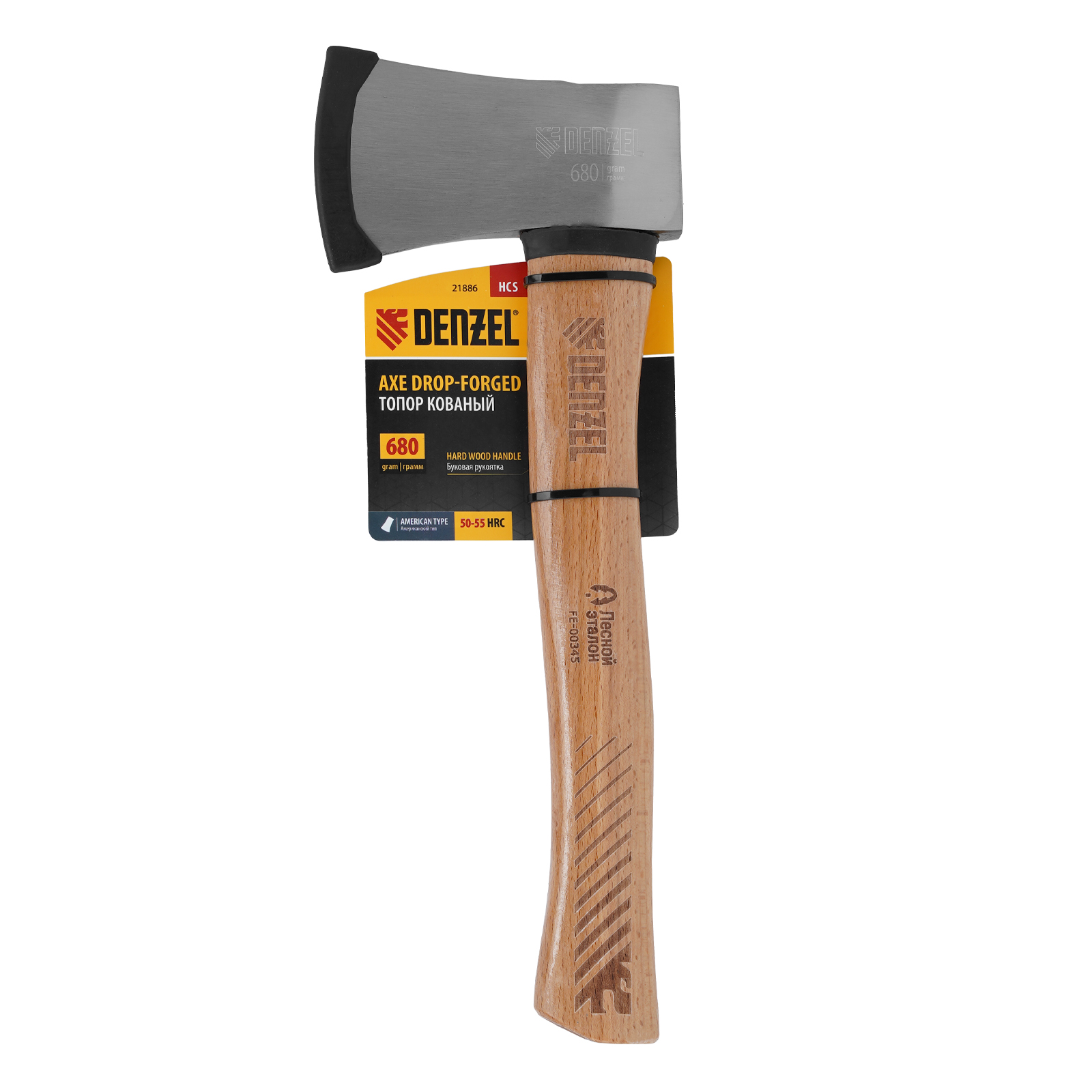 Кованый топор Denzel 21886 американского типа, с полотном весом 680 г и буковой рукояткой, предназначен для рубки и тесания древесины любых пород. Подходит для бытового и профессионального применения, также будет полезен любителям походов, охотникам и рыболовам — благодаря компактным размерам топор удобно брать с собой.