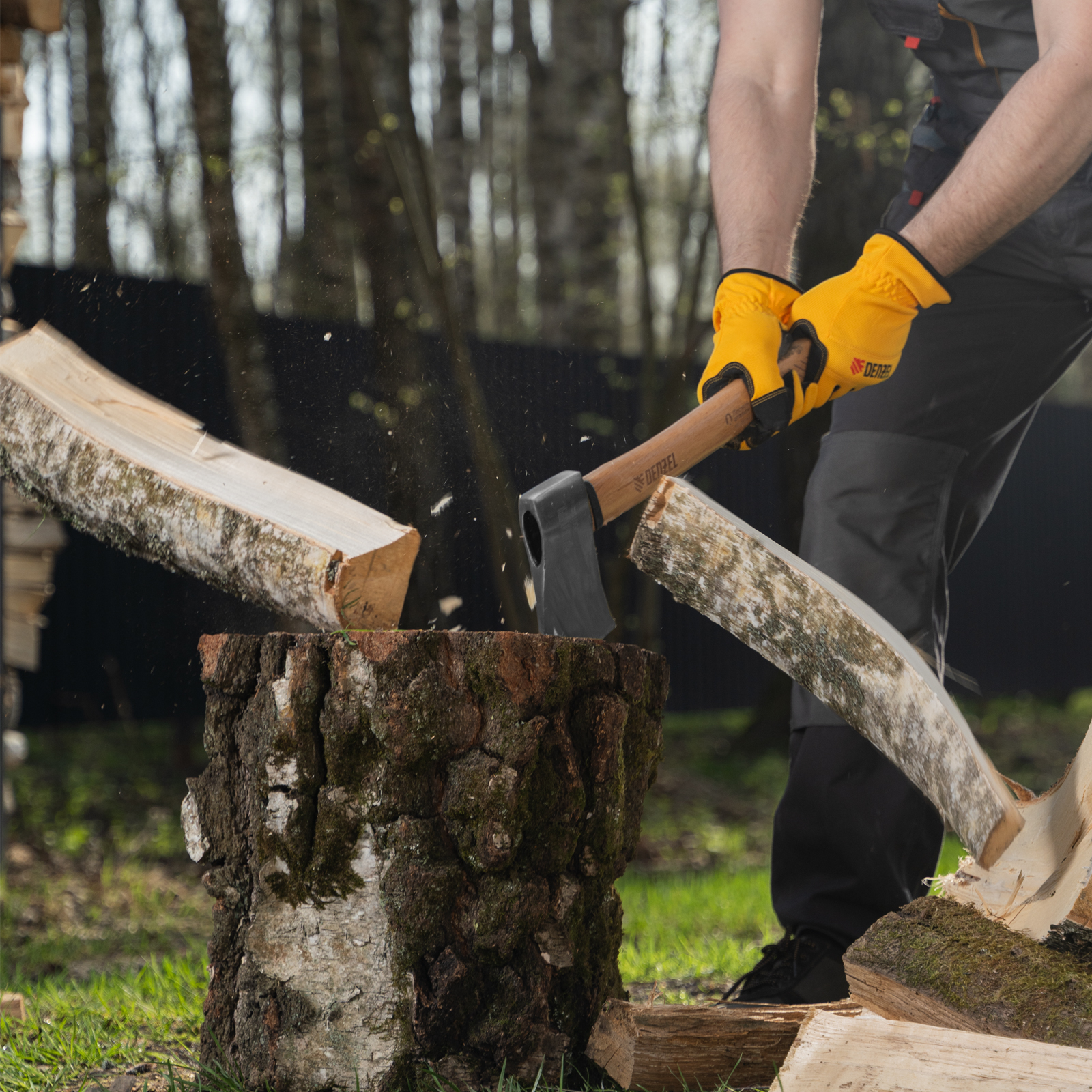 - Прочность — топорище изготовлено из твердой древесины бука и покрыто защитным лаком для предотвращения рассыхания и разбухания.