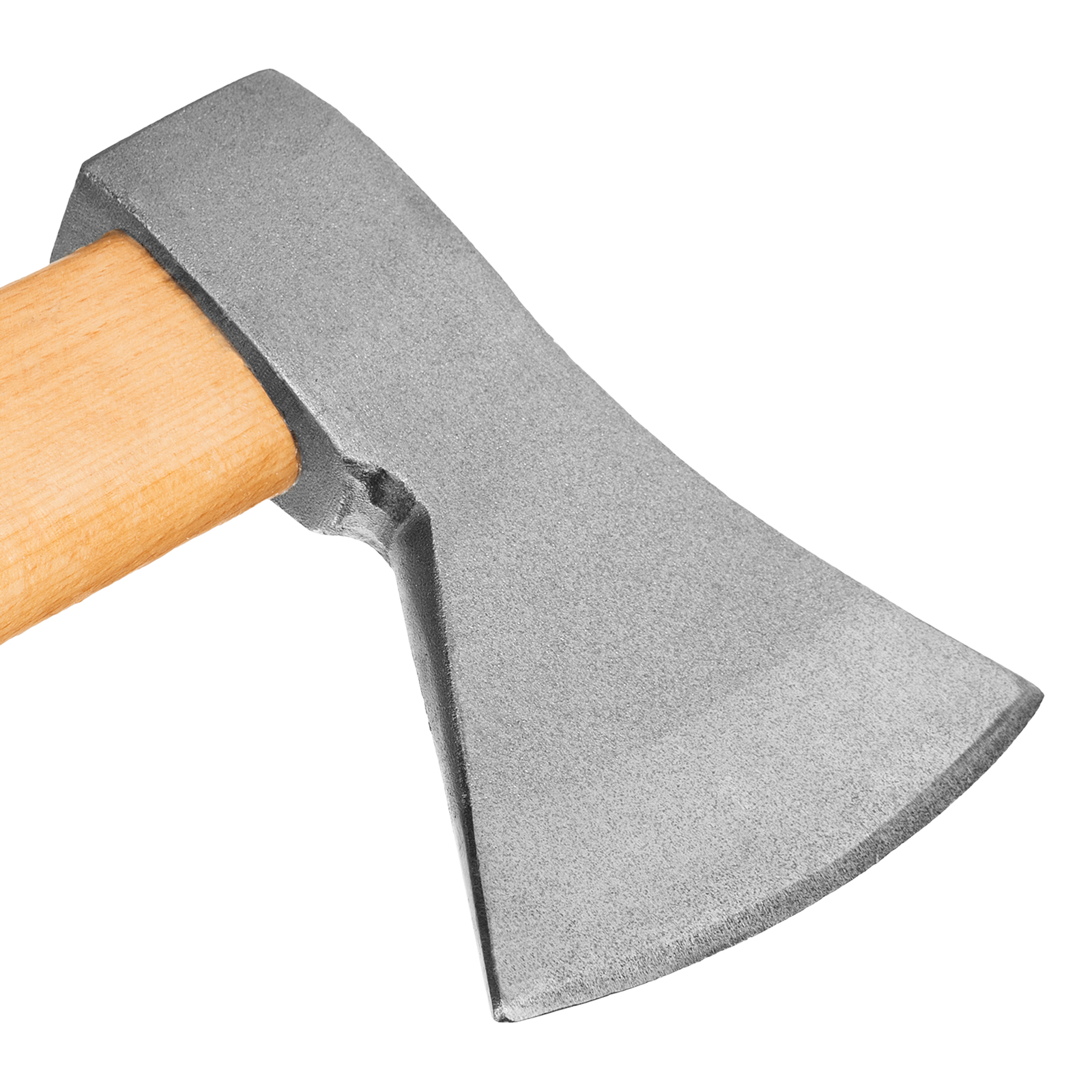 - Прочность и устойчивость к нагрузкам — голова топора выполнена из углеродистой стали 45, рабочие поверхности закалены до твердости 48-52 HRC