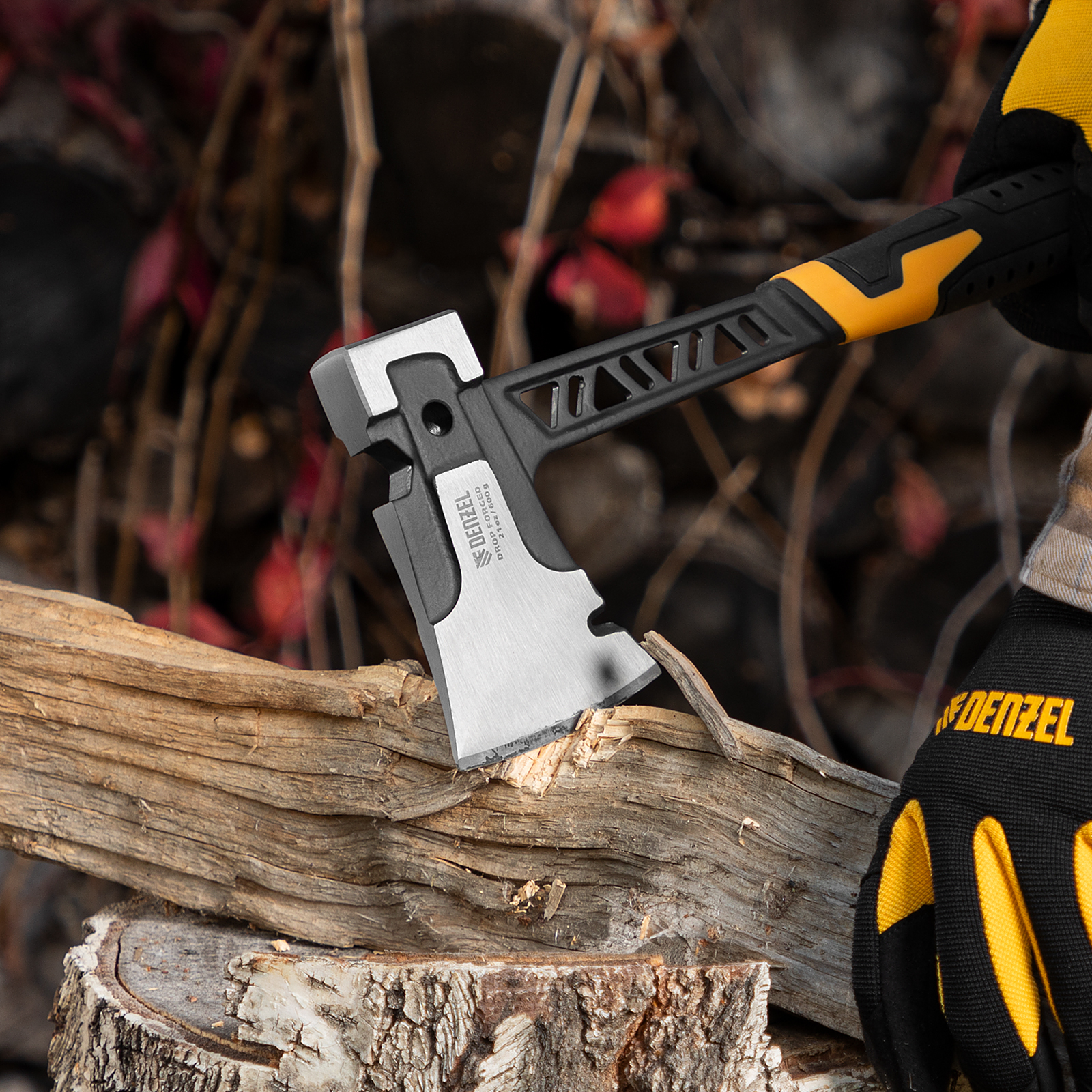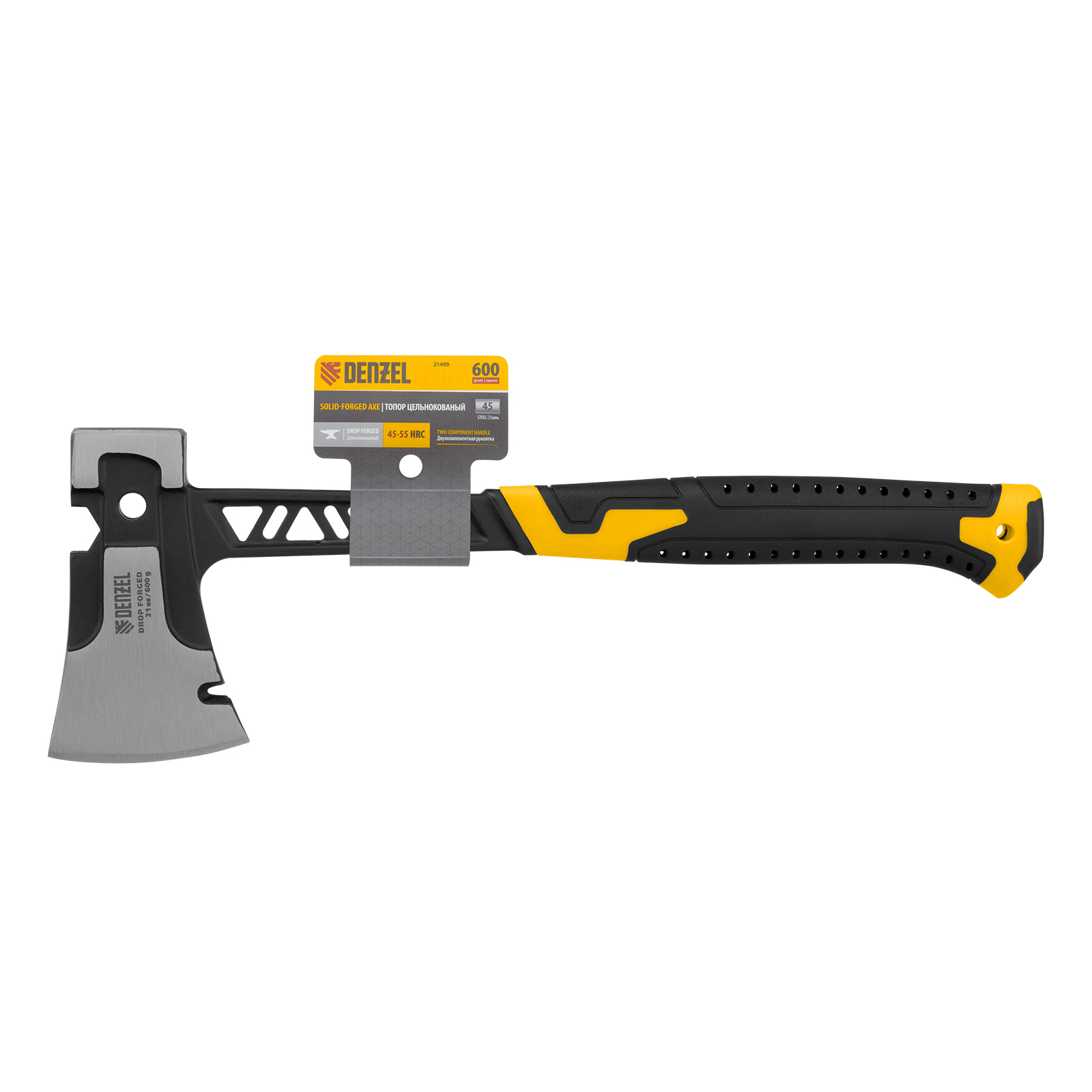 Топор цельнокованый 600 г, двухкомпонентная обрезиненная рукоятка Denzel в Челябинске