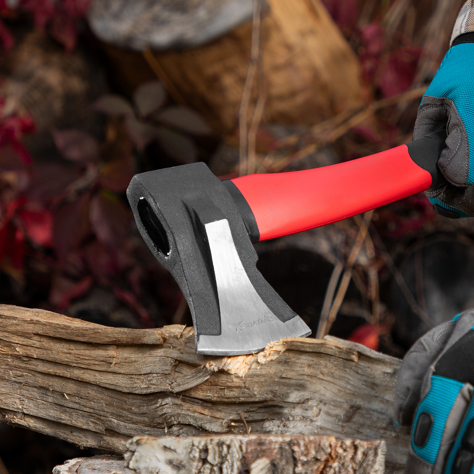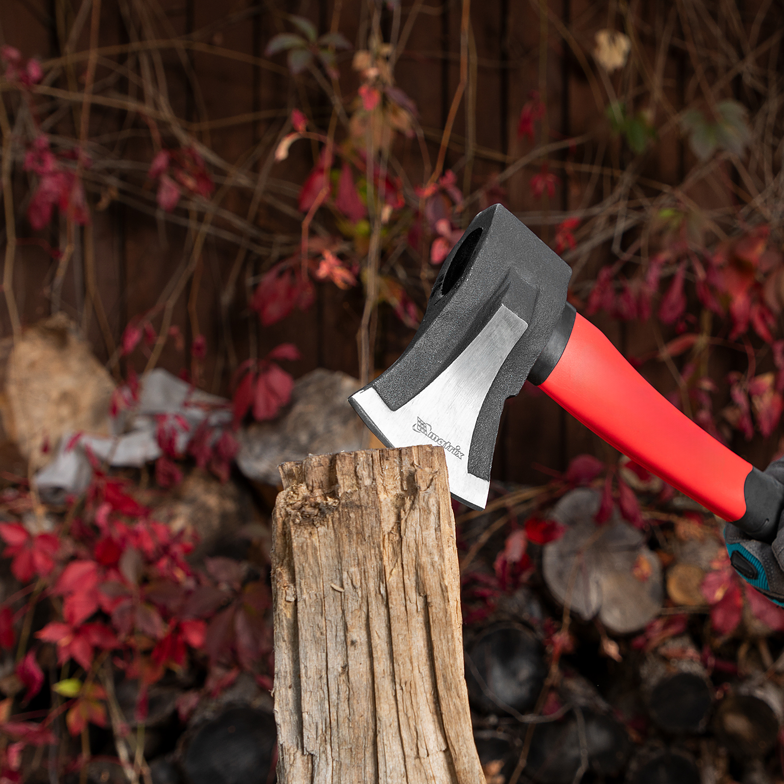 - Комфортная работа — резиновые накладки на топорище поглощают колебания от ударов и обеспечивают надежный хват.