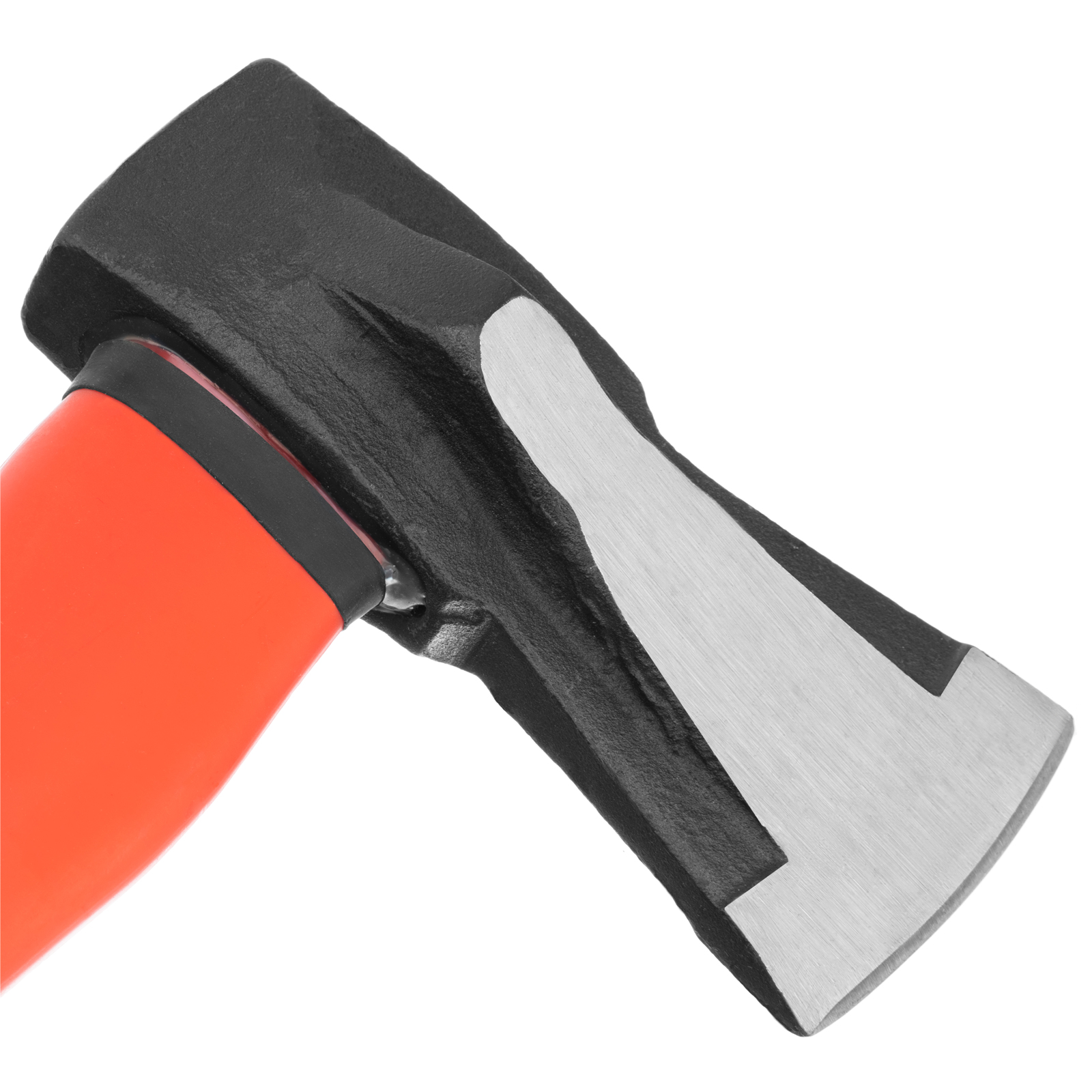 - Комфортная работа — фибергласовое топорище с резиновыми накладками поглощает колебания от ударов и не скользит в руках, а благодаря перфорации на рукоятке ладони не потеют во время работы.