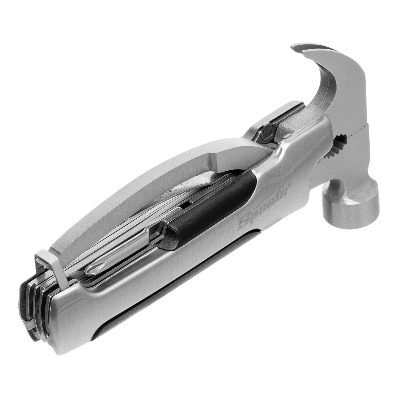 Трансформер Sparta 176075 выполняет 12 функций и включает в себя предметы, необходимые дома, на даче, рыбалке или охоте, а также в походе или поездке. Ножом можно разрезать веревку или вскрыть упаковку, а консервным ножом-открывалкой — открыть банку или бутылку. Молоток-гвоздодер пригодится для забивания и выпрямления гвоздей, а отвертки — для работы с резьбовым крепежом.