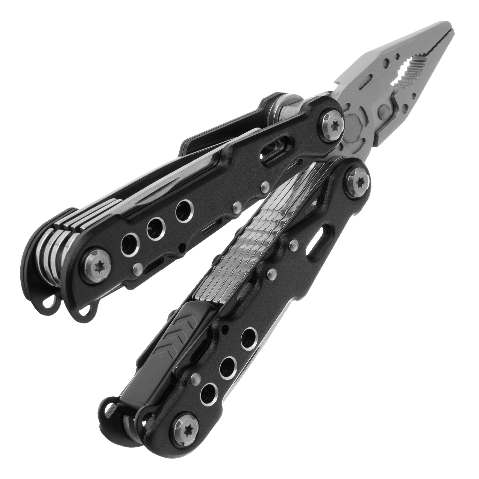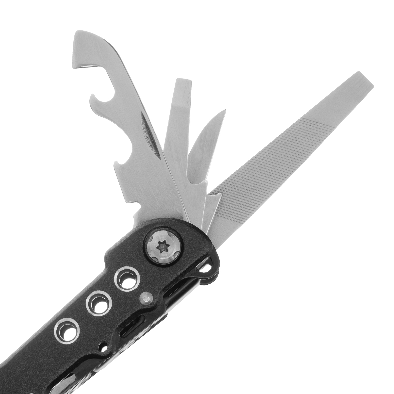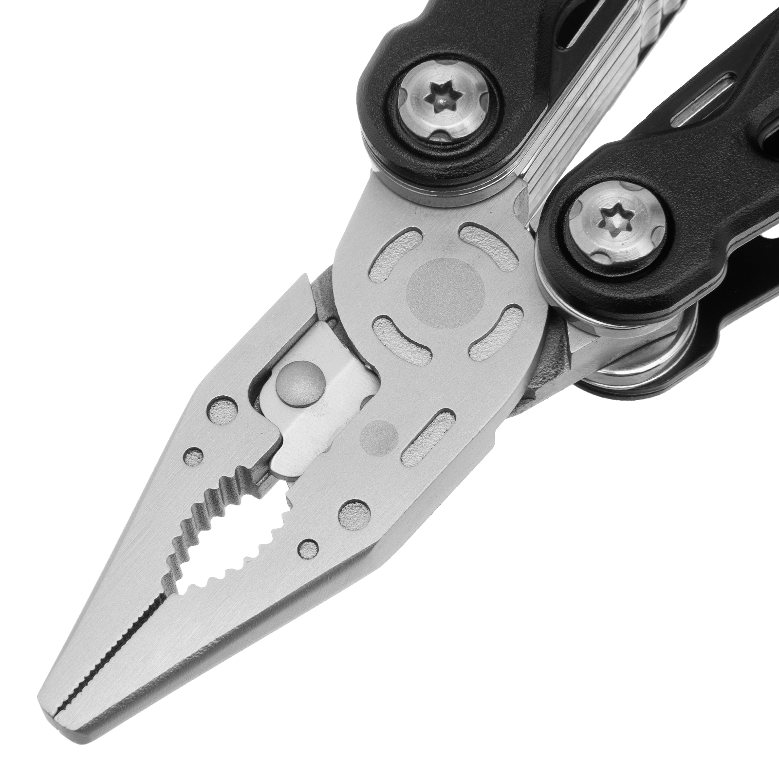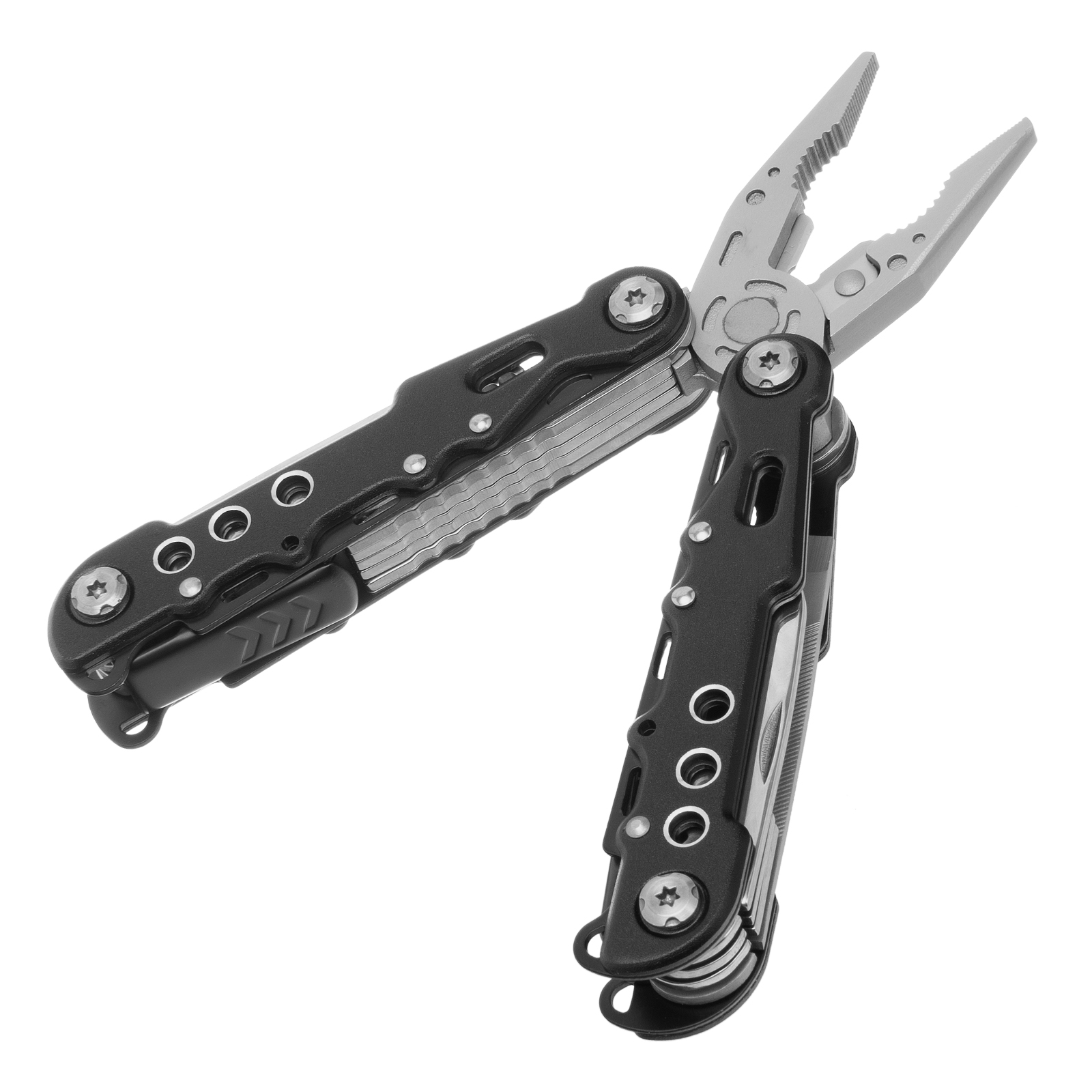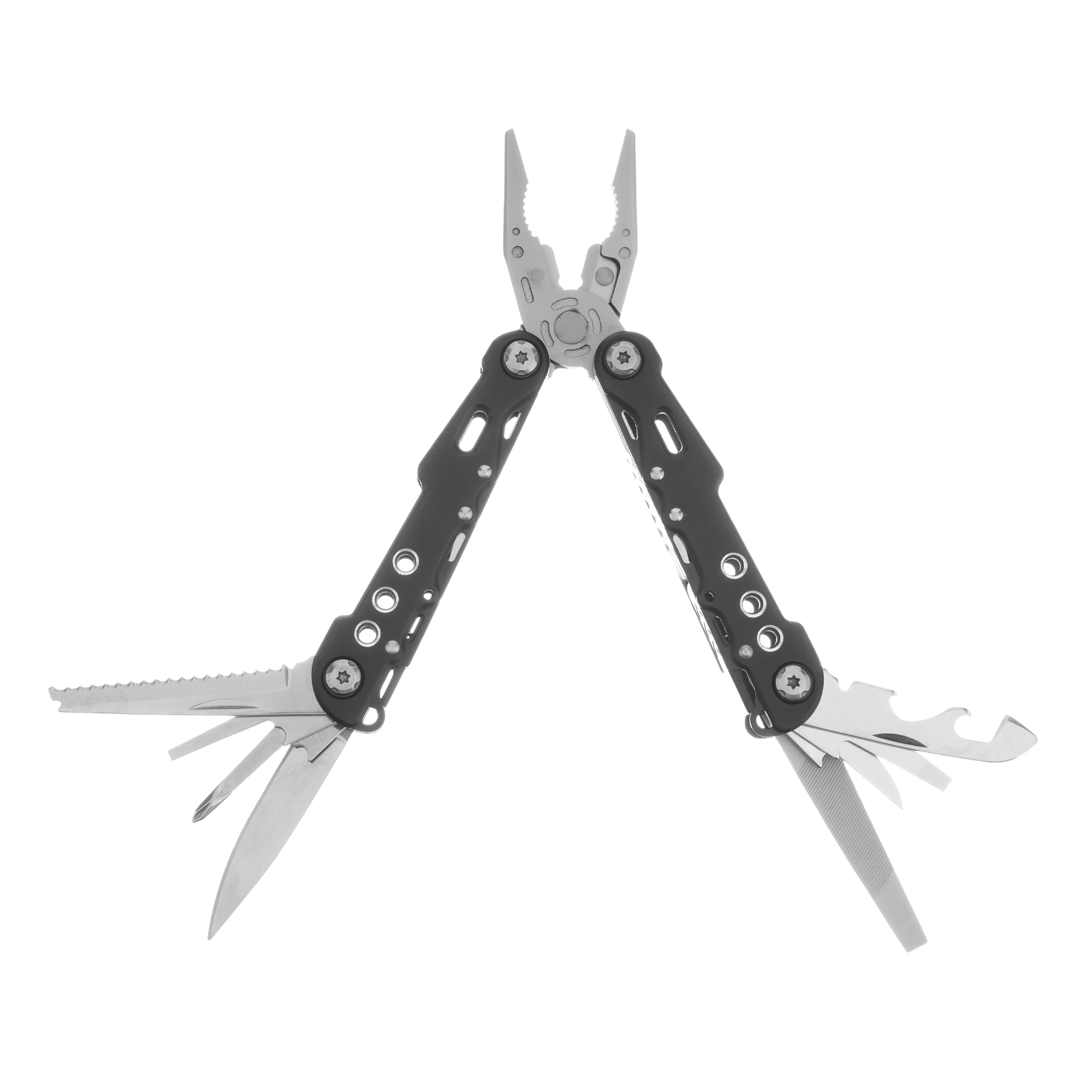 Трансформер Matrix 17622 — это мультитул длиной 165 мм с 13 функциями и авторазжимом, поставляется с чехлом. Его можно использовать в гараже — он включает длинногубцы с кусачками и захватом полукруглых предметов, а также отвертки. Инструмент пригодится в походе, на рыбалке или охоте, поскольку имеет в составе нож, пилу, открывалку и консервный нож. Благодаря пилке для ногтей мультитул будет полезен в быту.