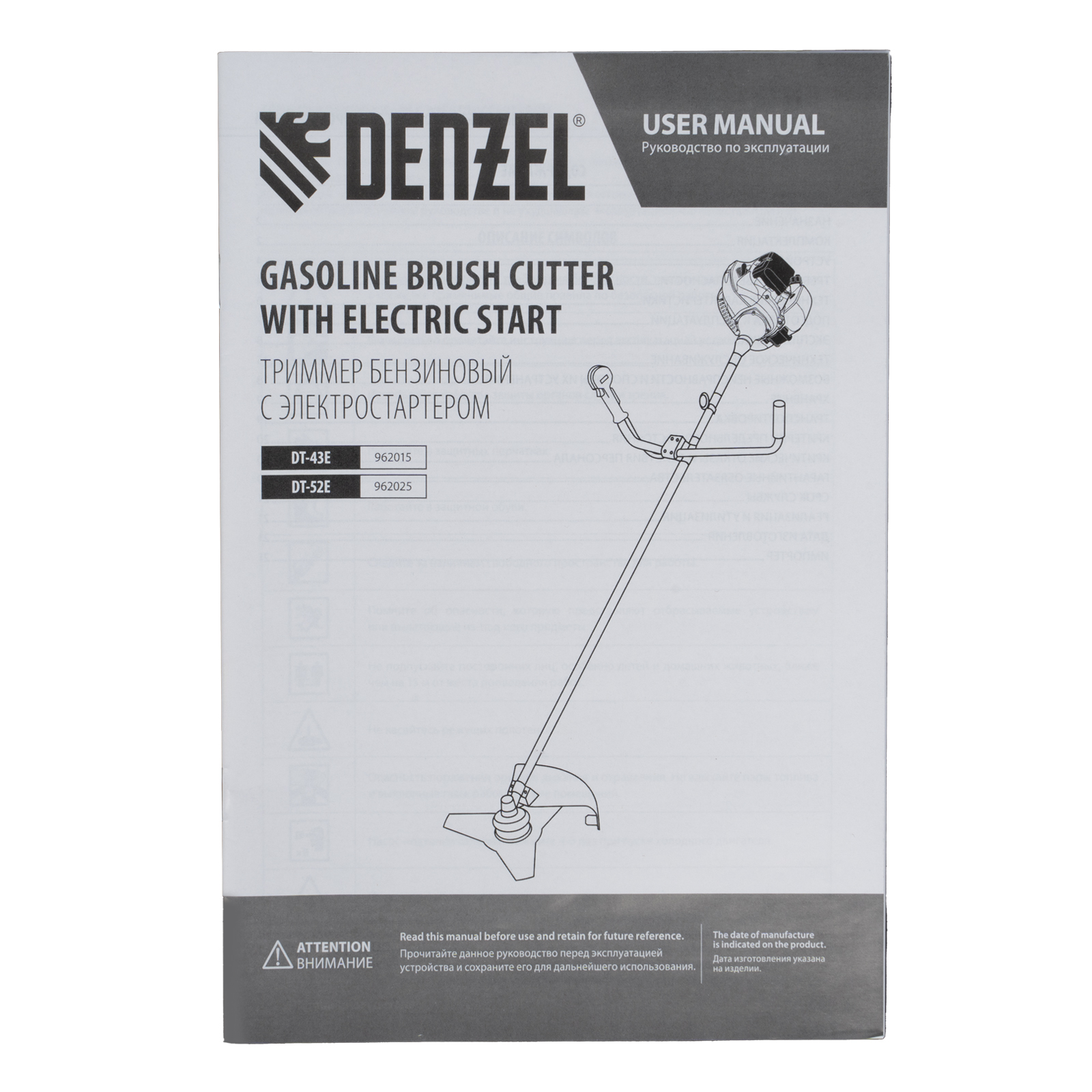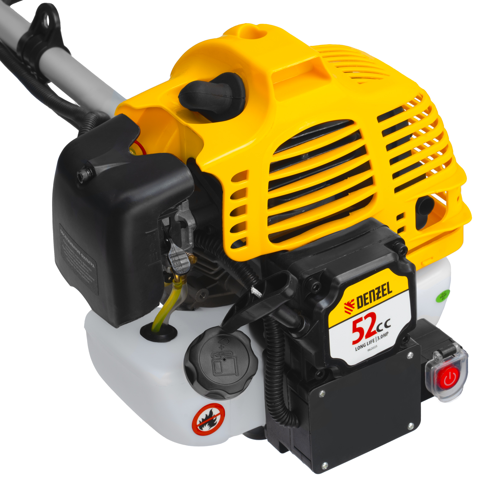 Триммер бензиновый DT-52E, 52 см3, неразъемная штанга, электростартер, состоит из 2 частей Denzel в Челябинске