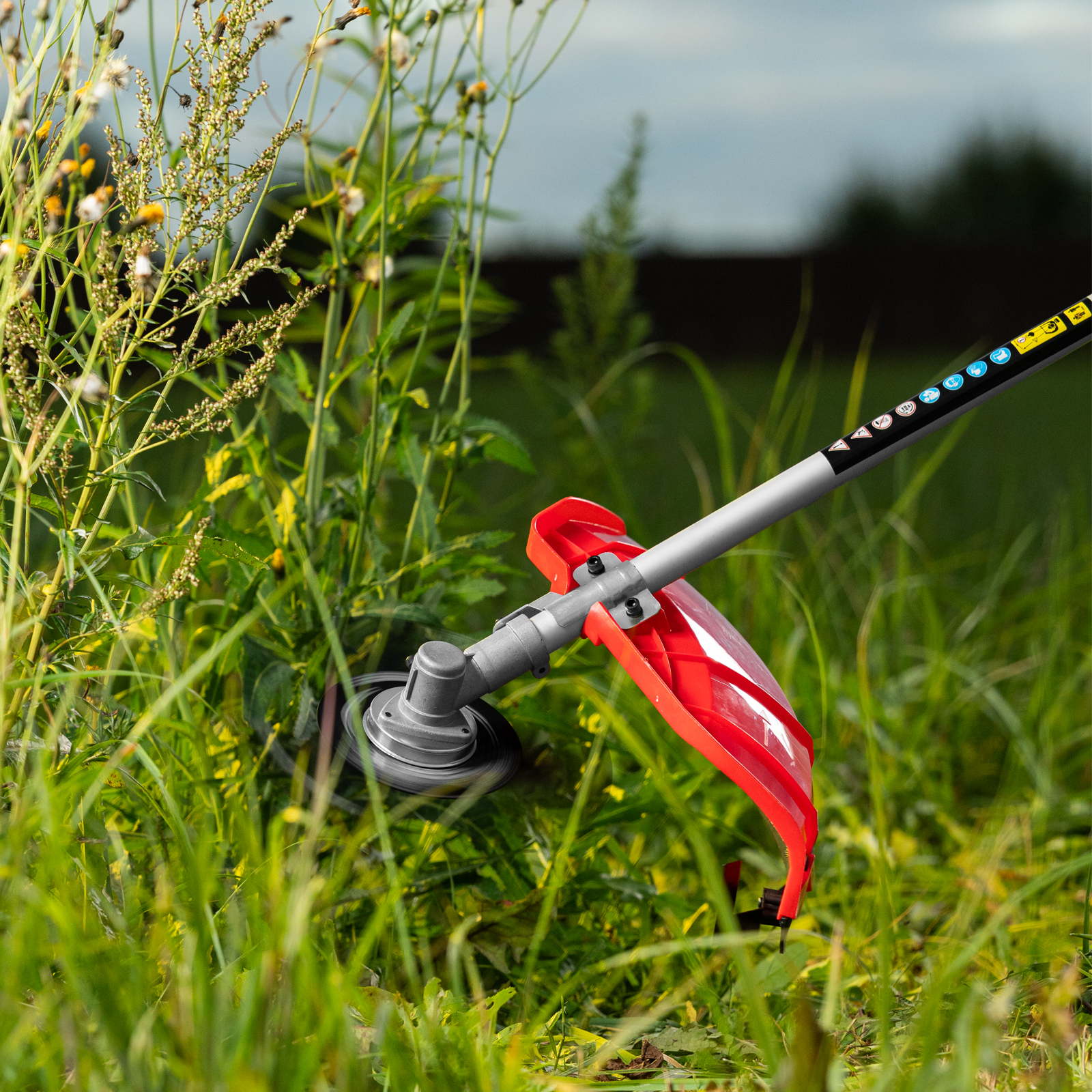 - Удобное хранение и транспортировка — благодаря разъемной штанге триммер не занимает много места.