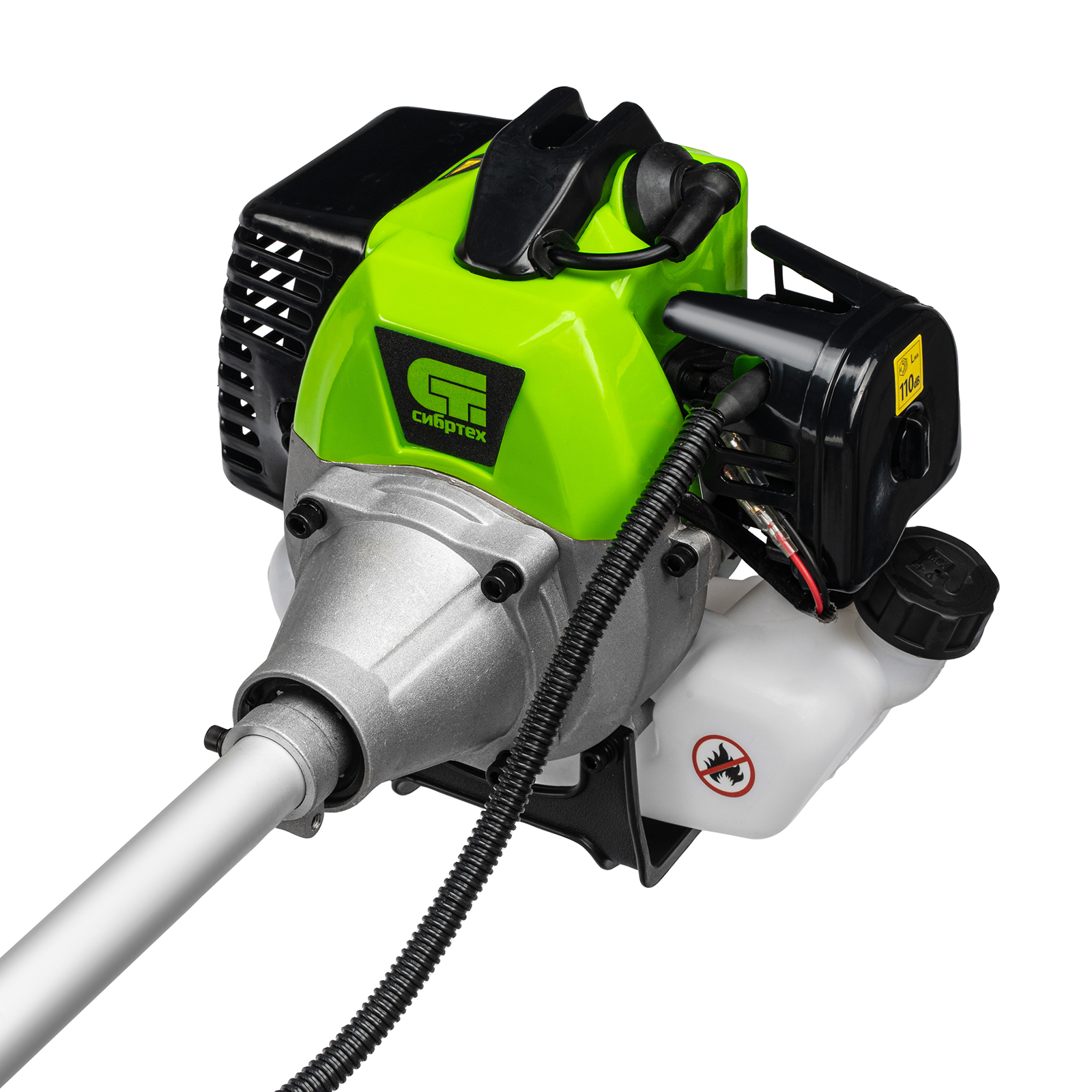 Триммер бензиновый Сибртех ТС-1800Р 962225 с двигателем объемом 33 см3 и разъемной штангой поставляется комплектом, состоящим из 2 частей. Используется для стрижки газонной травы и скашивания растительности. Входящий в комплект поставки трехлопастный нож позволяет легко справляться с густой, жесткой травой и толстыми стеблями сорняков. Оснастка вращается с частотой 9500 об/мин, ширина скашивания леской составляет 420 мм, ножом — 255 мм.