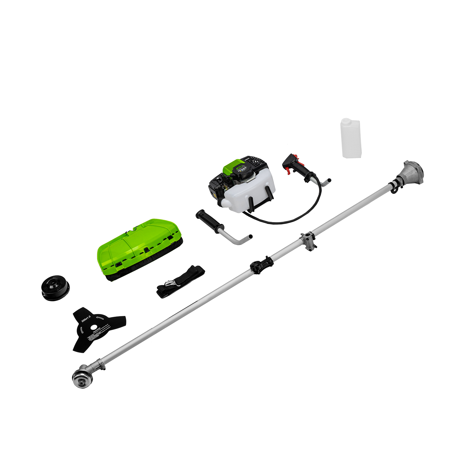 Двигатель с правой рукояткой - 1 шт, левая рукоятка - 1 штШтанга - 1 шт (состоит из 2 частей)Защитный кожух с ножом - 1 шт, кронштейн защитного кожуха - 1 штКатушка с леской - 1 шт, нож трехлопастной - 1 штДозатор для приготовления смеси - 1 шт Ремень плечевой - 1 штКорпус сцепления с крепежом - 1 шт, редуктор с винтами - 1 штУзел крепления рукояток с крепежом - 1 шт, узел подвеса ремня - 1 штСвечной ключ - 1 шт, имбусовый ключ Н5 - 1 шт, имбусовый ключ Н6 - 1 штБолт M6×20 - 4 шт, болт M5×15 - 2 шт, гайка M5 - 2 шт, хомут - 2 штСоединительная муфта - 1 шт, коннектор штанги - 1 штРуководство по эксплуатации с гарантийным талоном - 1 шт. |