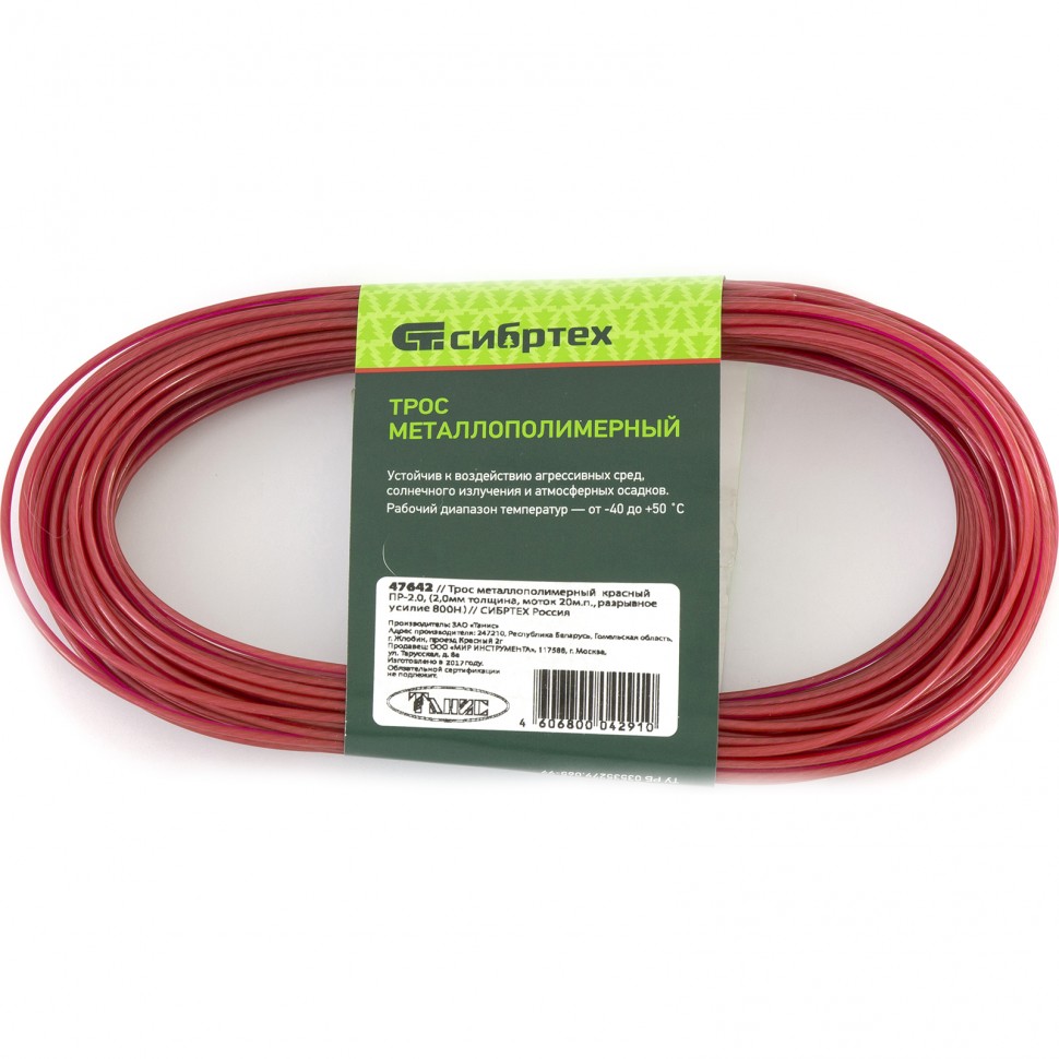 Трос металлополимерный красный ПР-2.0, толщина 2.0 мм, моток 20 метров Сибртех в Челябинске