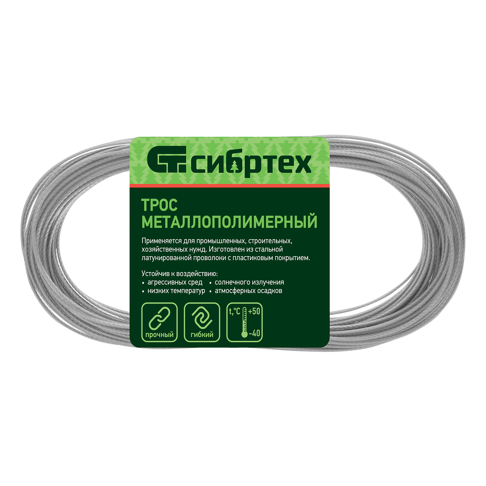 - Дополнительная защита от окисления — трос покрыт пластифицированным поливинилхлоридом.
