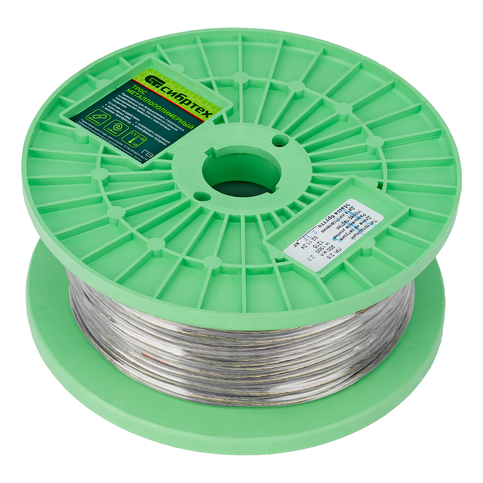 Трос металлополимерный прозрачный ПР-2.5, толщина 2.5 мм, катушка 200 метров Сибртех в Челябинске