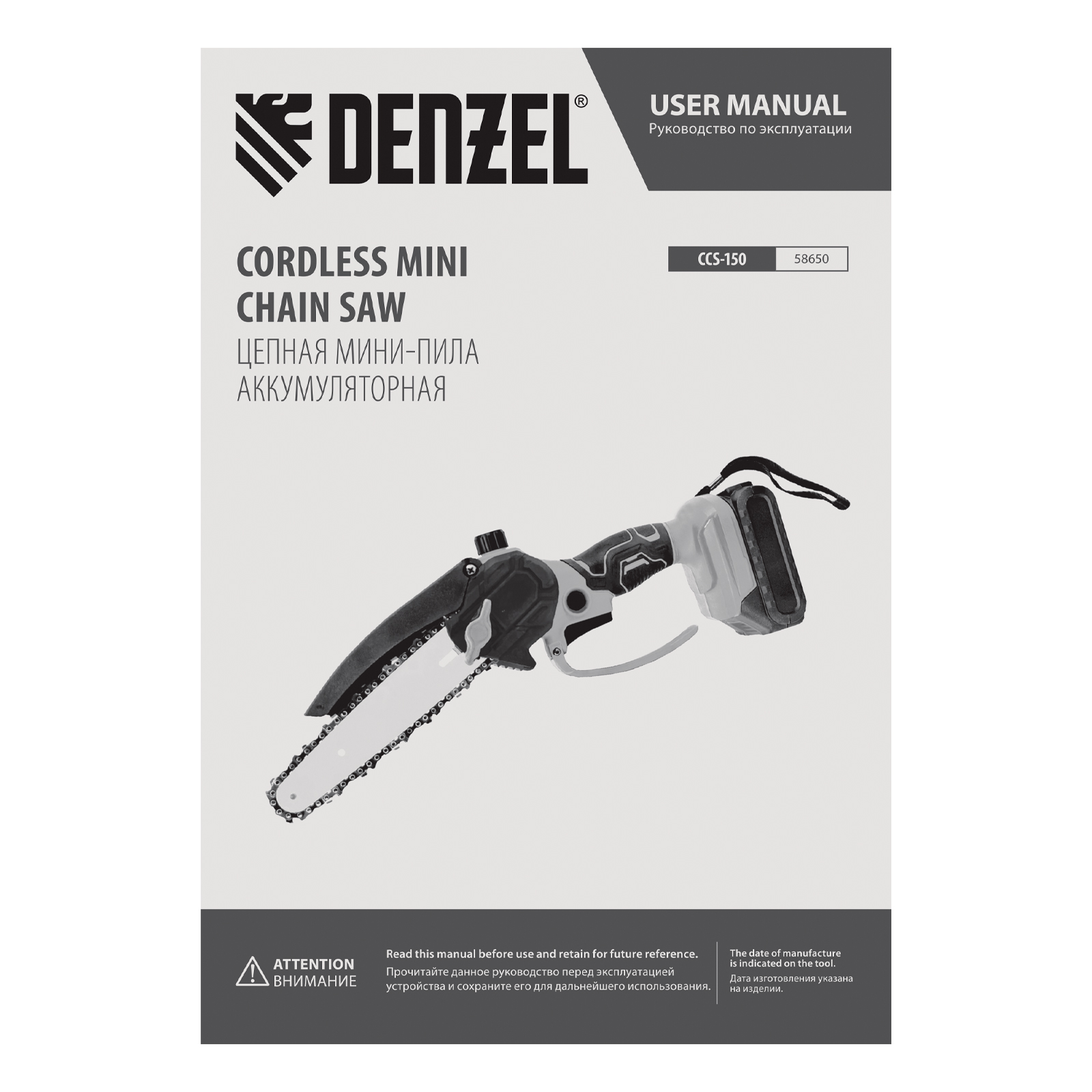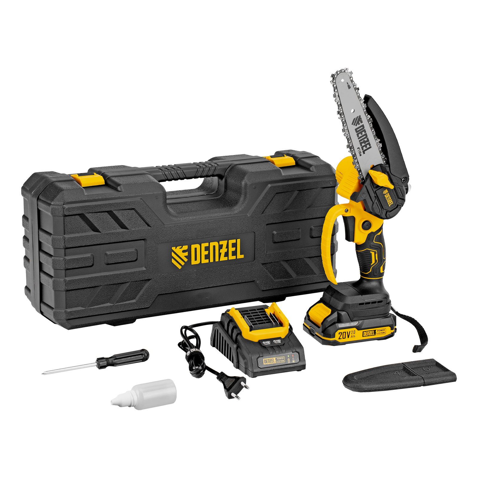 Цепная мини-пила аккумуляторная бесщет., CCS-150, шина 150 мм, Li-Ion, 20 В Denzel в Челябинске