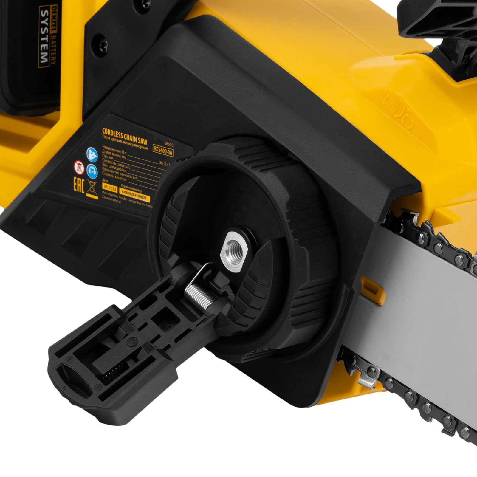 Цепная пила аккумуляторная бесщеточная RCS400-36, Li-ion, 36 В, 4 Ач, шина 400 мм Denzel в Челябинске