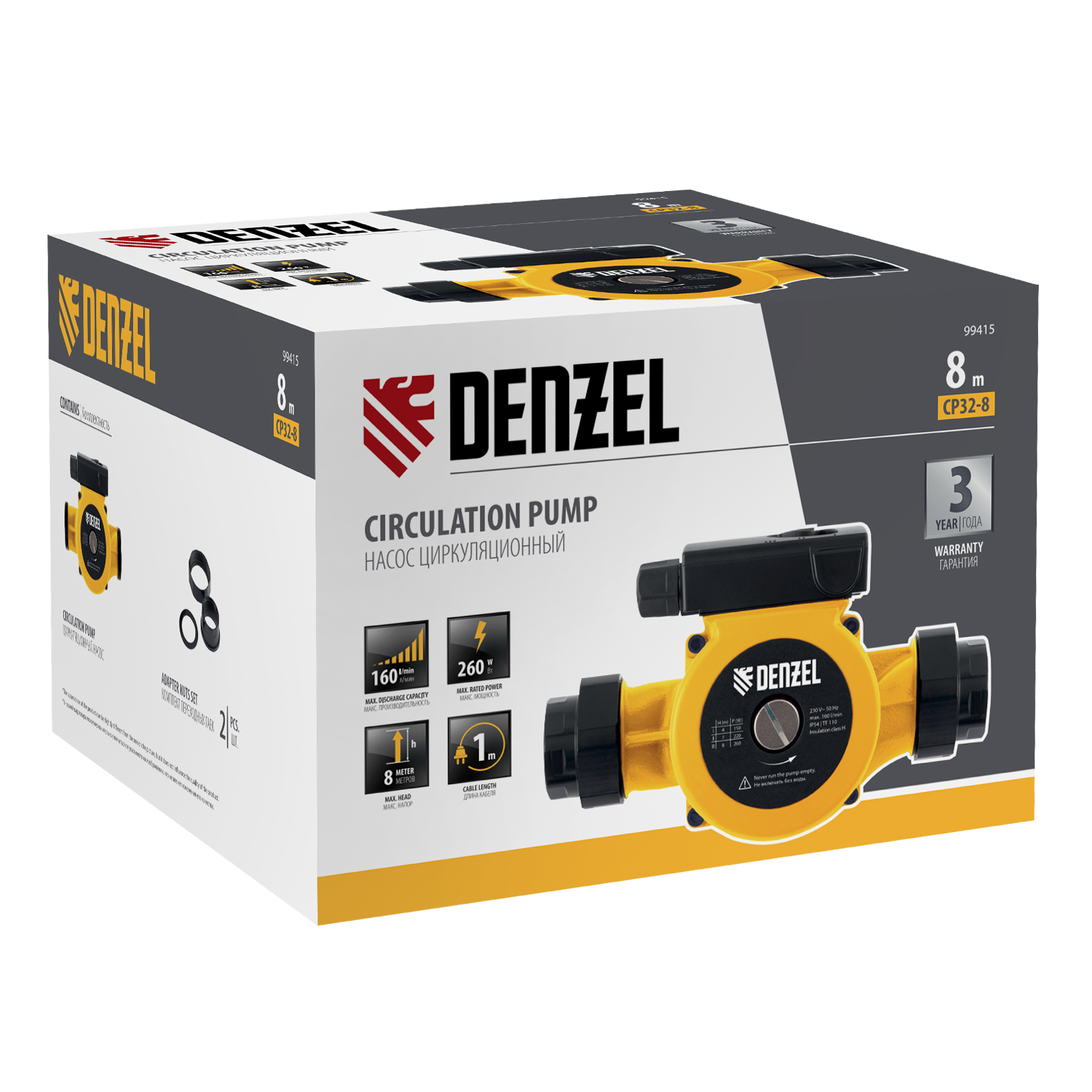Циркуляционный насос CP32-8, напор 8 м, 160 л/мин, 1 м кабель, монт. длина 180 мм Denzel в Челябинске