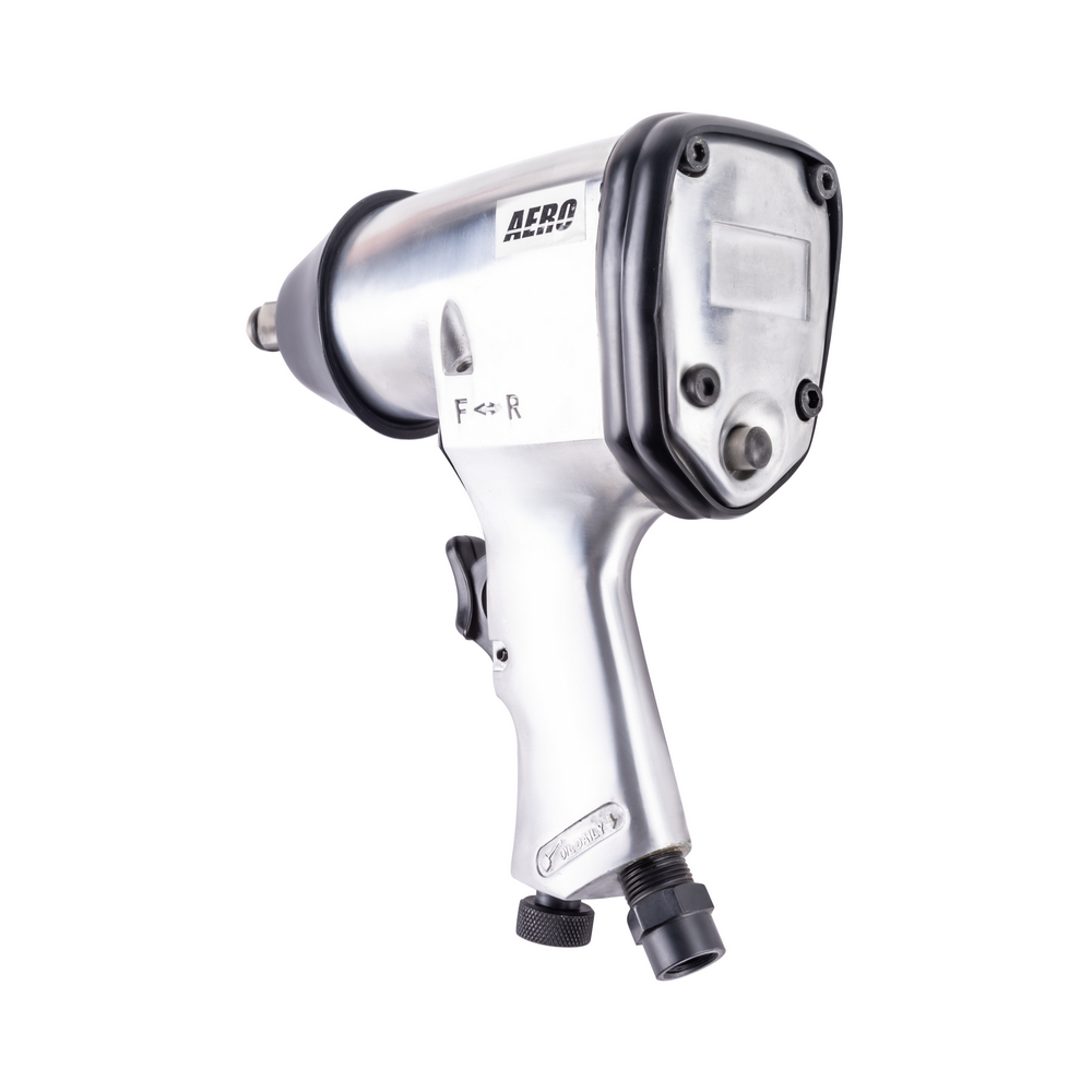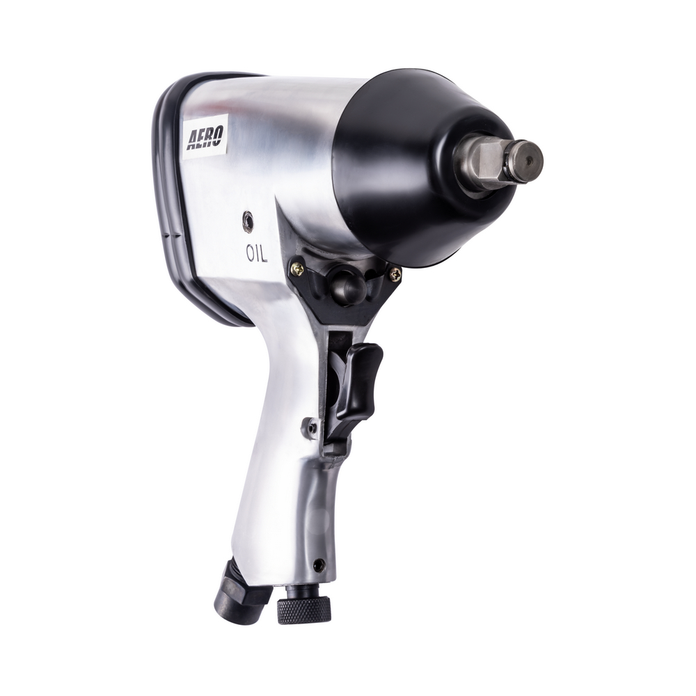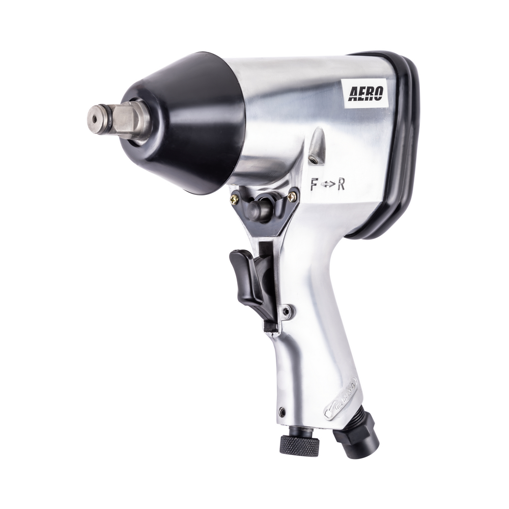 Пневматический ударный гайковёрт AERO с крутящим моментом в 310 Нм предназначен для работы с резьбовыми соединениями. Ударно-вращательное действие гайковерта используются для закручивания или откручивания крепежных деталей. Для этого изделие оснащено переключателем для реверса. Применение гайковёрта в быту или в профессиональной сфере позволяет не только сэкономить время и силы, но и значительно повышает долговечность элементов резьбовых соединений, а значит, и общее качество сборки механизма. Корпус гайковёрта изготовлен из легкого алюминиевого сплава, а приводной квадрат с фрикционным кольцом размером 1/2" изготовлен из очень прочной стали, легированной хромом, молибденом и никелем. Отток воздуха осуществляется вниз через рукоятку пистолета. Имеет короткую ось. Может применяться в автосервисе для легкой работы или на сборочных производствах, также прекрасно подойдет в качестве профессионального инструмента для гаража.