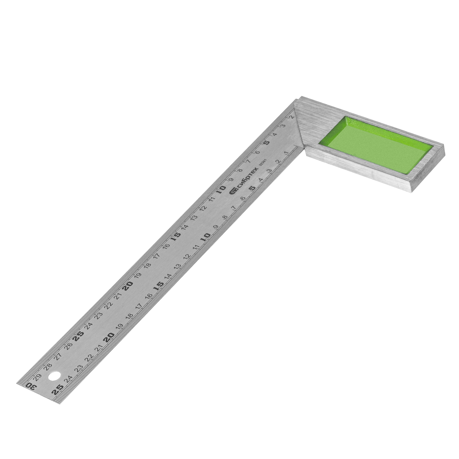 Металлический угольник Сибртех 32361 длиной 300 мм предназначен для проверки углов 45° и 90° во время сборки и обработки изделий. Используется также для разметки поверхностей во время строительных и столярных работ.