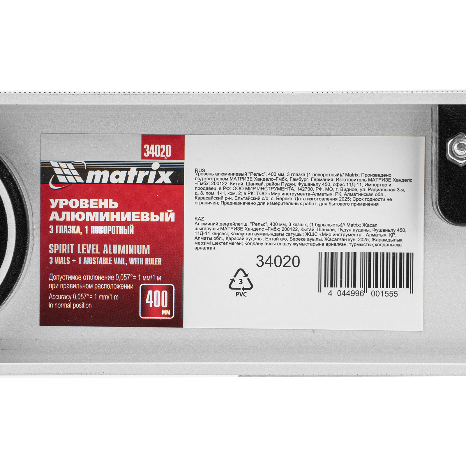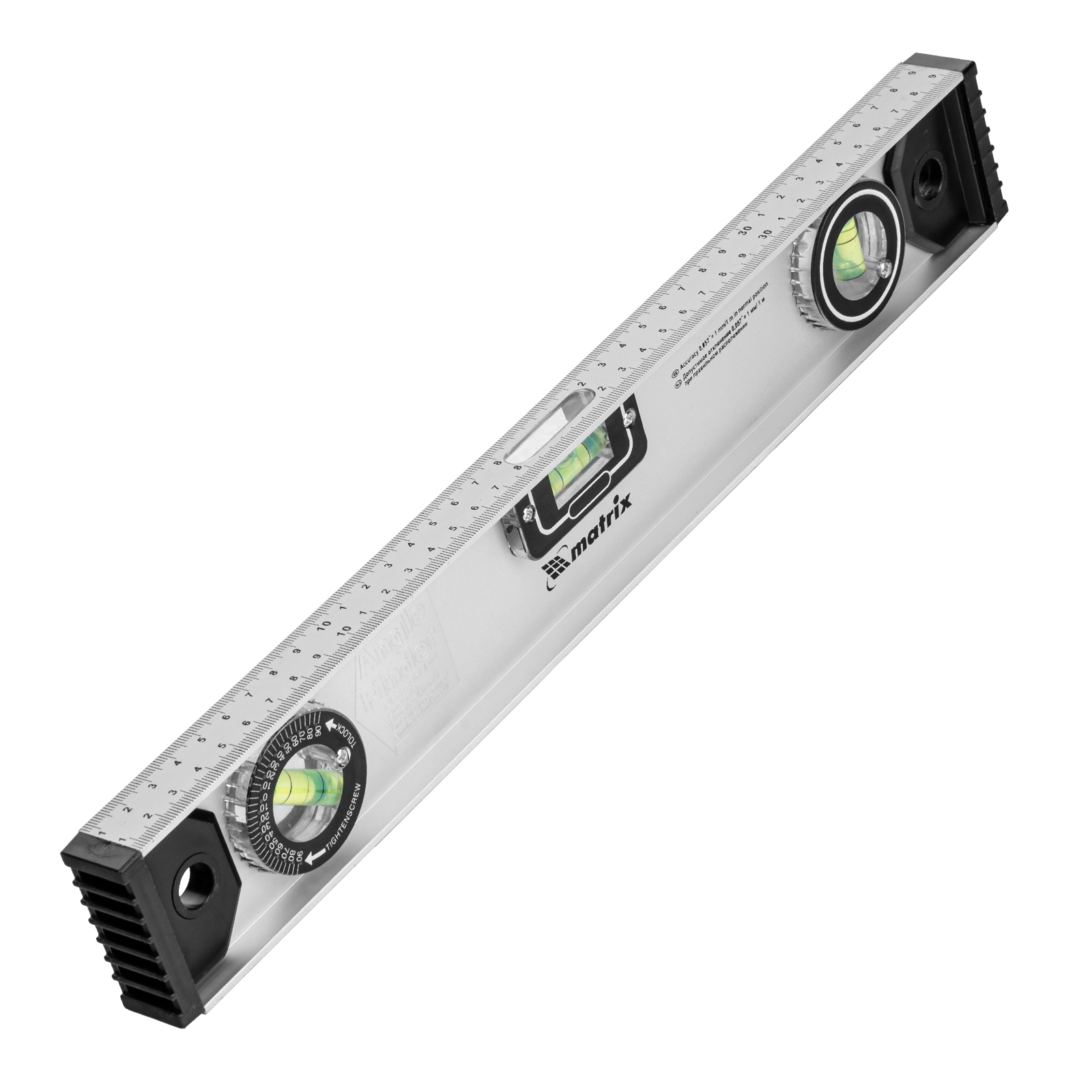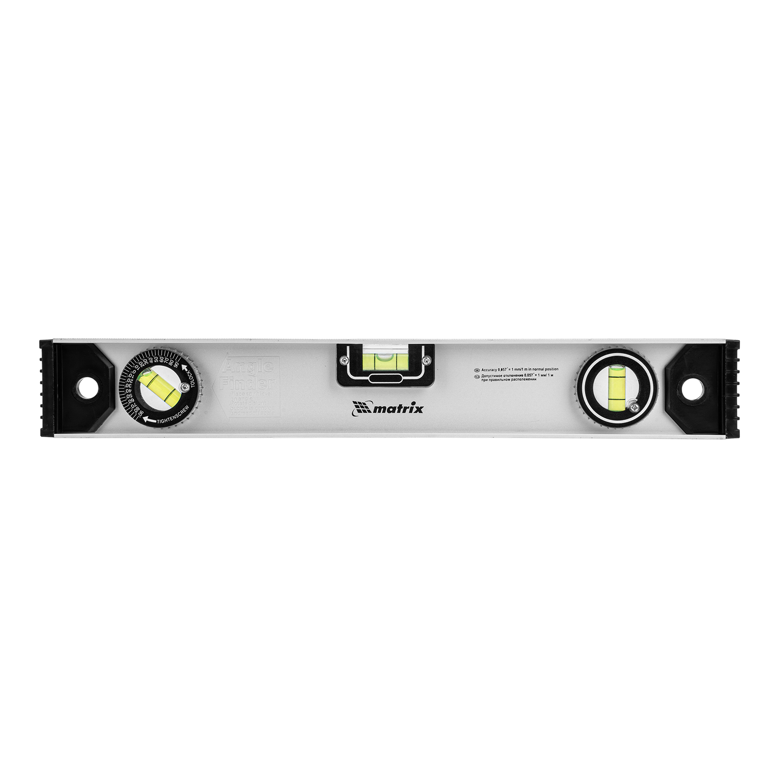 Уровень алюминиевый "Рельс", 400 мм, 3 глазка (1 поворотный) Matrix в Челябинске