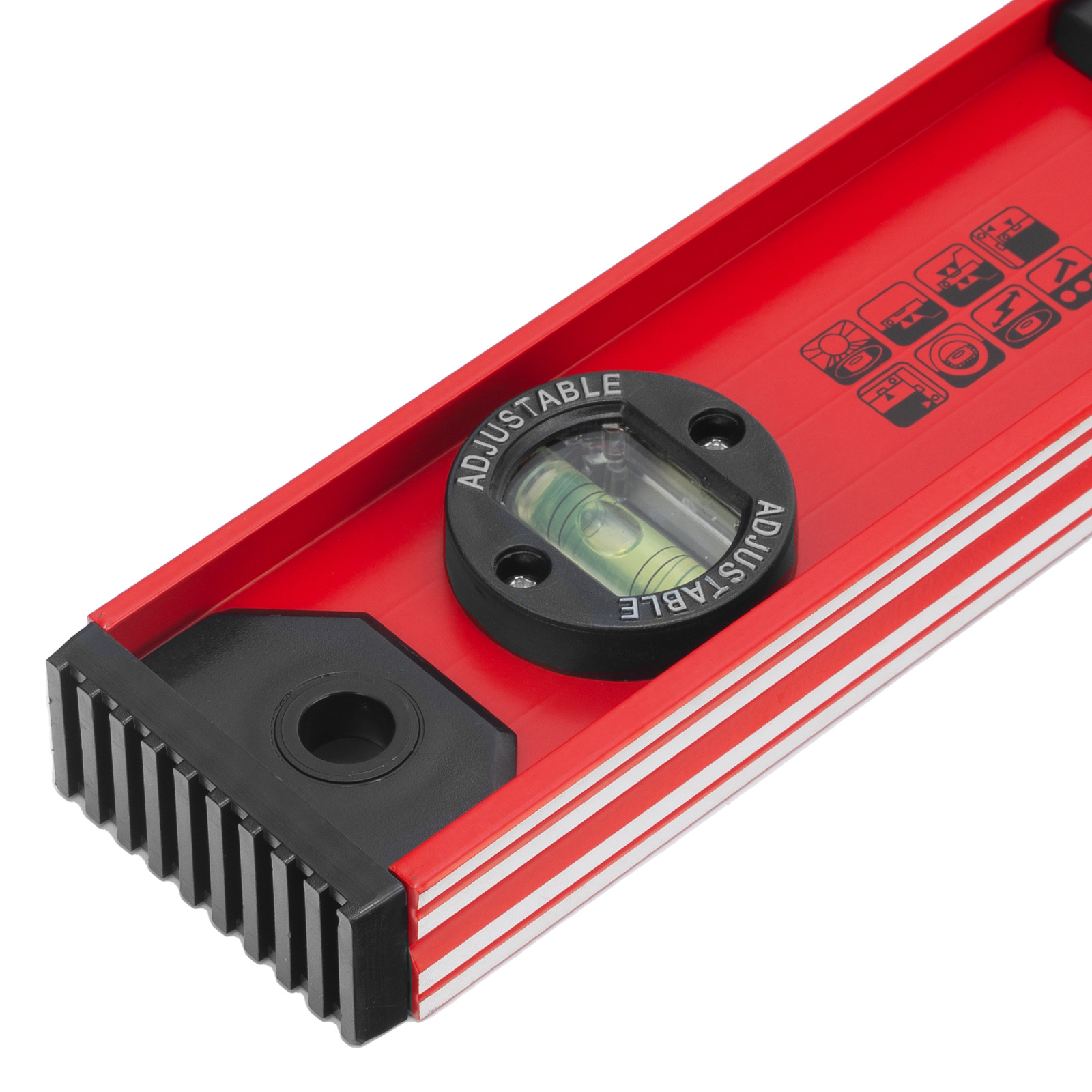 - Удобное проведение сантехнических работ — подошва V-образной формы позволяет закрепить уровень на трубе.