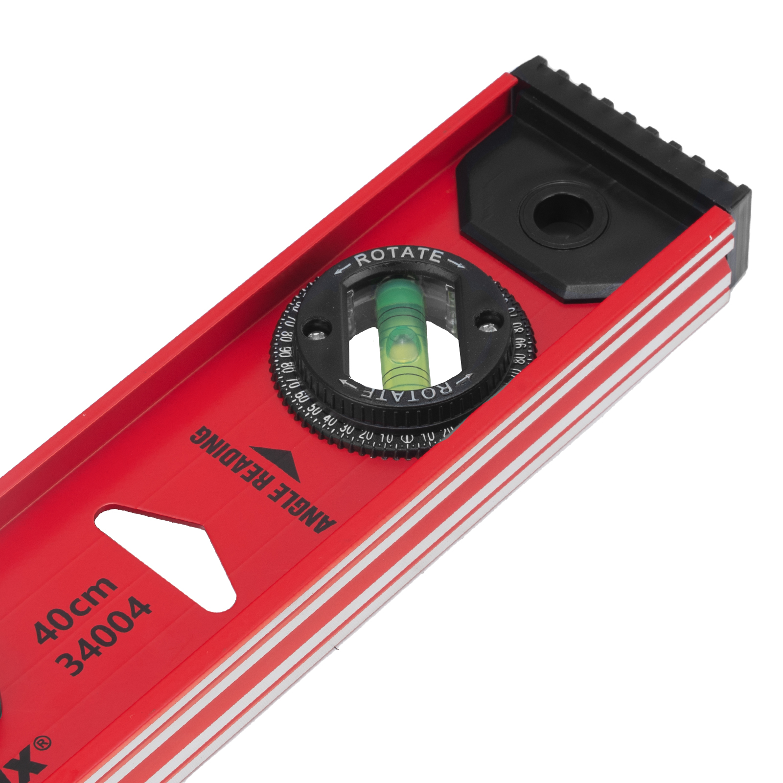 Уровень алюминиевый усиленный Matrix «Рельс» 34004 длиной 400 мм снабжен 3 глазками для проверки отклонений относительно горизонтальной и вертикальной плоскостей. Поворотный глазок уровня позволяет выстроить произвольный угол. Инструмент пригодится строителю, отделочнику, бетонщику и другим специалистам.