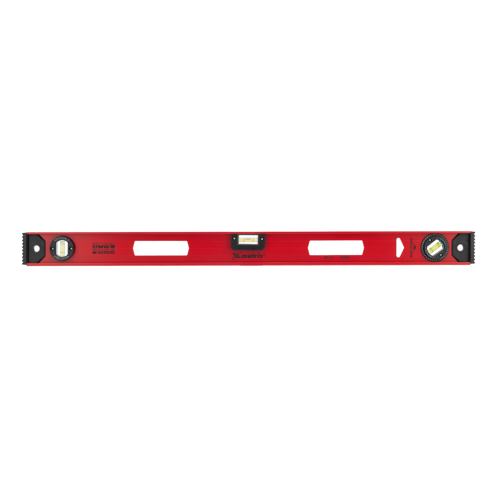 Уровень алюминиевый усиленный Matrix «Рельс» 34008 длиной 800 мм снабжен 3 глазками для проверки отклонений относительно горизонтальной и вертикальной плоскостей. Поворотный глазок уровня позволяет выстроить произвольный угол. Инструмент пригодится строителю, отделочнику, бетонщику и другим специалистам.