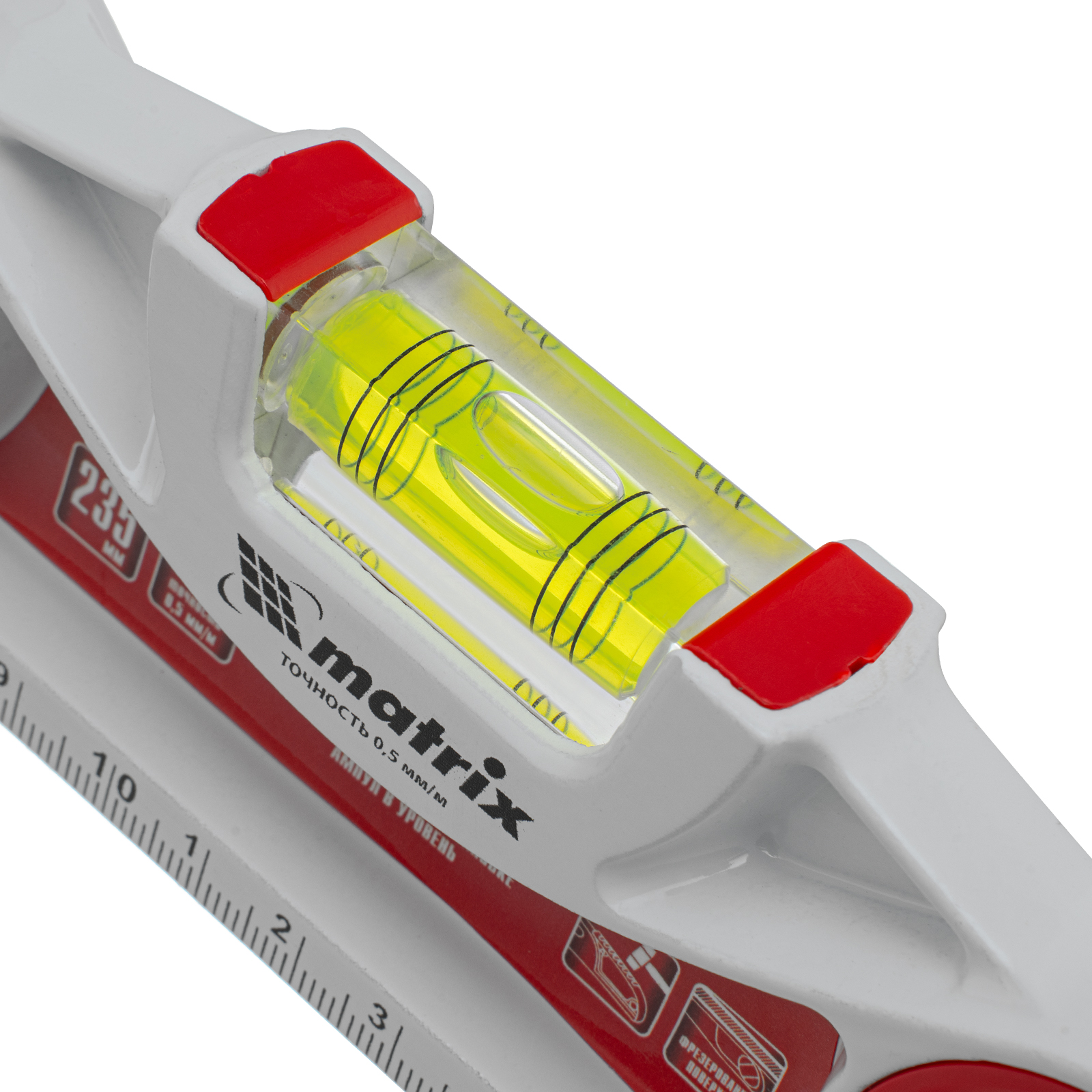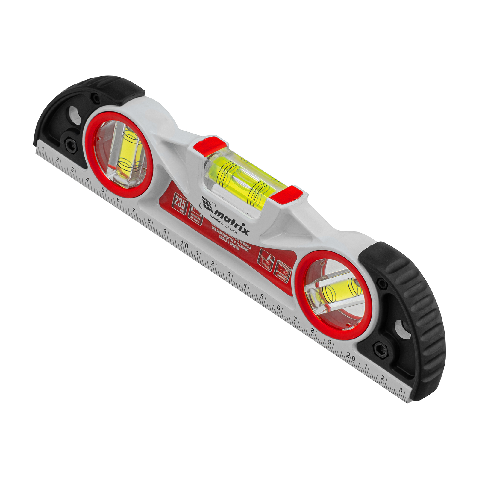 Уровень алюминиевый литой, фрезерованный, 3 глазка, две ударные площадки, 235 мм Matrix в Челябинске