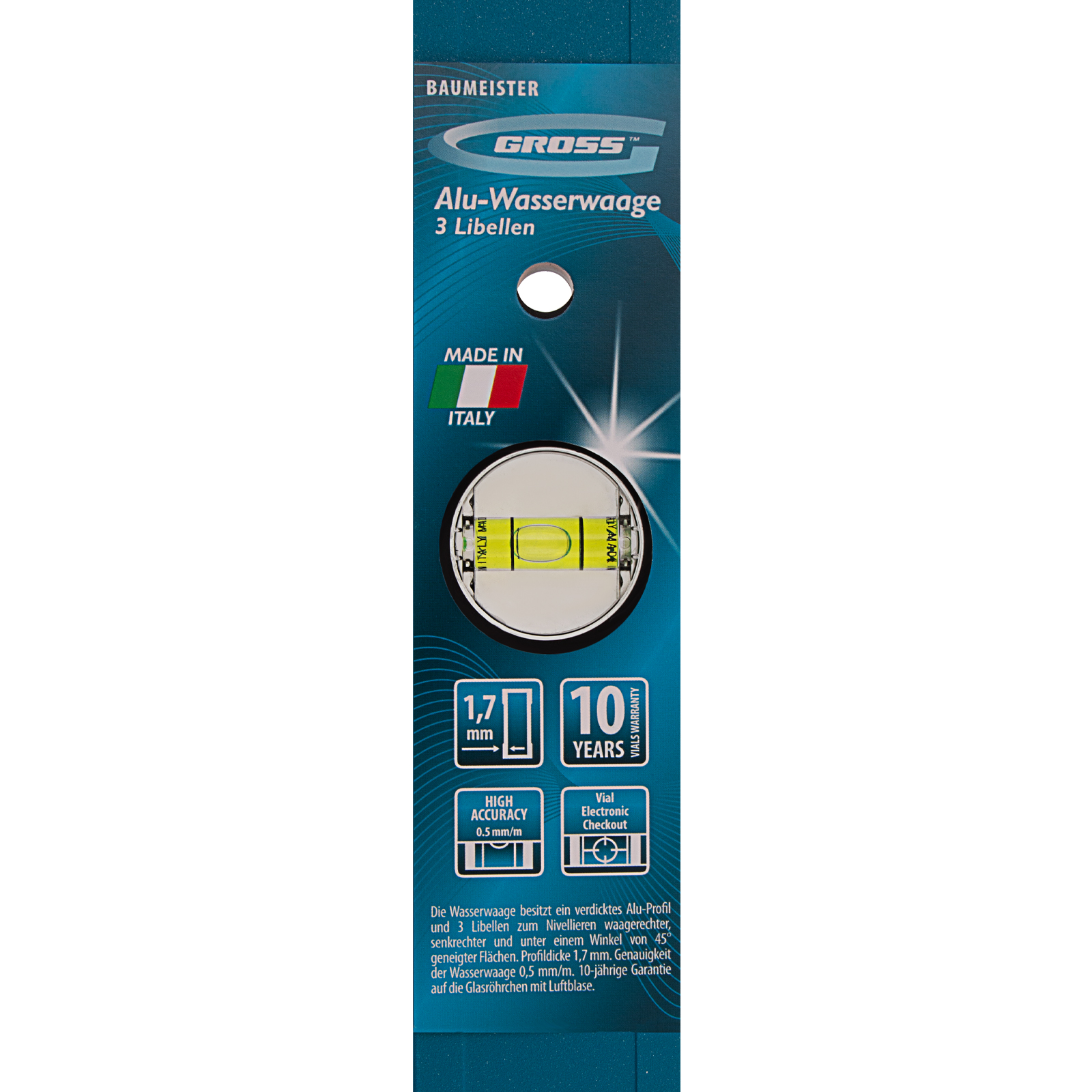 - Качественное исполнение — уровень изготовлен в Италии на высокотехнологичном производстве, погрешность измерений составляет всего 0,5 мм/м.