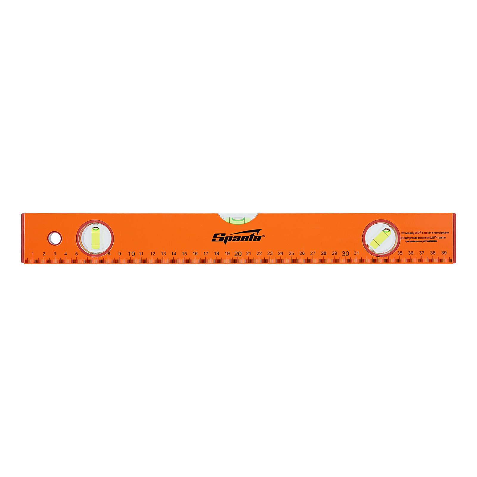 Алюминиевый уровень Sparta 330205 длиной 400 мм, желтого цвета, с 3 глазками и линейкой, будет полезен при проведении строительных, отделочных, облицовочных и других работ, требующих особой точности. Уровень с тремя глазками поможет определить отклонение от горизонтальной и вертикальной плоскости, выставить угол 45°, измерить предметы и т. д.