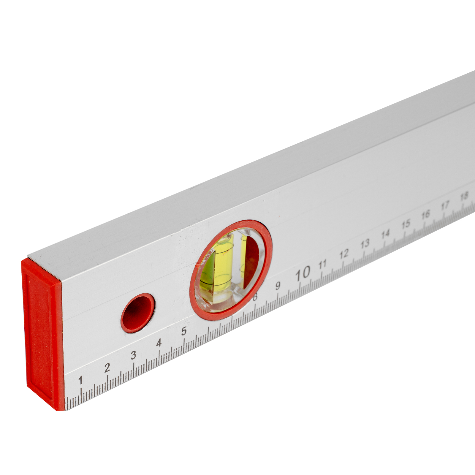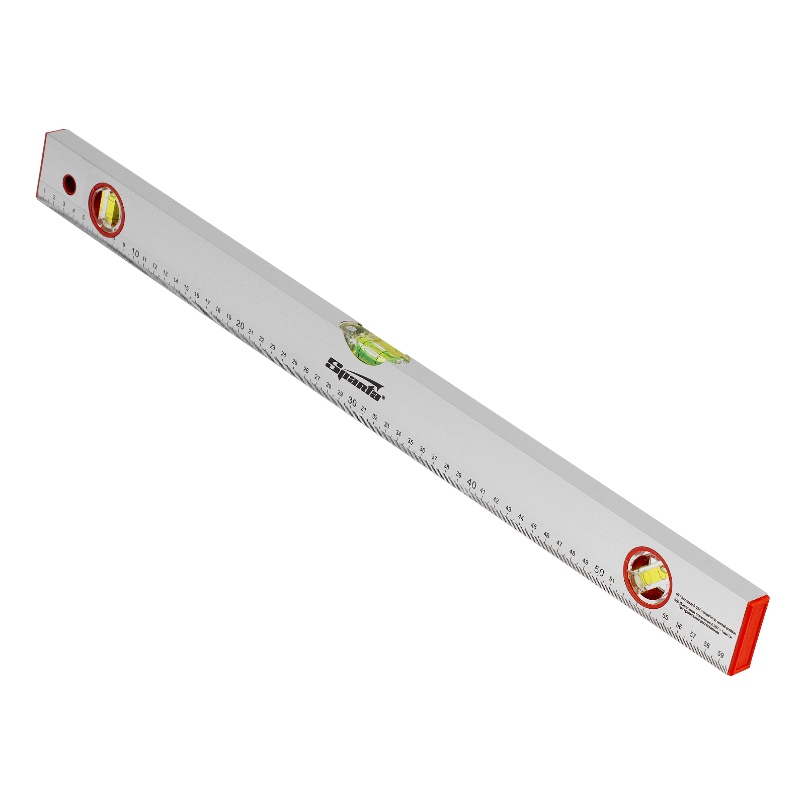 Алюминиевый уровень Sparta 331235 длиной 600 мм, с 3 глазками и линейкой, используется на строительной площадке и во время ремонта. Повышает точность выполнения облицовочных, отделочных и других работ, позволяя проверить отклонения по горизонтали и вертикали, измерить угол наклона, выровнять поверхности и предметы.