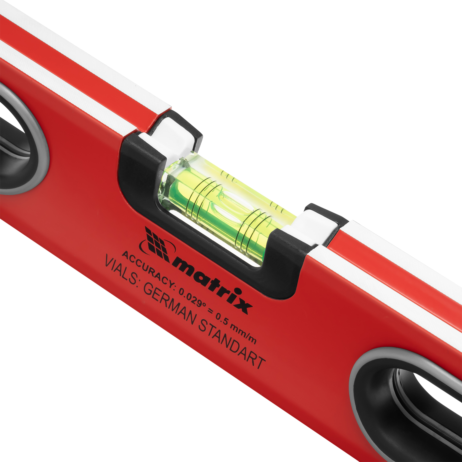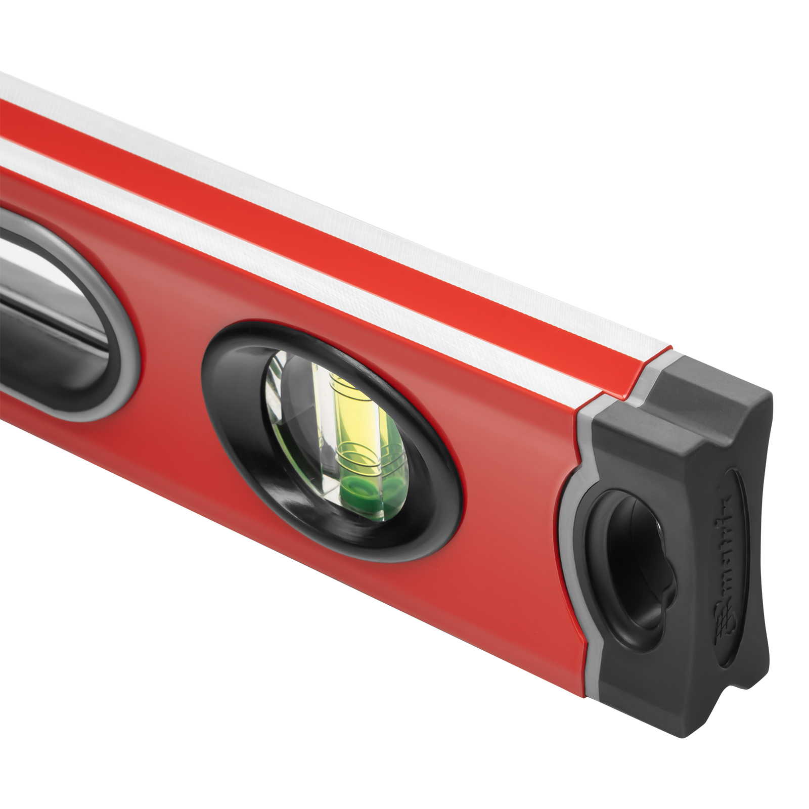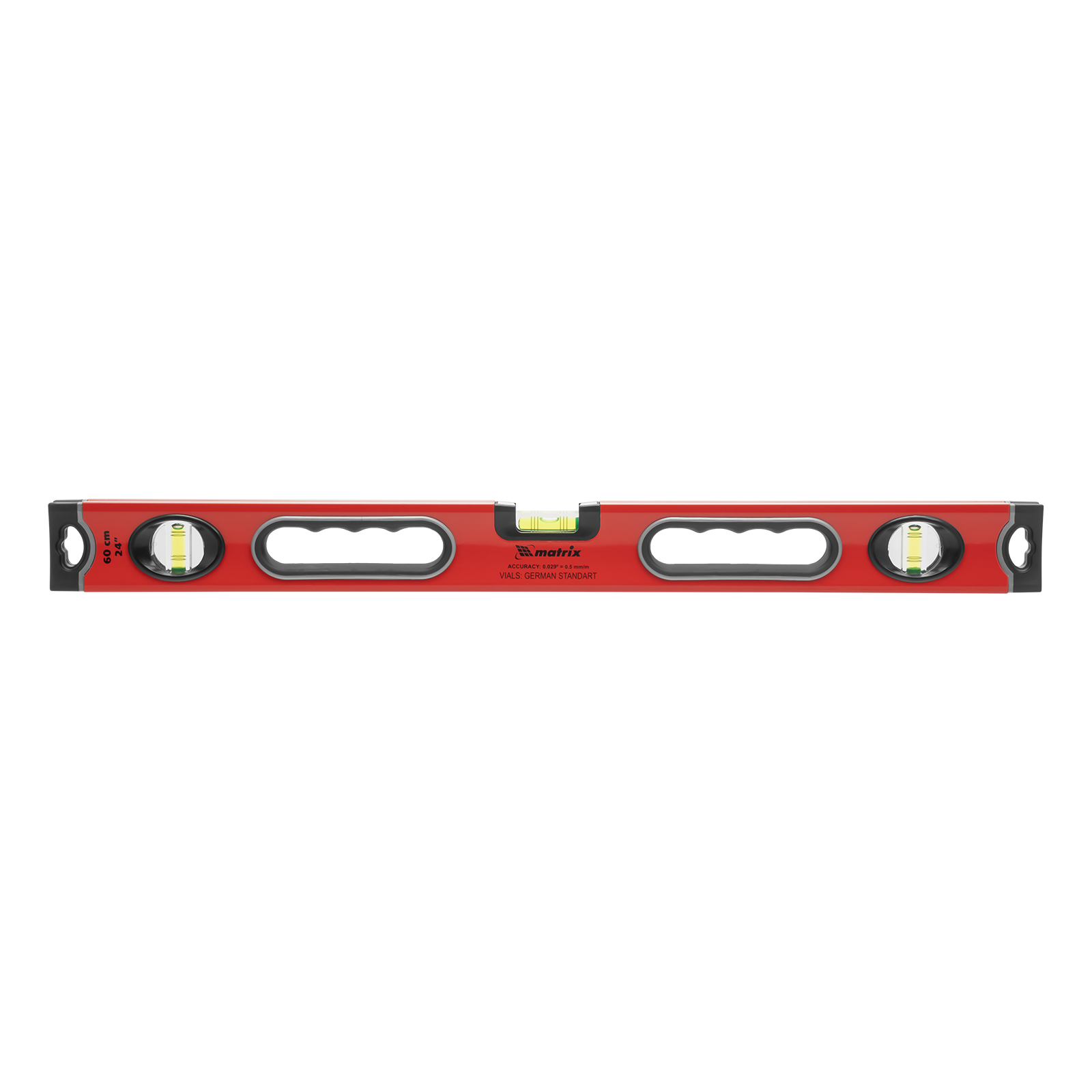 Алюминиевый уровень Matrix 34304 длиной 600 мм, с 3 глазками, ударопрочными заглушками и двухкомпонентными ручками, повышает точность работы, т. к. позволяет обнаружить отклонения от вертикали, горизонтали и угла 45°. Используется для монтажа конструкций, укладки покрытий, облицовки поверхностей и т. д., подходит для профессионального и бытового применения.
