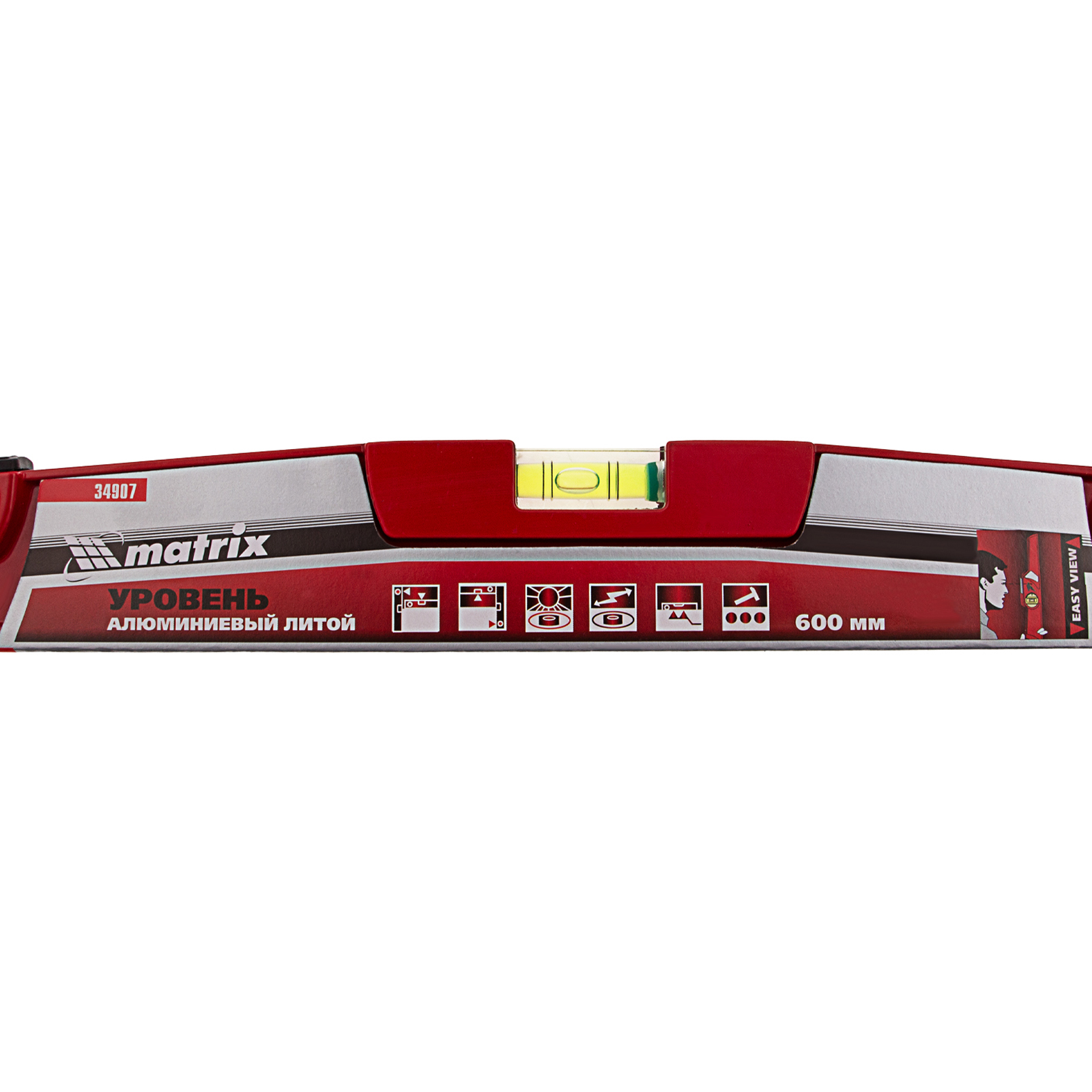 Уровень алюминиевый, 600 мм, литой, 2 глазка (1 фронтальный), ударная площадка Matrix в Челябинске