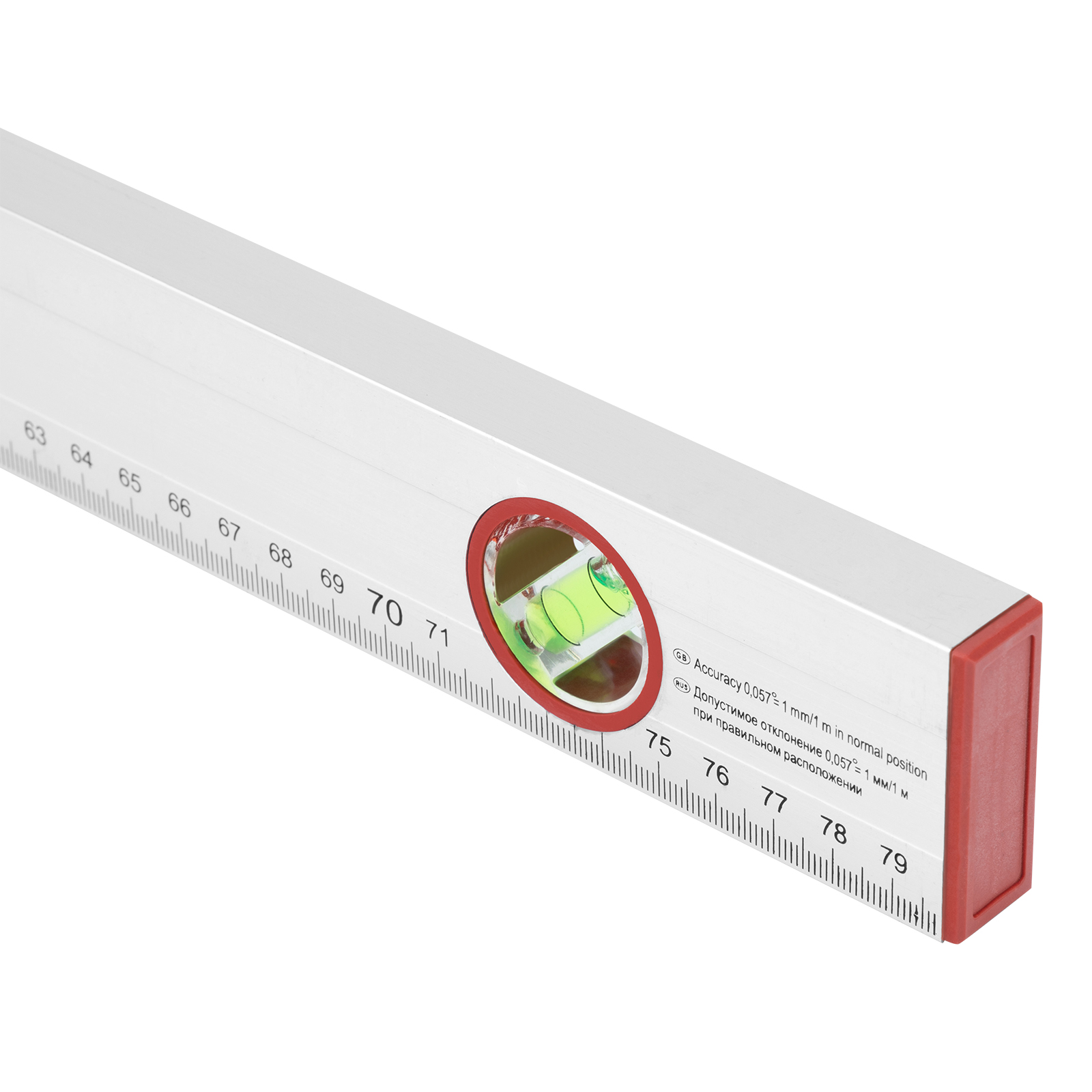 Алюминиевый уровень Sparta 331265 длиной 800 мм, с 3 глазками и линейкой, используется на строительной площадке и во время ремонта. Повышает точность выполнения облицовочных, отделочных и других работ, позволяя проверить отклонения по горизонтали и вертикали, измерить угол наклона, выровнять поверхности и предметы.